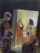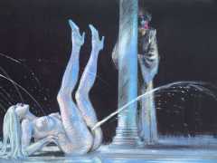 It’s clear from Barbarella that Jean-Claude Forest was fascinated by the complexity of sexual interaction, but it is in Louise Rose, twenty years later, that he shows us the darker side of his imagination. The limited edition portfolio, produced in conjunction with his friend Daniel Dubos, is a textless narrative in which the protagonist experiences a range of perverse male fantasies played out on her naked body.