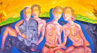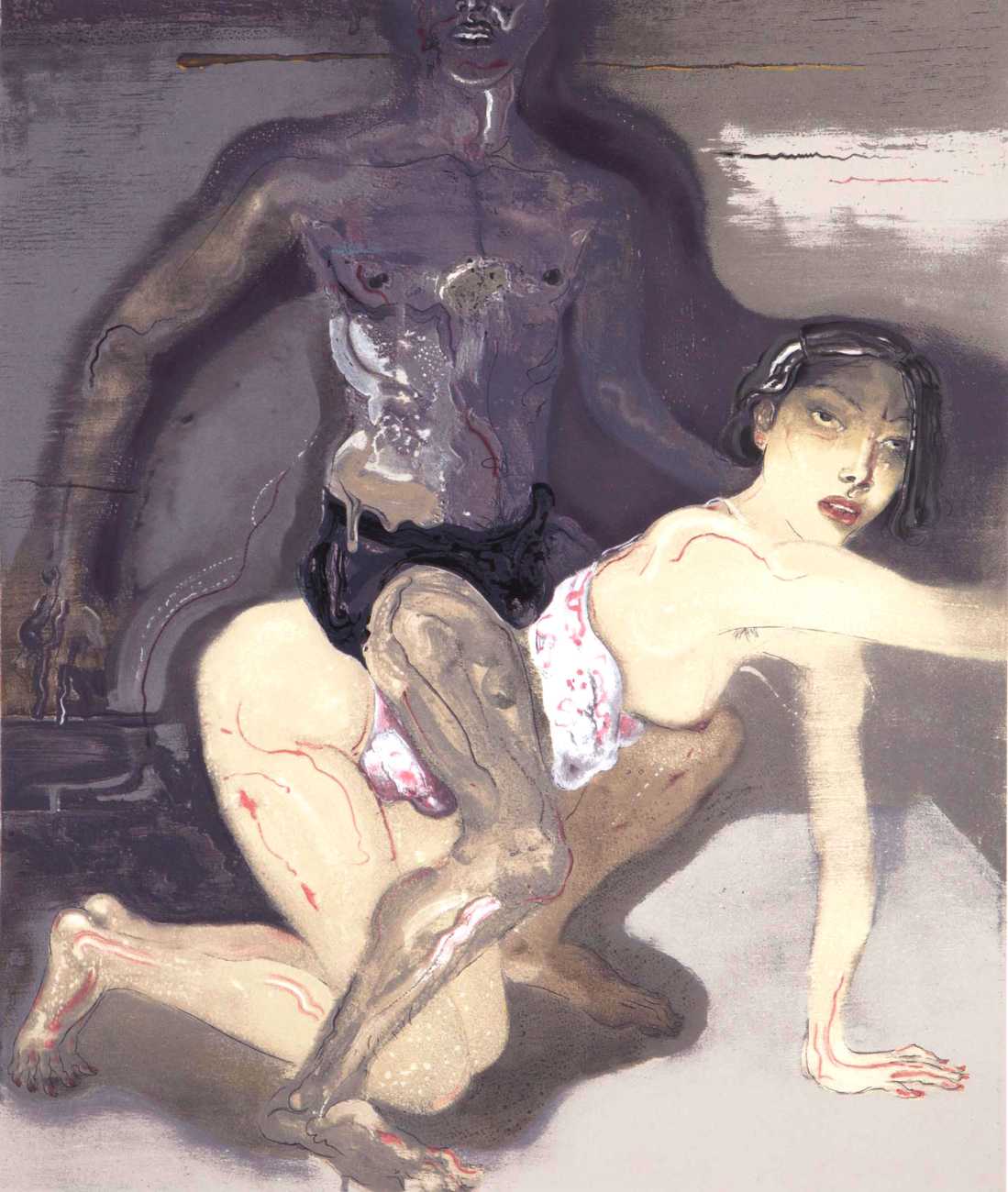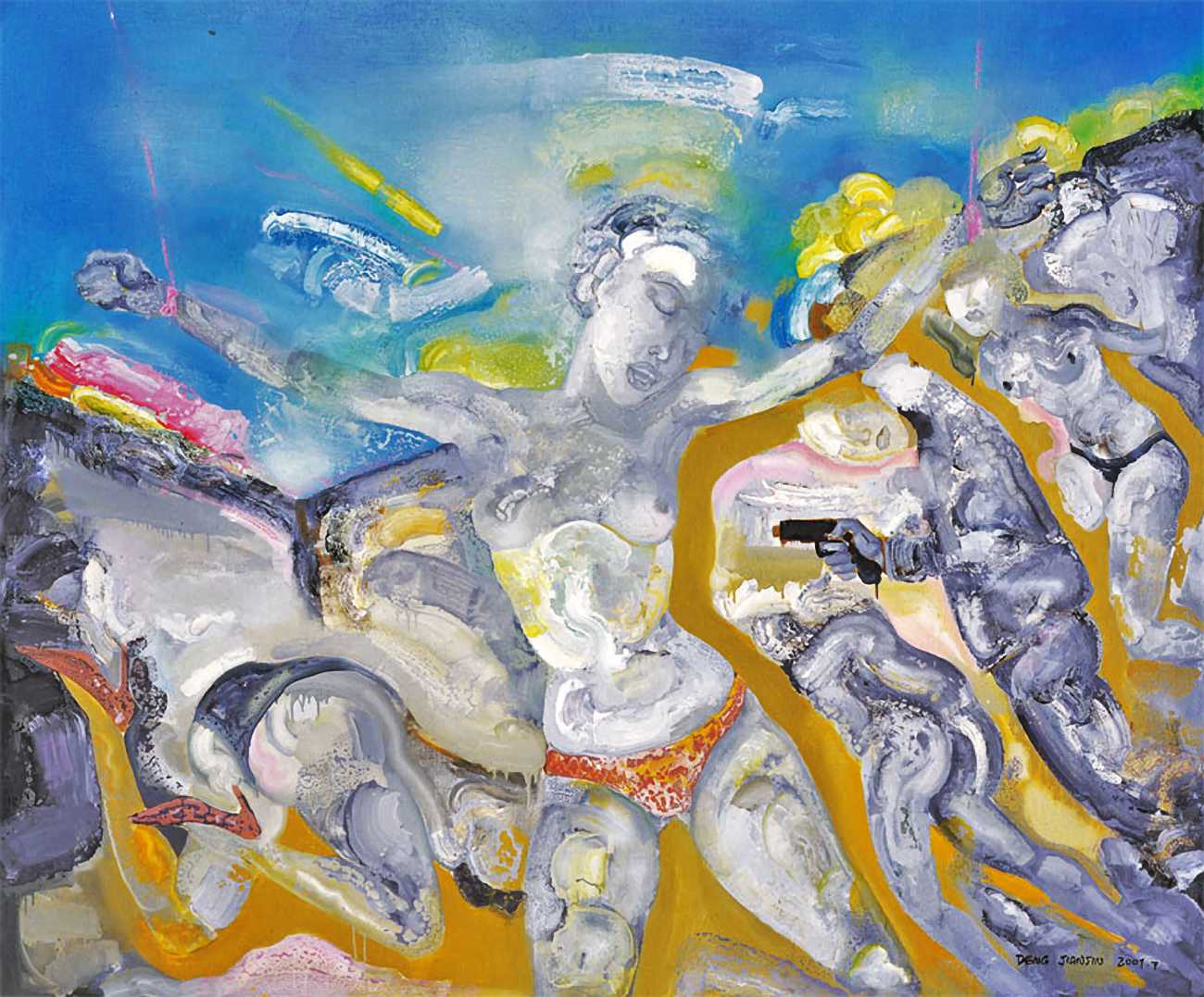 After the guns of ‘Dream Records’, the 2001–2 sequence ‘Why Does the Sunset Make Us So Beautiful?’ seems something of a redemptive response. Each of the couples, sometimes heterosexual and sometimes gay, are mostly happily enjoying each other’s company, and the linking motif is a meteor, a shaft of light illuminating the scene.