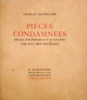 May den Engelsen’s second book commission was from Henri Émile Blanchetière, a well-known art shop owner of the period, for seven illustrations to accompany the six poems from Charles Baudelaire’s Fleurs du mal (The Flowers of Evil) which were censored and did not appear in the first two editions – published in 1857 and 1861 – of the book, together with a frontispiece. The censored poems (‘Lesbos’, ‘Femmes damnées (à la pâle clarté)’, ‘Le Léthé’, ‘À celle qui est trop gaie’, ‘Les bijoux’, and ‘Les métamorphoses du vampire’) appeared in print in 1866, but were officially banned (condamné) in France until the 1940s because of their lesbian and sado-erotic content. This made them particularly attractive for limited edition art publishers like Blanchetière.