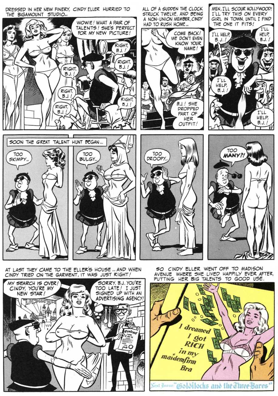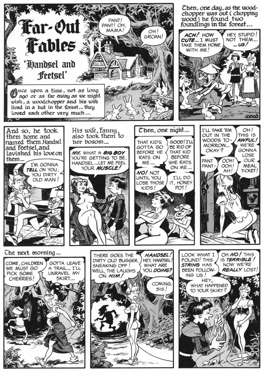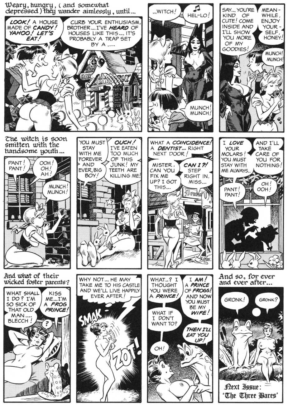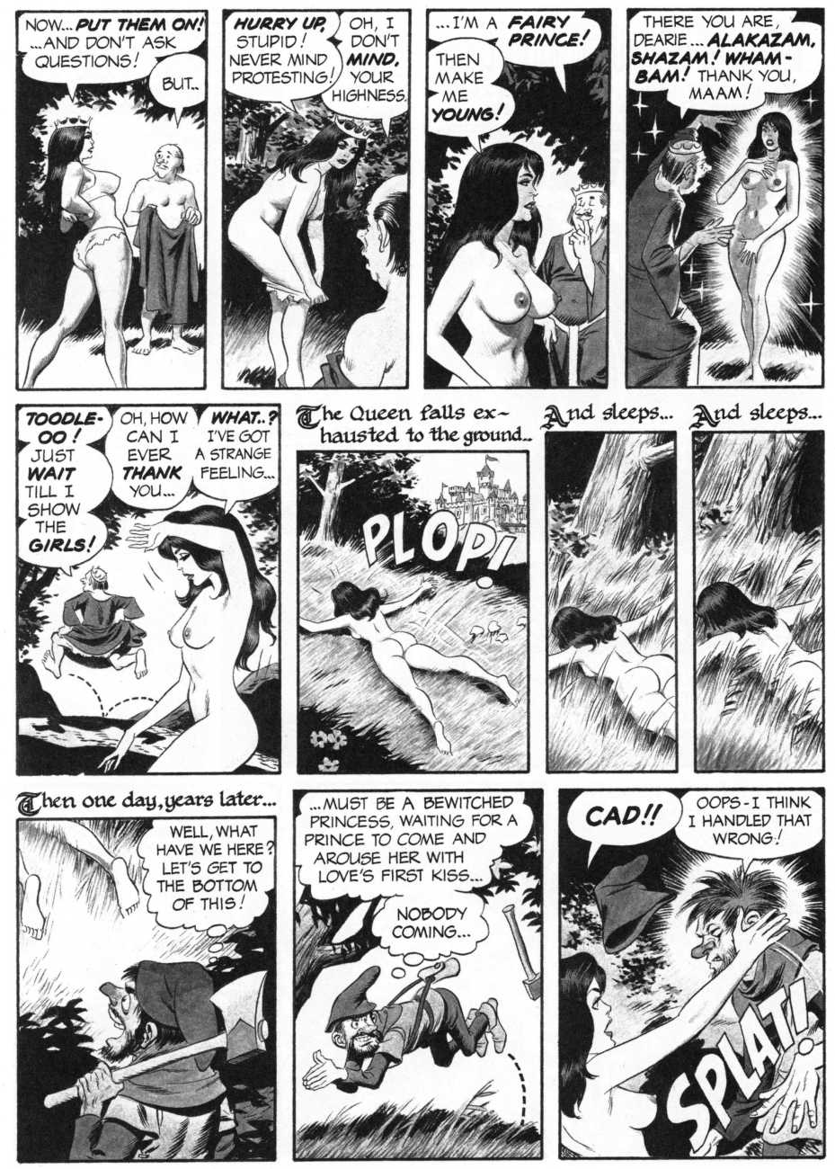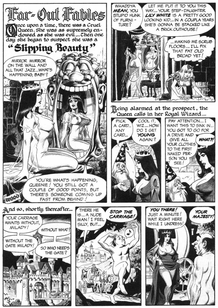 Wood had been producing marginally erotic art since the 1950s, but it was in the mid-sixties (and maybe not uncoincidentally around the time he met and married fellow illustrator Tatjana Wood) that his erotic imagination started to blossom. In 1965 he produced the Marquis de Sade Coloring Book for Laff magazine, then in 1965–7 these four strips for Cavalcade. Unfortunately Cavalcade ceased publication before the promised fifth tale of ‘The Three Bares’ saw the light of day; whether it ever existed we shall never know.