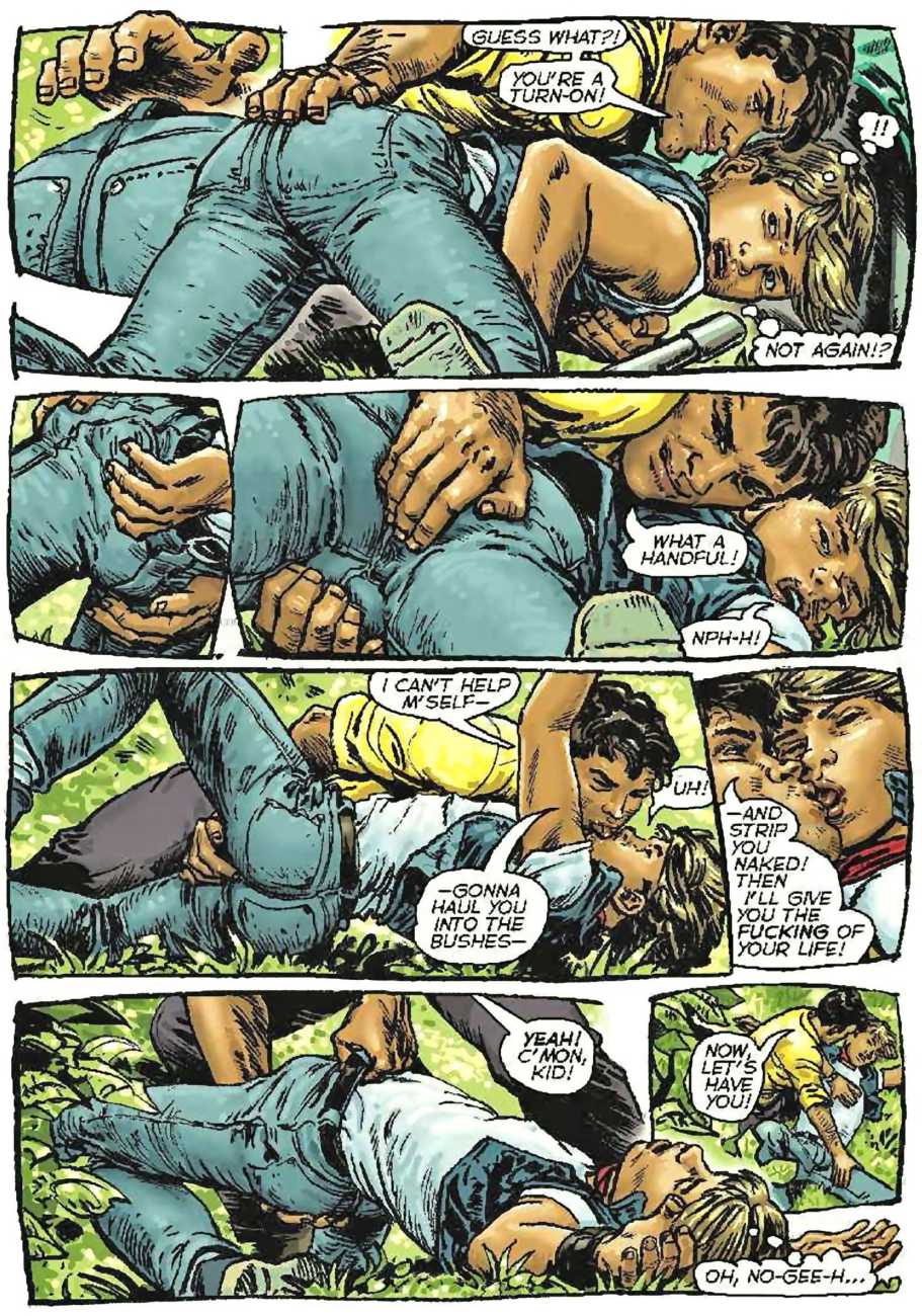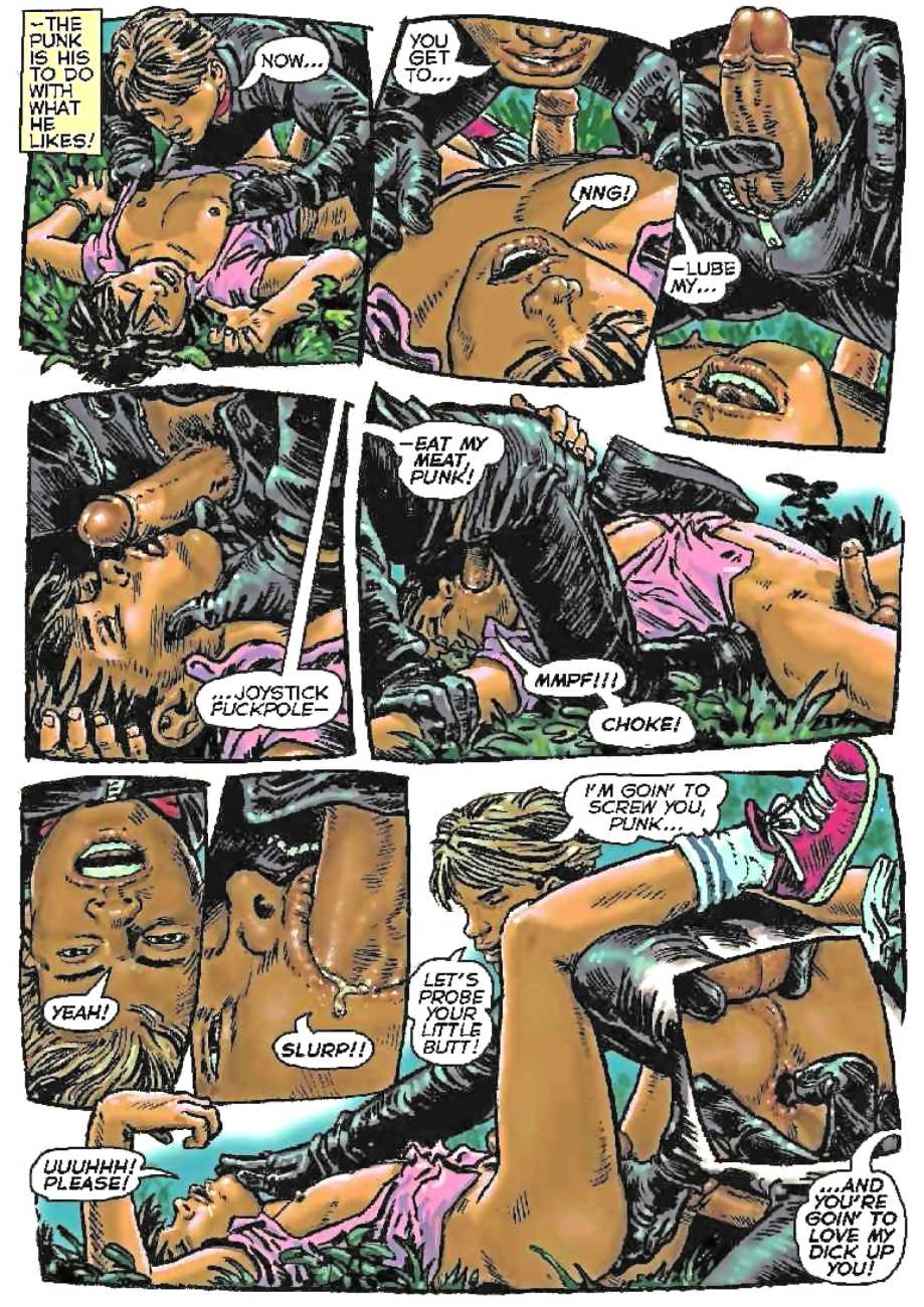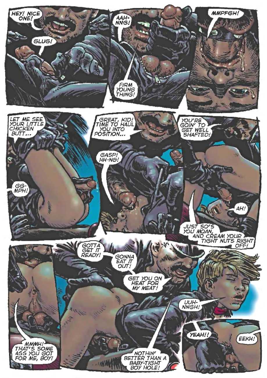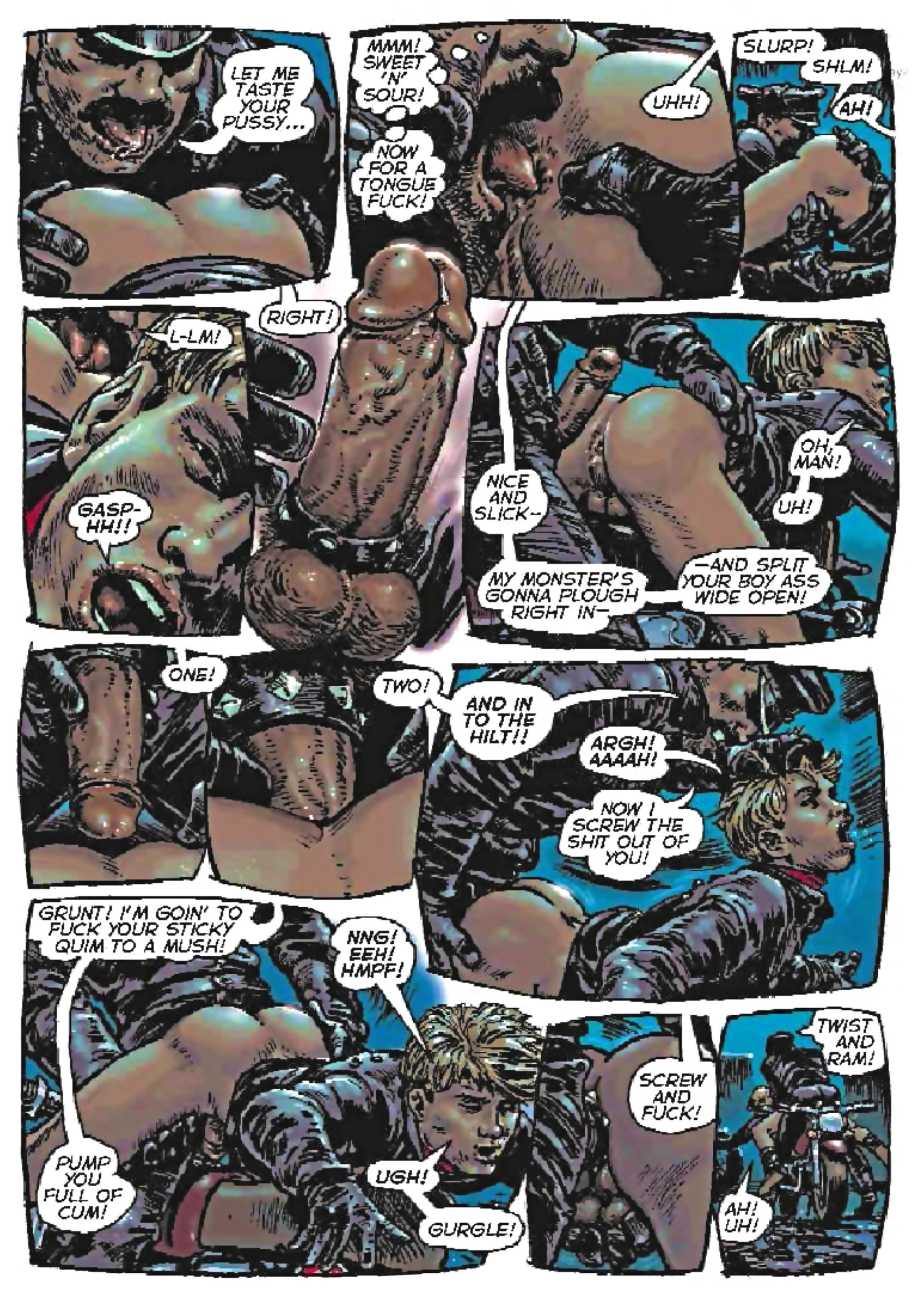 The Bike Boy storyline is a straightforward coming-of-age: ‘It’s my birthday, eighteen! And what a hot gift I got waitin’ for me.’ Bike Boy wastes no time exploring his new gift, being taken advantage of until he works out the best ways of taking advantage himself.