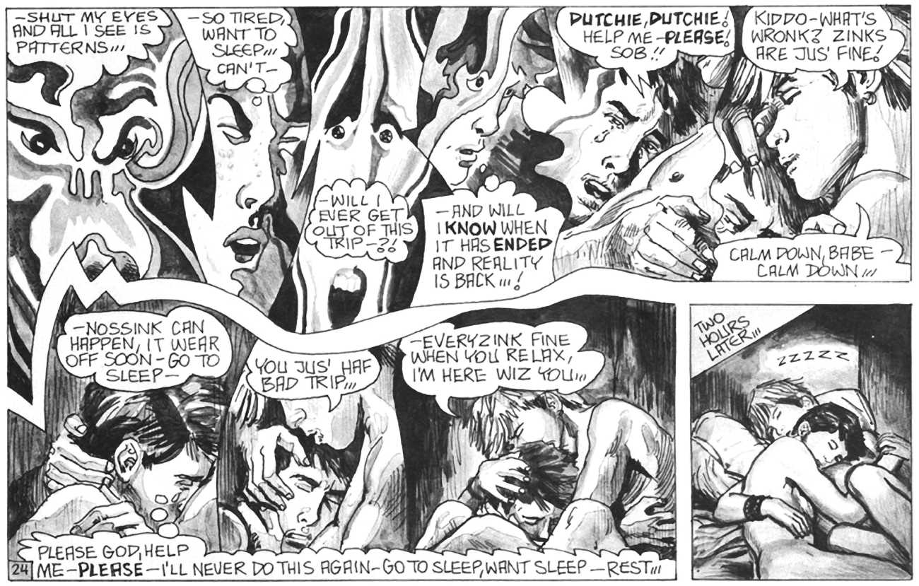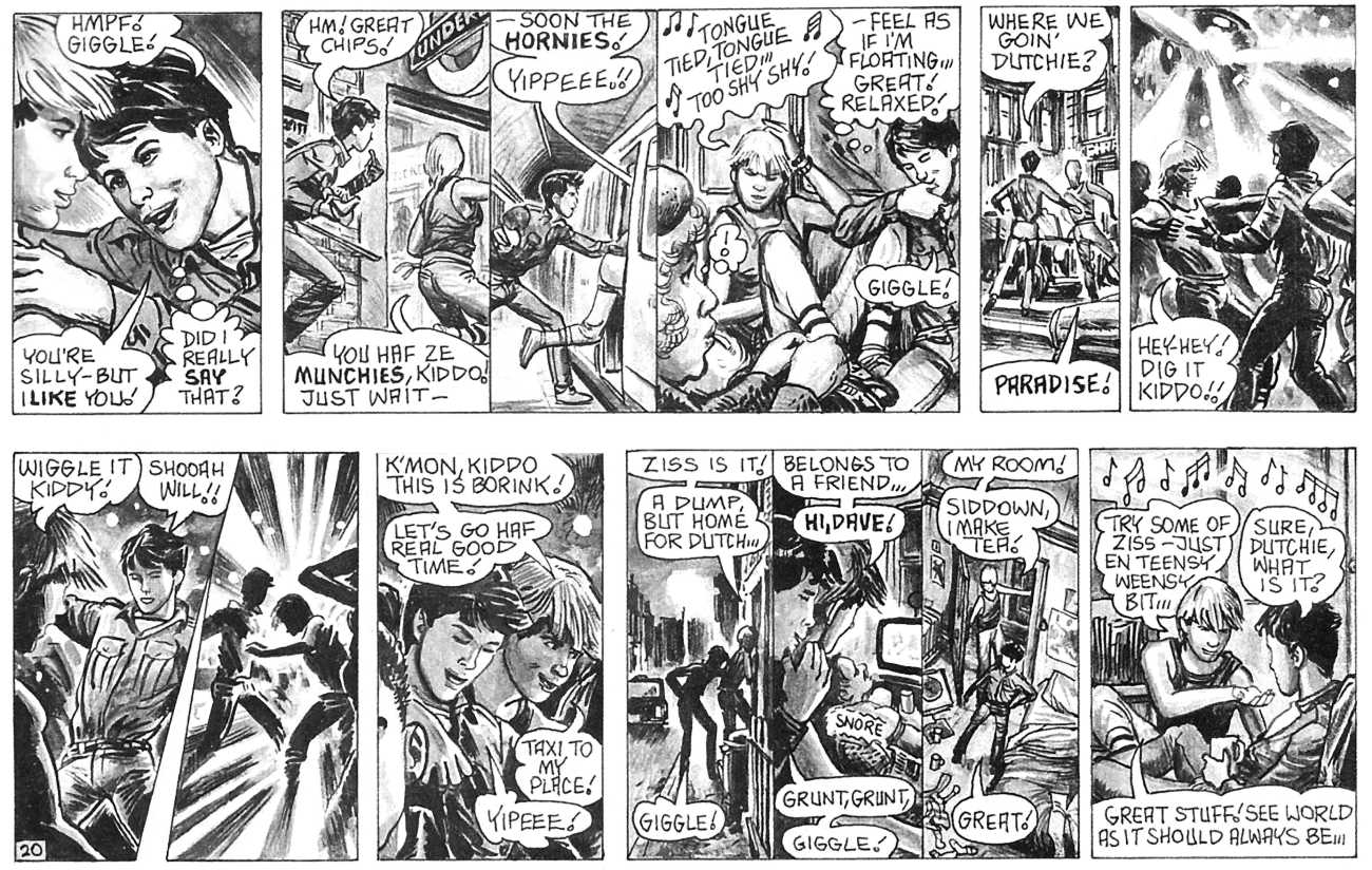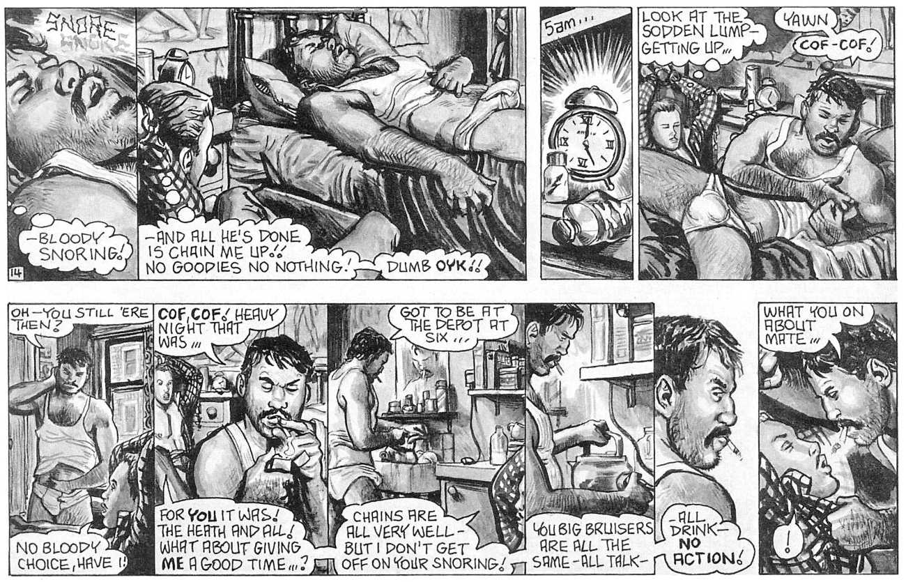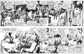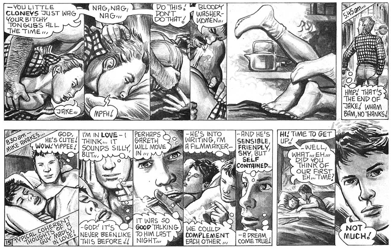 ‘The Street’ is Oliver Frey’s semi-autobiographical black and white strip which appeared in the early issues of HIM magazine. The comic appeared as panels spread across three pages of the magazine. Sadly, due to the changes made when Millivres took the magazine over, Frey only drew the strip for nine months, so we were left with just 27 artwork boards.