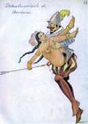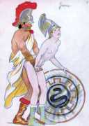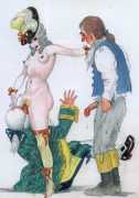 We can do no better than reproduce the introduction to the first of six editions of the magazine French Kiss to introduce this selection from La Verdadera Historia de la Humanidad (The True History of Humanity). The last of the numbered series is 48, so only around half have come to light, though we have added several more drawings which appear to be by the same hand. Many of the paintings are so similar in style to those of the French illustrator André Collot that we cannot help but think that Gigi Amaldi must have been familiar with, and influenced by, Collot’s work.