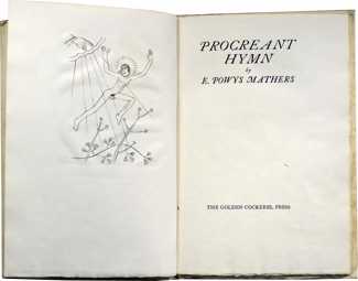 If Eric Gill was fascinated by sex, Powys Mathers was more than his equal. In his 1966 biography of Gill, Robert Speight quotes the poet David Jones reporting a visit with Gill to Powys Mathers’ London flat, at the time Procreant Hymn was in preparation. ‘The walls of Mathers’ Lincolns Inn Fields flat were plastered with pornographic postcards,’ wrote Jones, ‘which were too much even for Eric’s indulgent attitude towards pornography. Gill remarked to Jones that maybe if he were not a Catholic he might like them.’