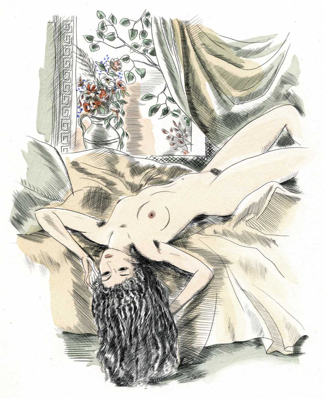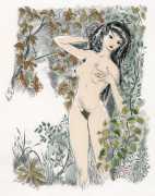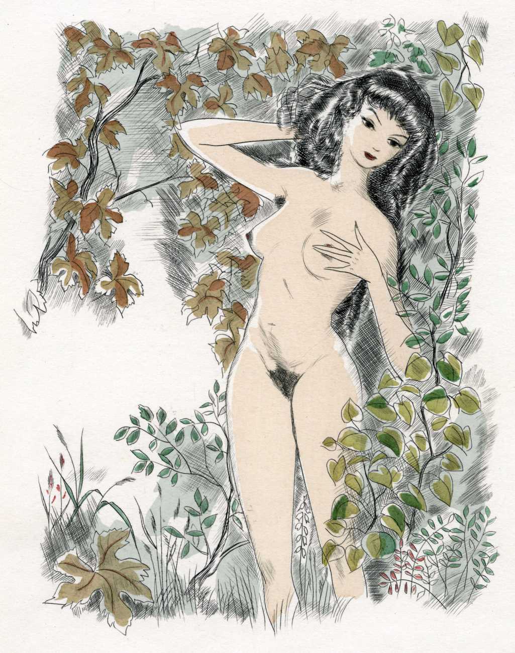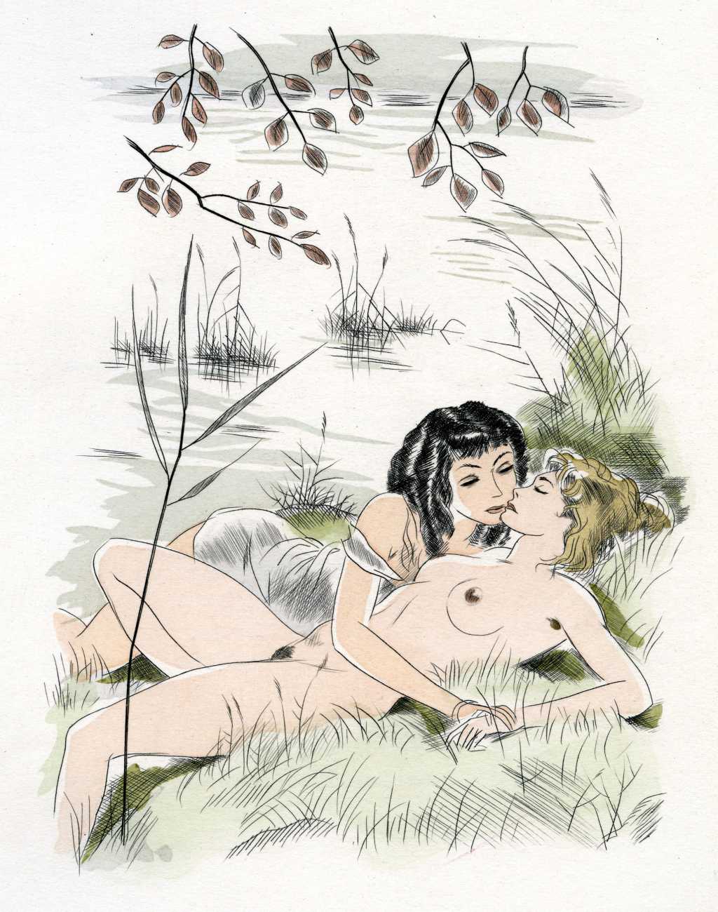 By the time Gaston Barret was commissioned to illustrate this edition, Les chansons de Bilitis had already attracted artists of the calibre of Sylvain Sauvage, Amandine Doré, Paul-Émile Bécat and Alméry Lobel-Riche, but until Barret nobody had included quite so much nubile pink flesh and quite so many young vulvas.