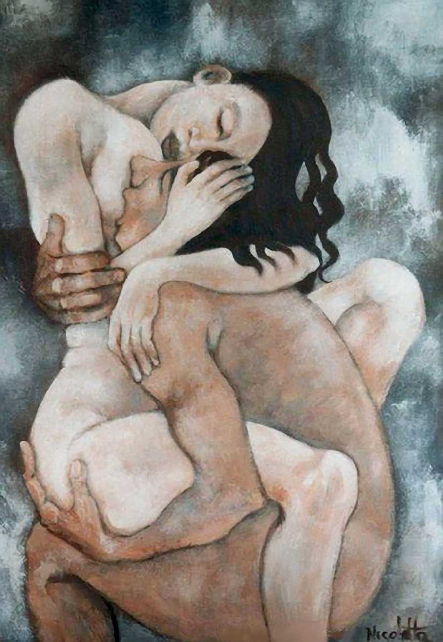 In 2012 the publisher Legua Editorial assembled a collection of Nicoletta’s paintings and put them together with love poetry from writers including Shakespeare and Byron, Baudelaire and Maupassant, Rebolledo and Silva, in a large-format volume called Amantes. Published in their Art & Words series, it is a fitting collaboration and setting for Nicoletta’s most sensual paintings.
