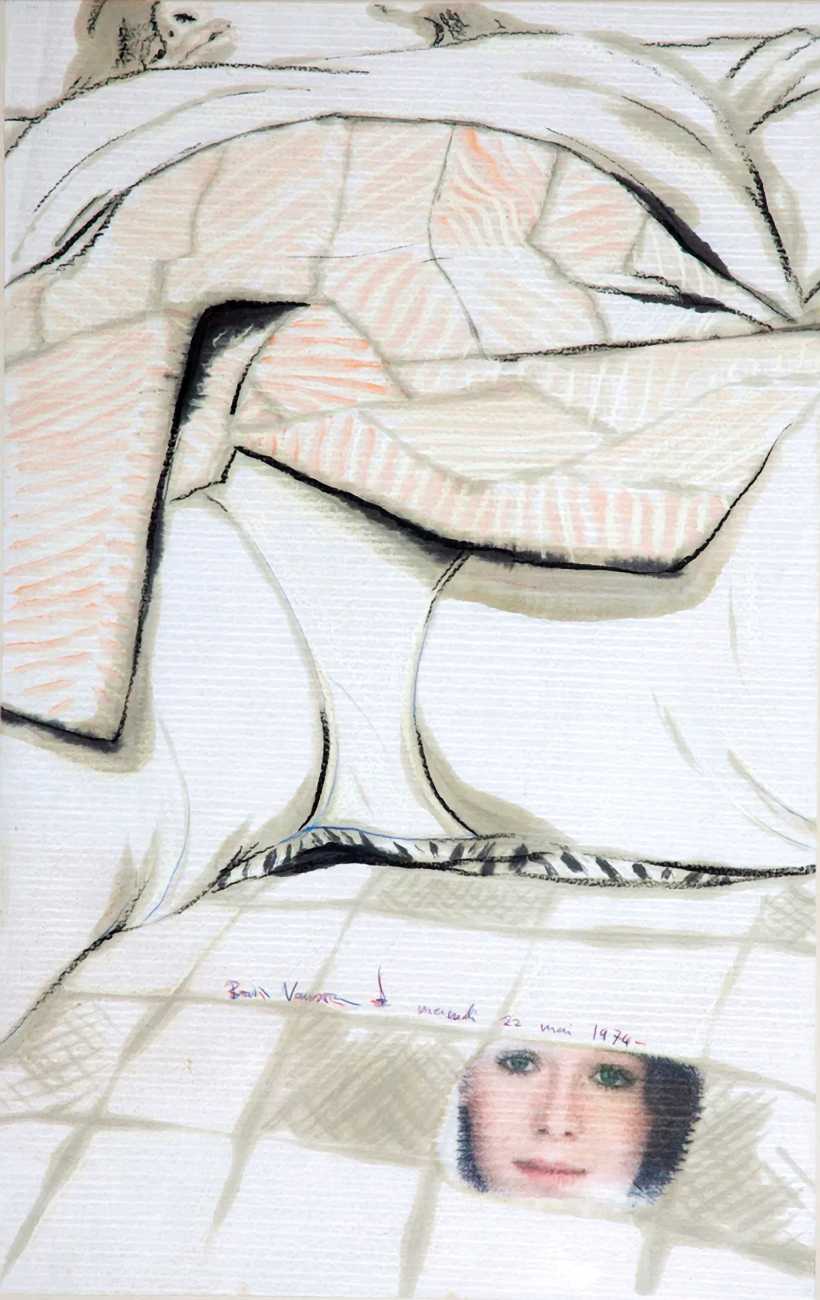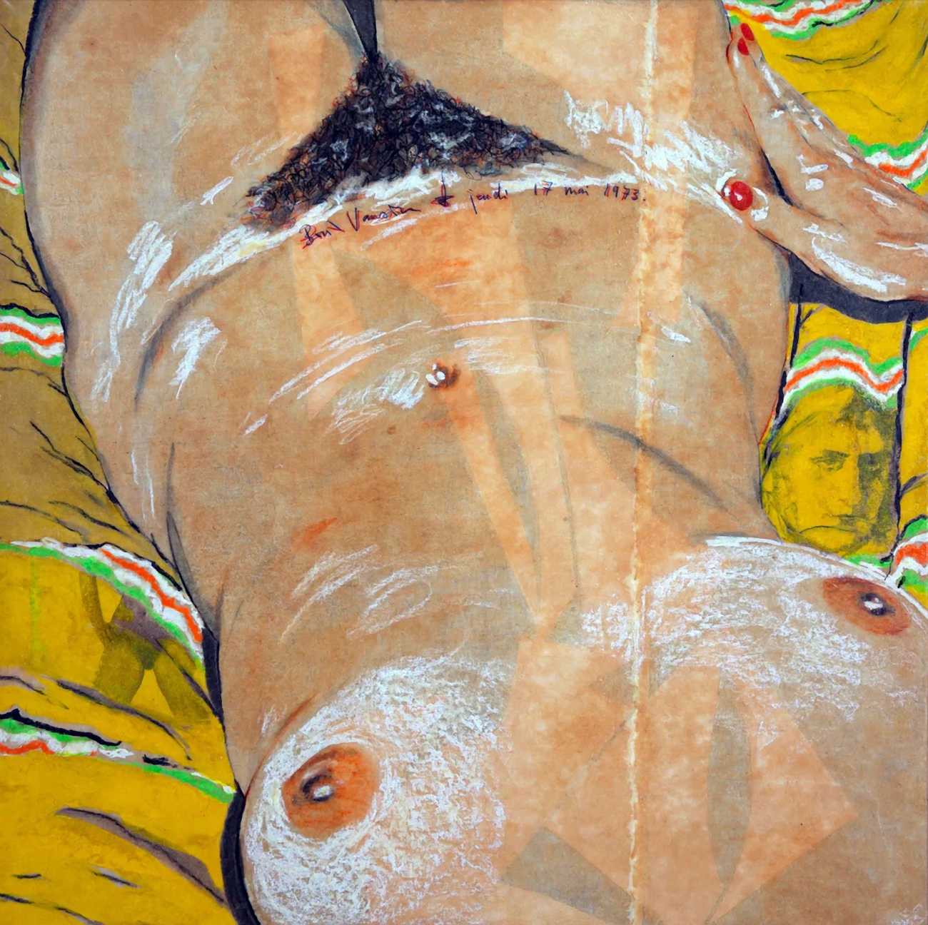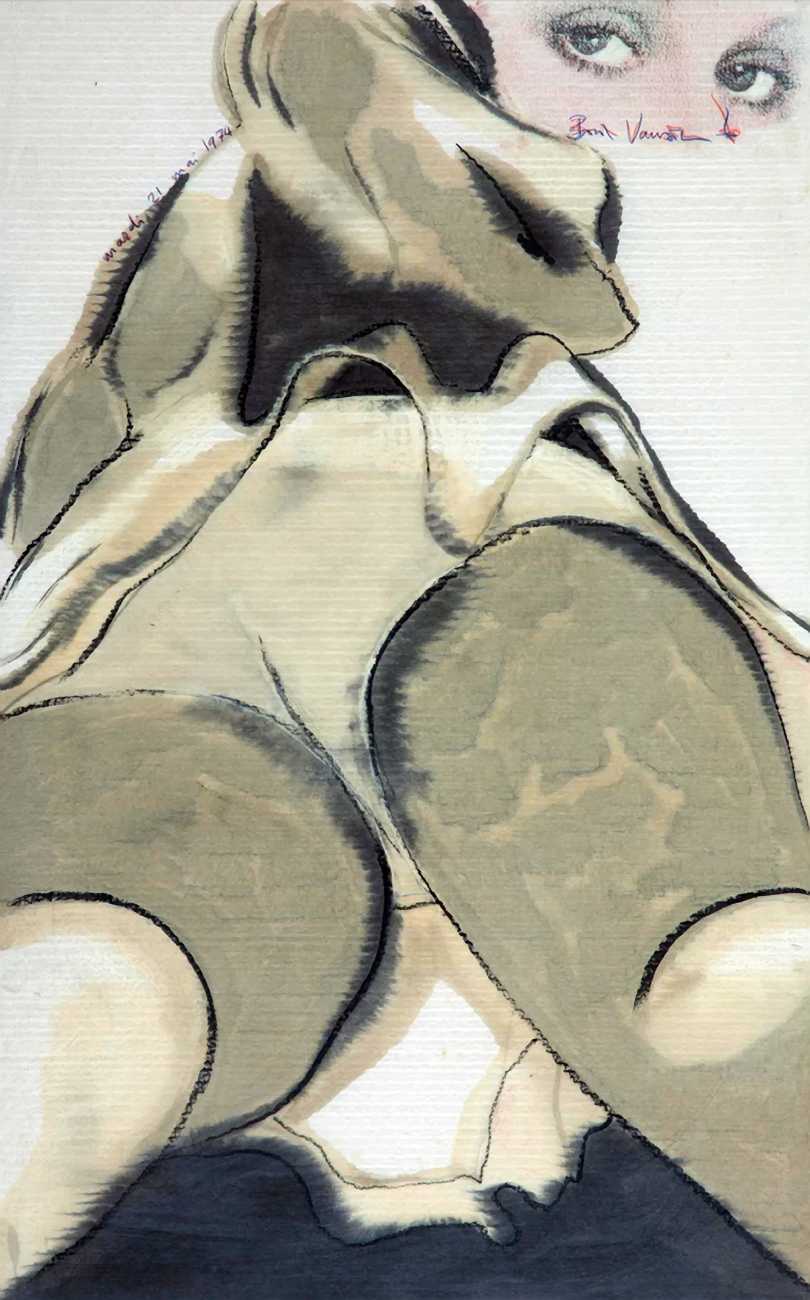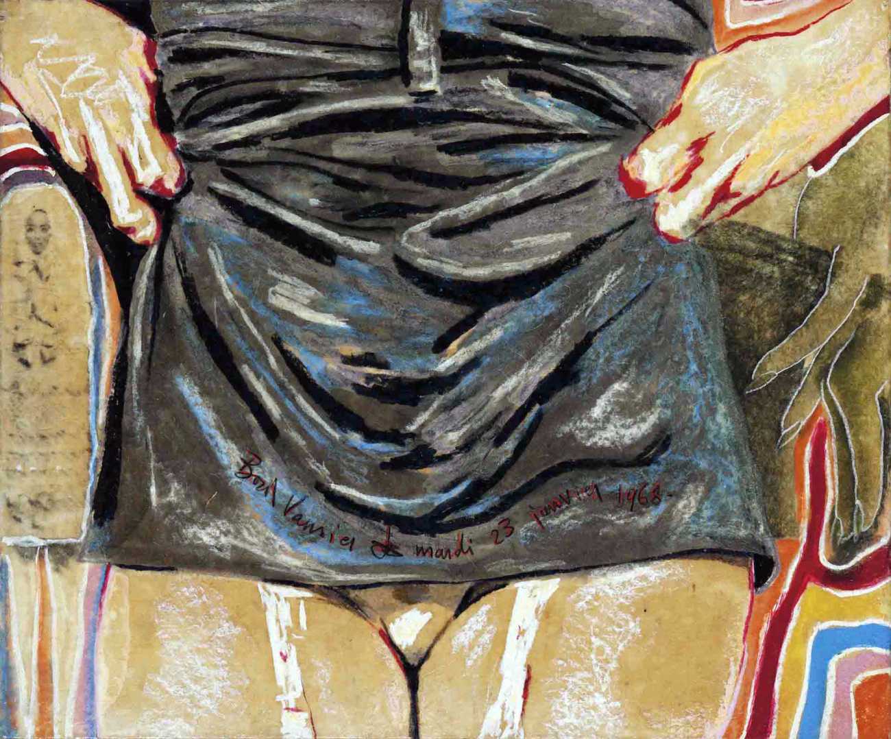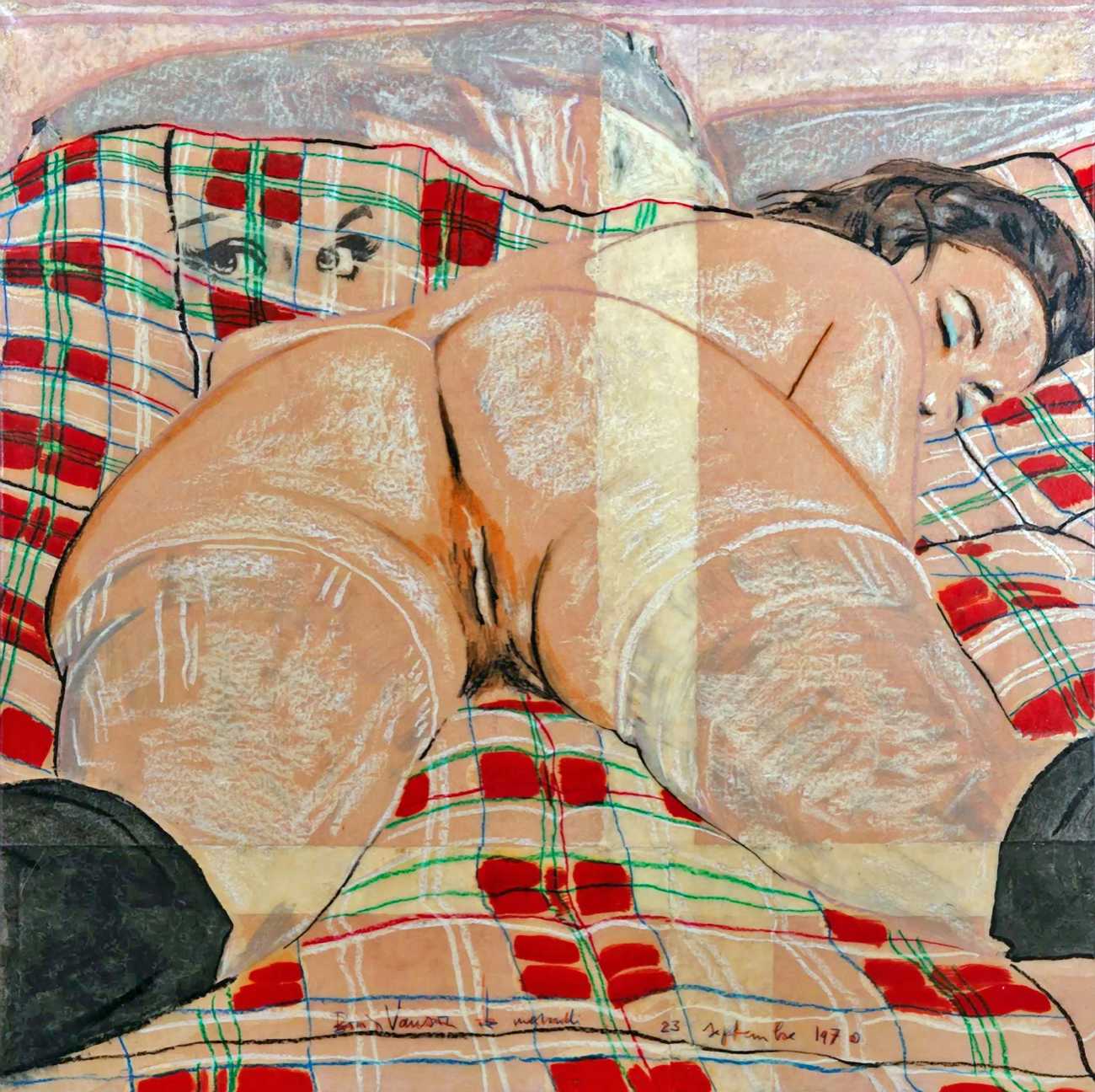 ‘Les Offrandes de Boris Vansier’ (The Offerings of Boris Vansier) caused quite a stir when it was first exhibited at Iris Clert’s Paris gallery in 1967. French networks and newspapers hotly debated whether the art was erotic or pornographic. The body of work which started life as Les Offrandes in the 1960s evolved into the largest and most significant series in Vansier’s corpus. A year later Phyllis and Eberhardt Kronhausen included some of Vansier’s work in their much-publicised International Exhibition of Erotic Art in Copenhagen; they also interviewed the artist in their book The Complete Book of Erotic Art. It is worth reminding ourselves of the reception of these works in the context of the ‘swinging sixties’, and asking how much has – or has not – changed between then and the age of Me Too and the criminalisation of non-consensual activities such as upskirting.