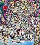 When I had a private show of the Offrandes in Paris, it looked like an obsessive painter showing his obsessive work; it didn’t look like an erotic show. It might have struck people as some kind of oddity in painting. The same paintings here are in context with other artists’ works, and suddenly they fall into place and simply come across as another contribution in another art medium. And seeing this gives me a great sense of satisfaction and vindication after the previous negative experience.