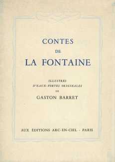 In 1952 the Paris publisher Éditions Arc-en-Ciel decided to publish a new complete illustrated edition of all of La Fontaine’s fables and tales. For the five volumes – one of fables and four of tales – they commissioned Gaston Barret, by this time known for his ‘acceptable’ erotic work on projects including Sade’s Justine and the memoires of Fanny Hill. Barret produced twelve coloured prints for each volume, a total of sixty, together with a set of black and white versions with small remarques, additional drawings in the bottom margin.