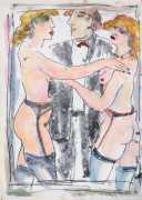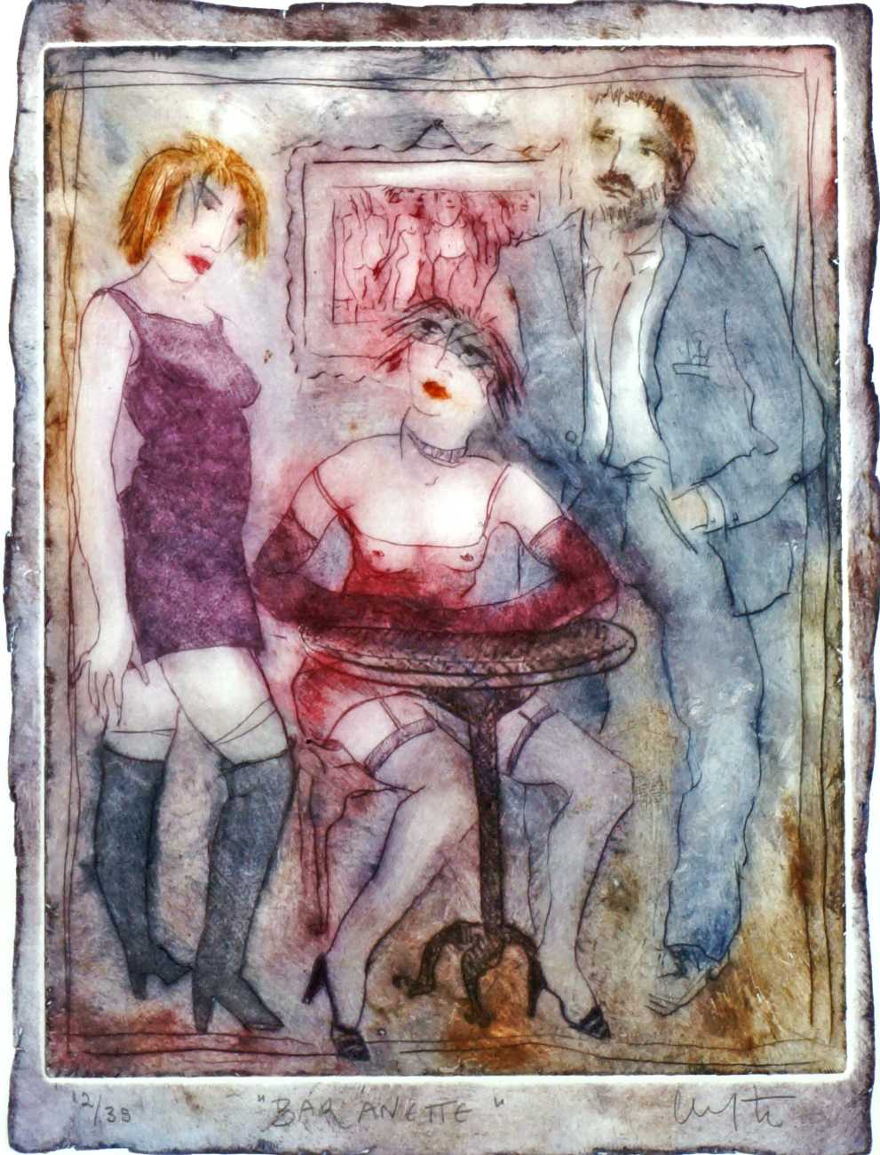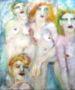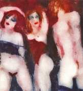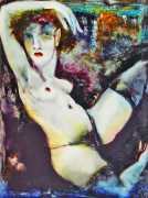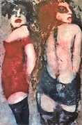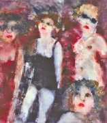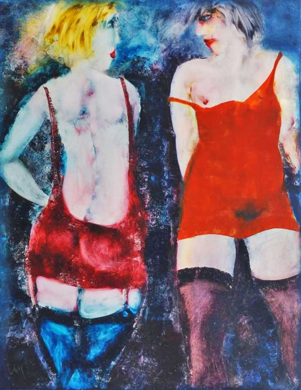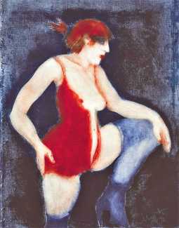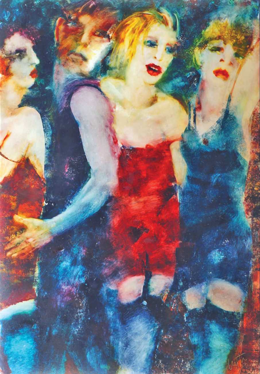 It is in her large, colourful paintings of London nightlife that Clayton’s passion is most immediately apparent. Living and working in the north London area of Hampstead, she was a regular visitor to the then-notorious clubs of Soho and its surroundings, and often sought out dancers and sex workers as her subjects. She had a natural affinity with dance, music, and the dubious interactions of the Soho underworld, a subject matter which perfectly matches her free painting style.