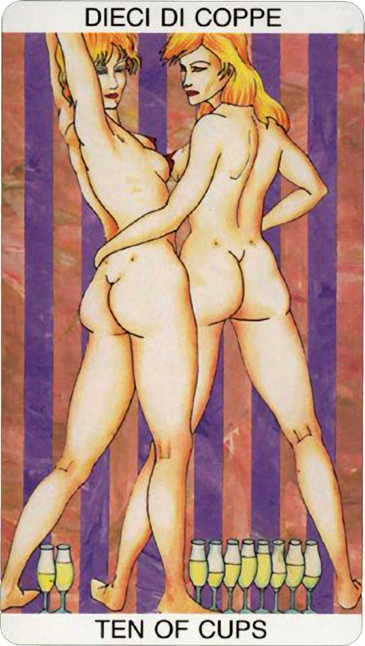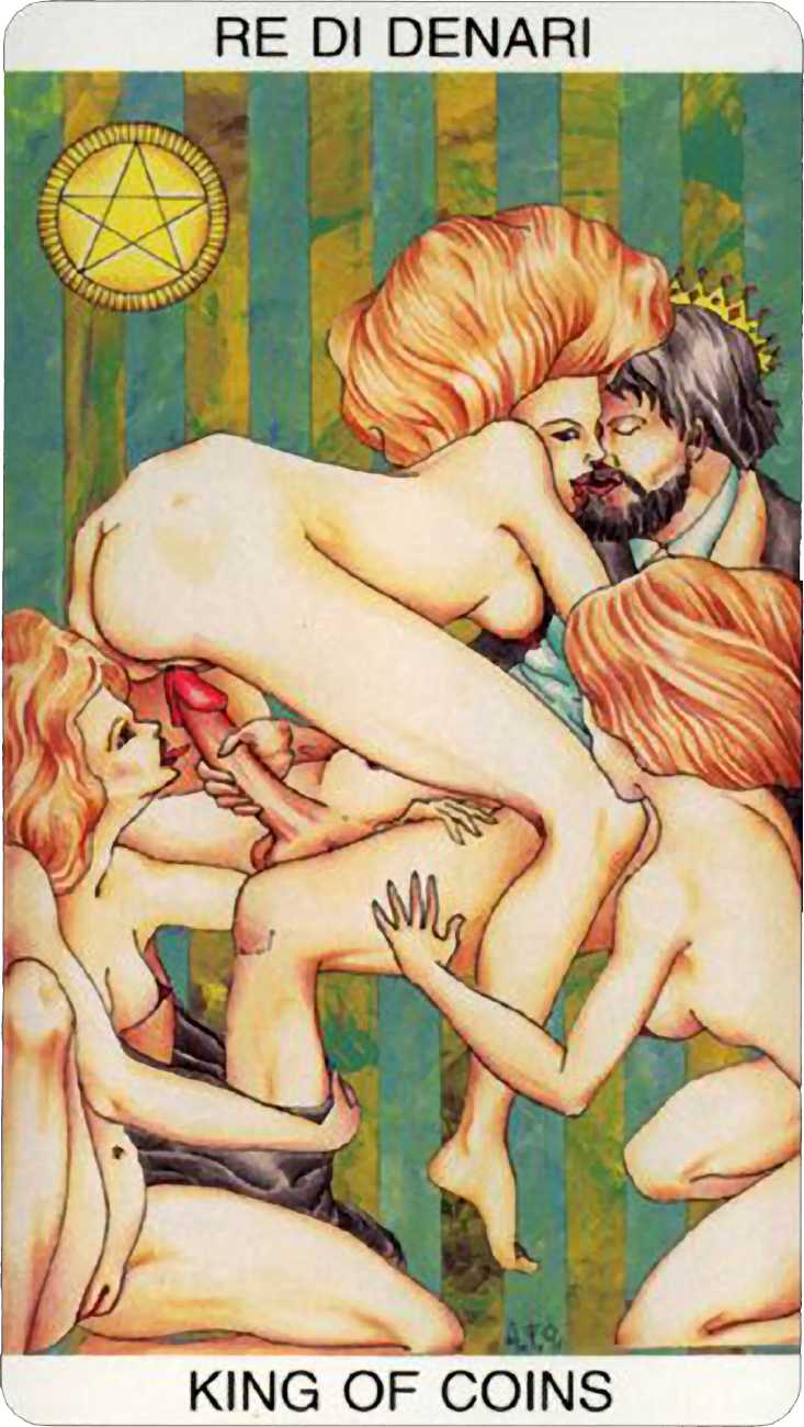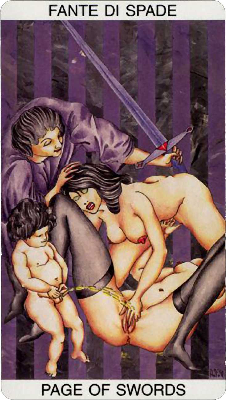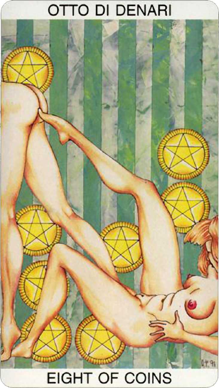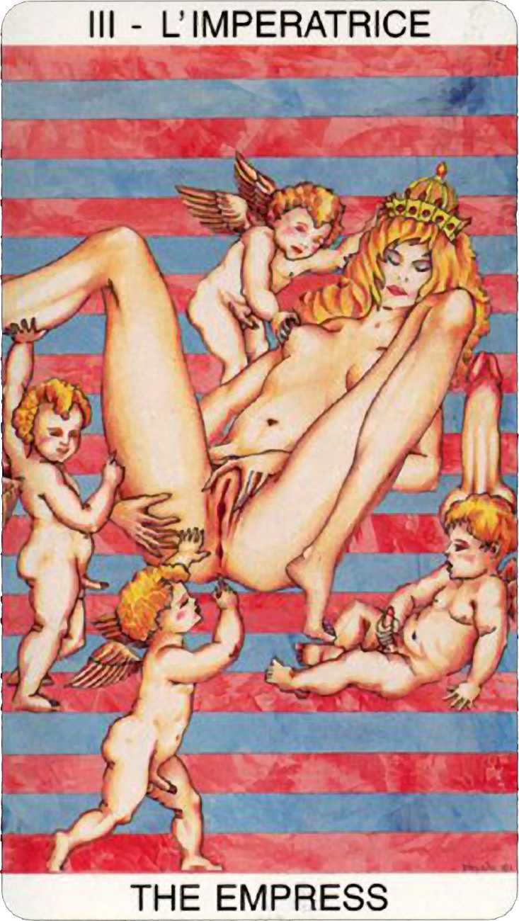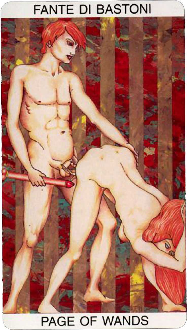 The Tarocco Erotico dei Giardini di Priapo (Erotic Tarot of the Gardens of Priapus) is by quite some way the most explicitly sexual of all the many tarot packs created by Amerigo Folchi.