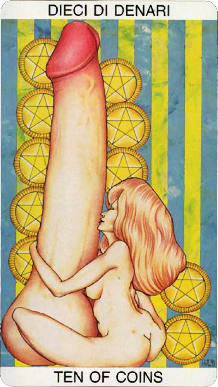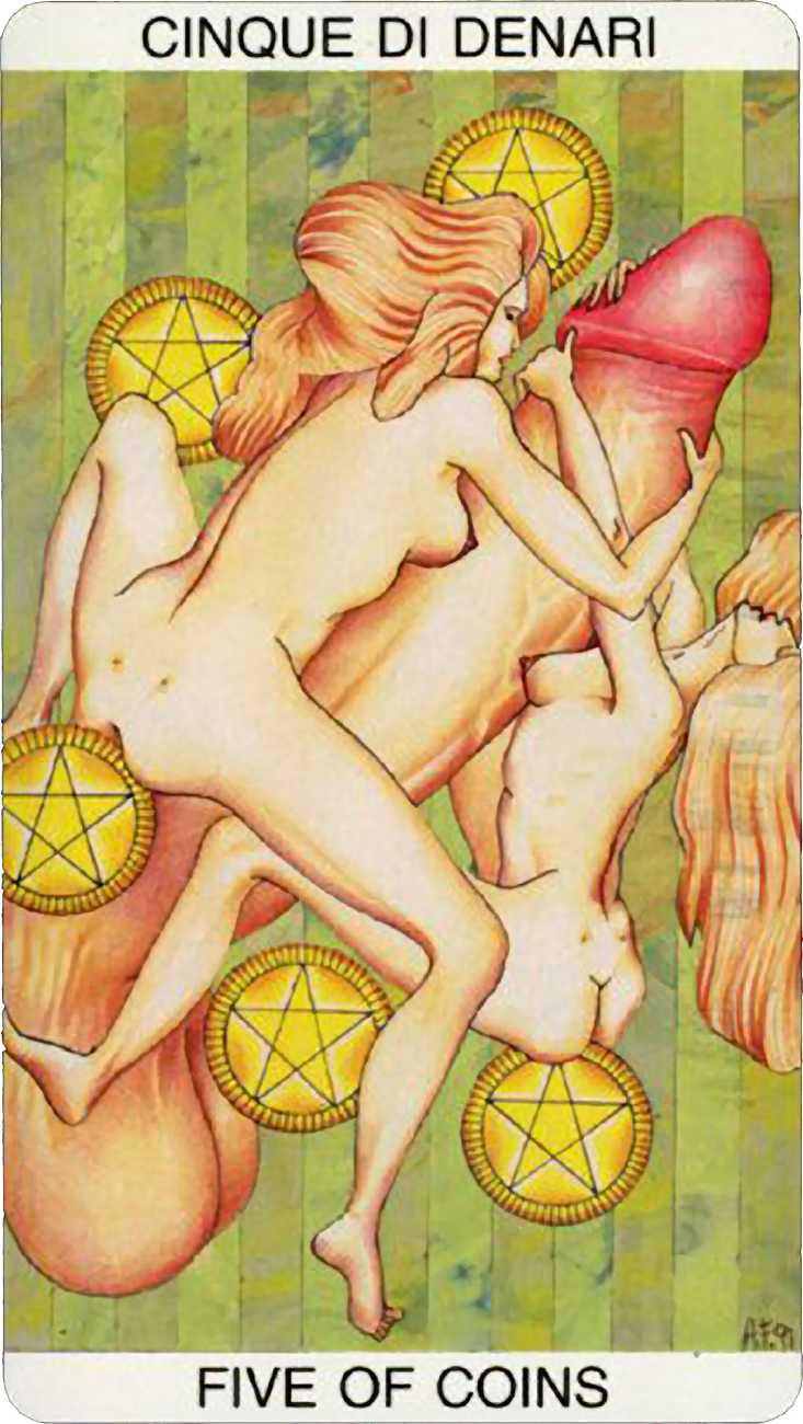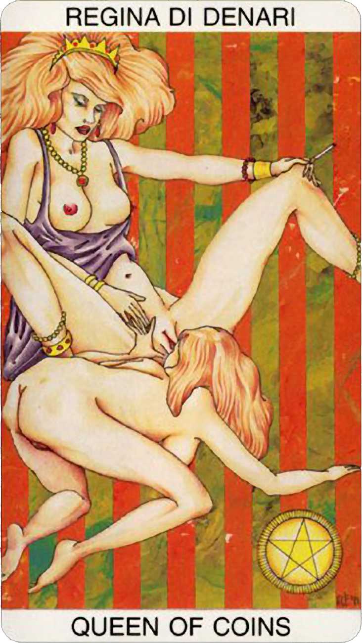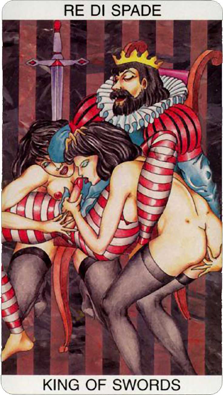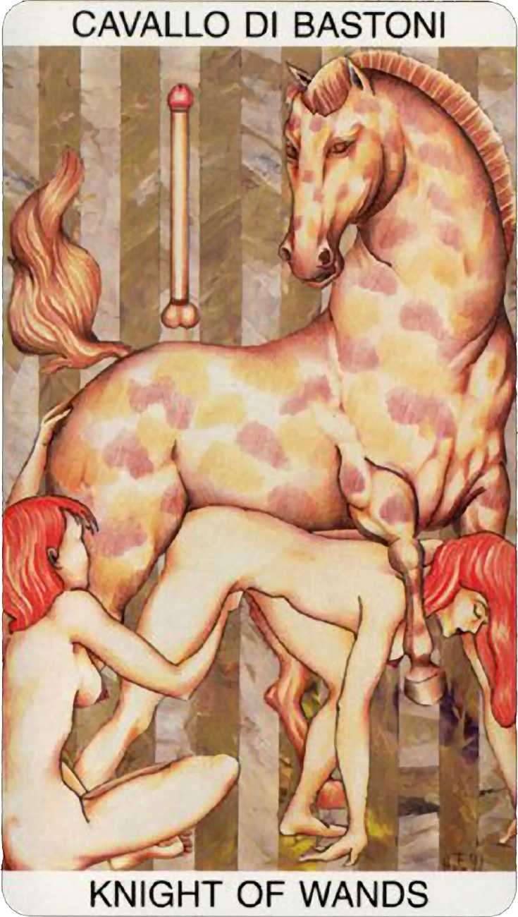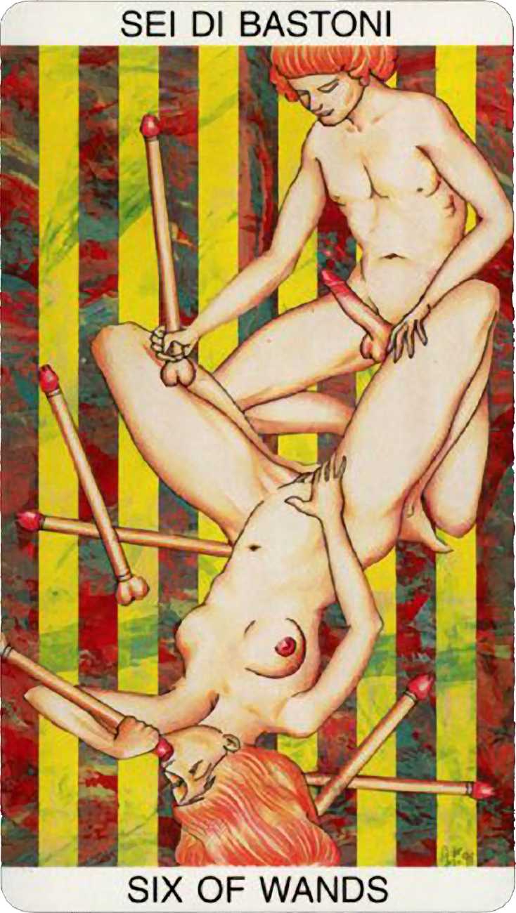 The Tarocco Erotico dei Giardini di Priapo (Erotic Tarot of the Gardens of Priapus) is by quite some way the most explicitly sexual of all the many tarot packs created by Amerigo Folchi.