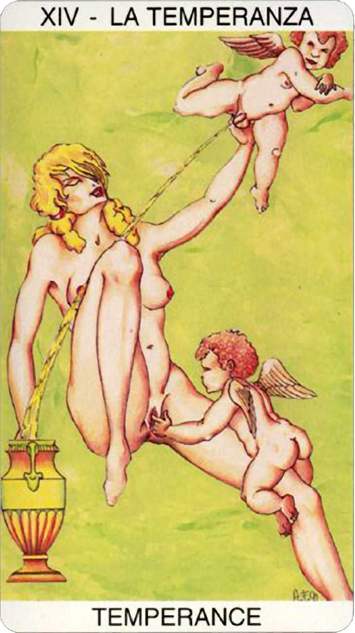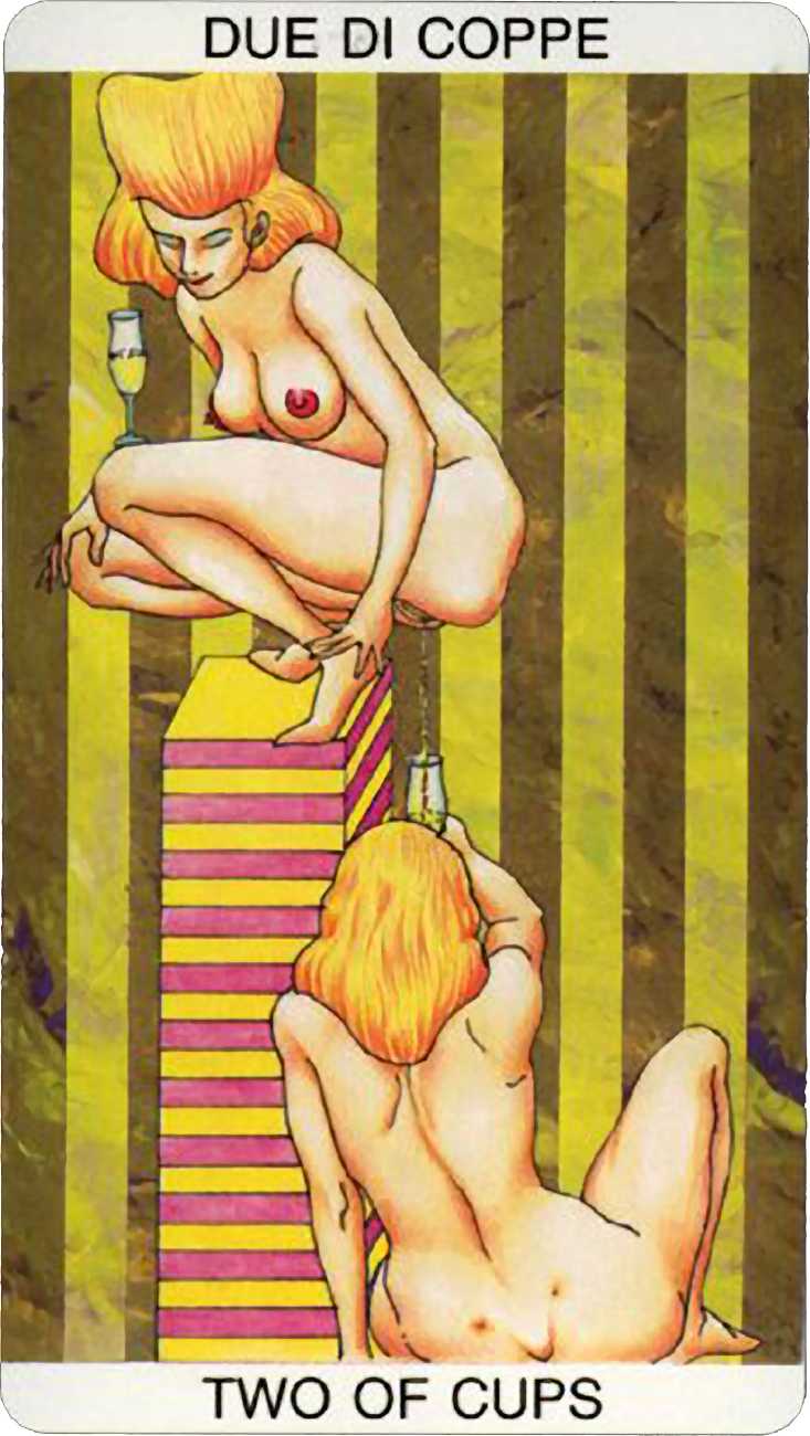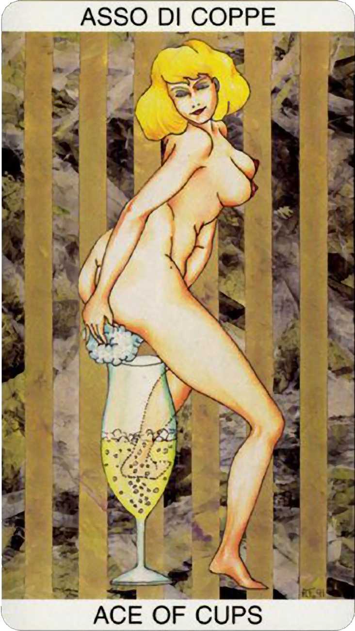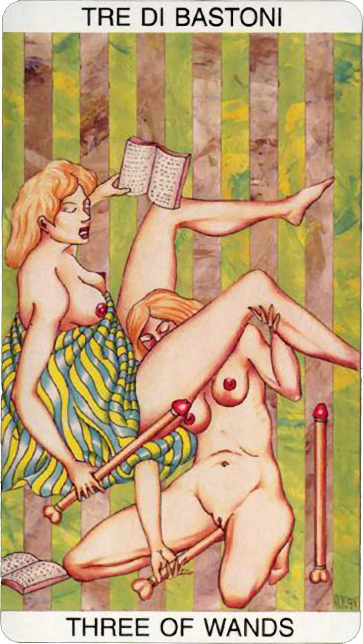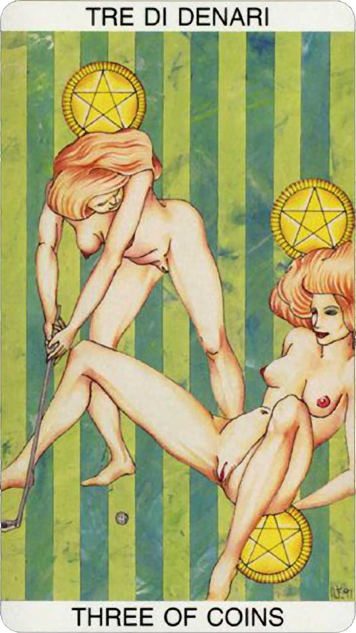 The Tarocco Erotico dei Giardini di Priapo (Erotic Tarot of the Gardens of Priapus) is by quite some way the most explicitly sexual of all the many tarot packs created by Amerigo Folchi.