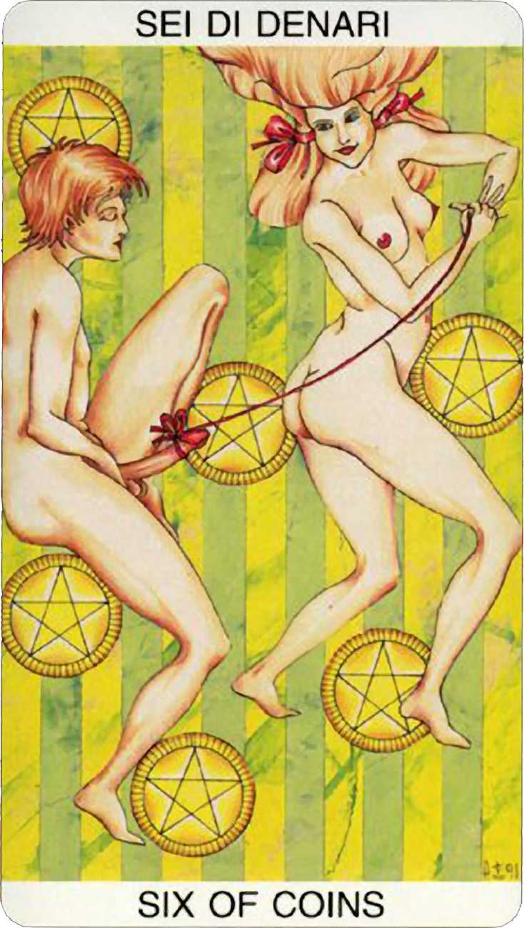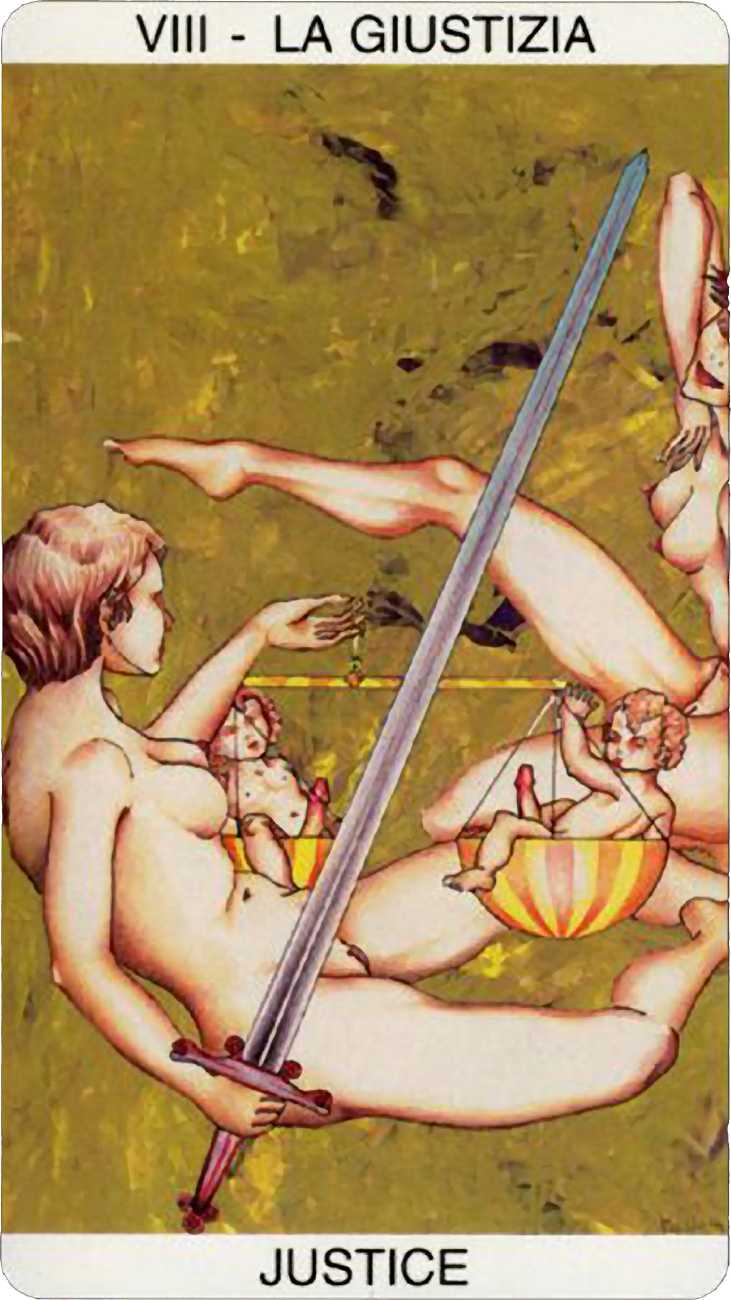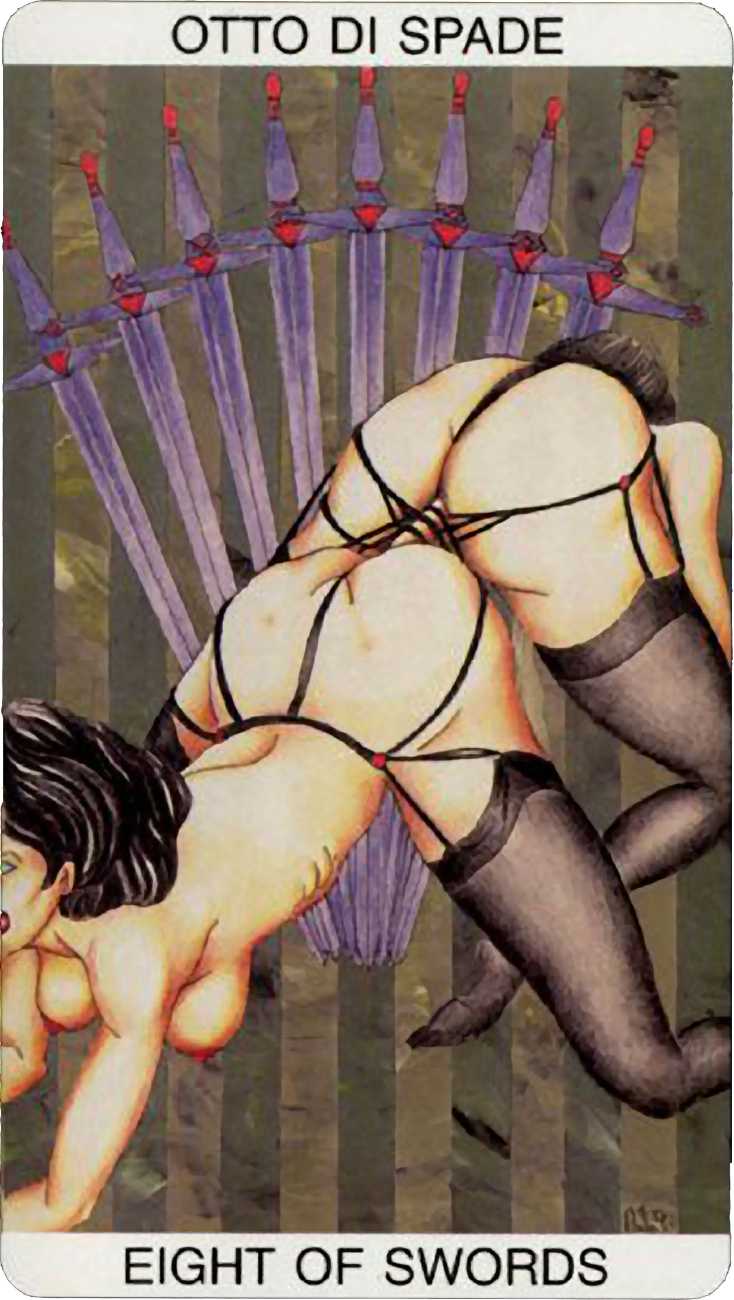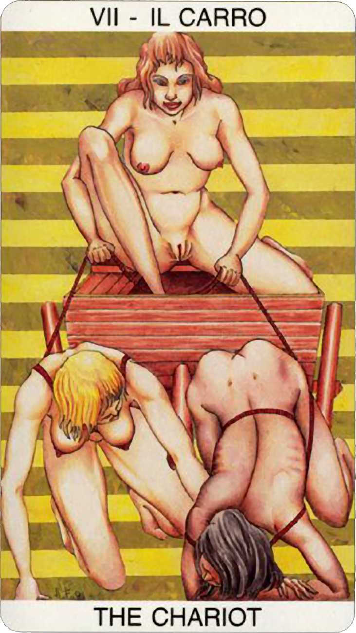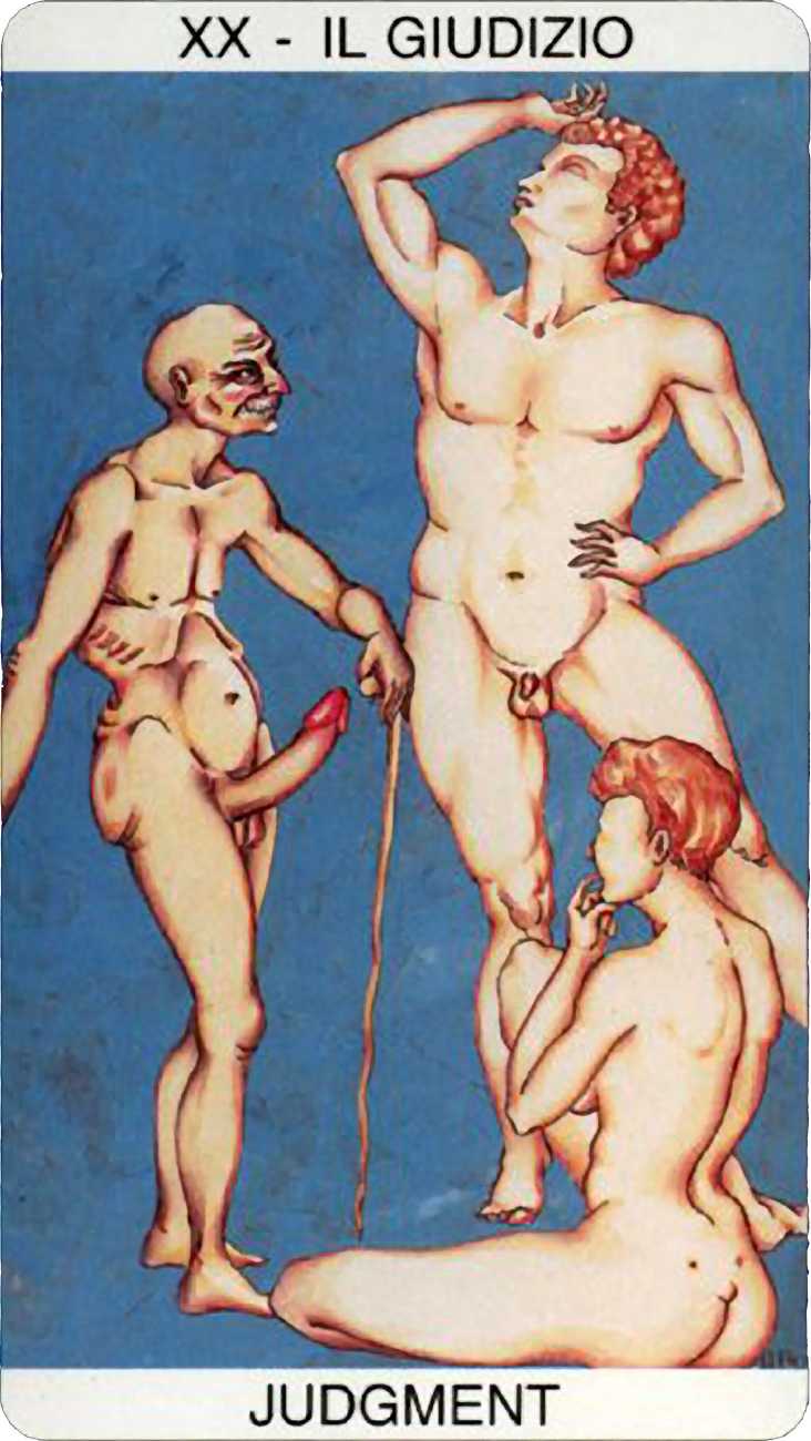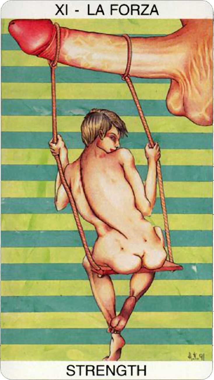 The Tarocco Erotico dei Giardini di Priapo (Erotic Tarot of the Gardens of Priapus) is by quite some way the most explicitly sexual of all the many tarot packs created by Amerigo Folchi.