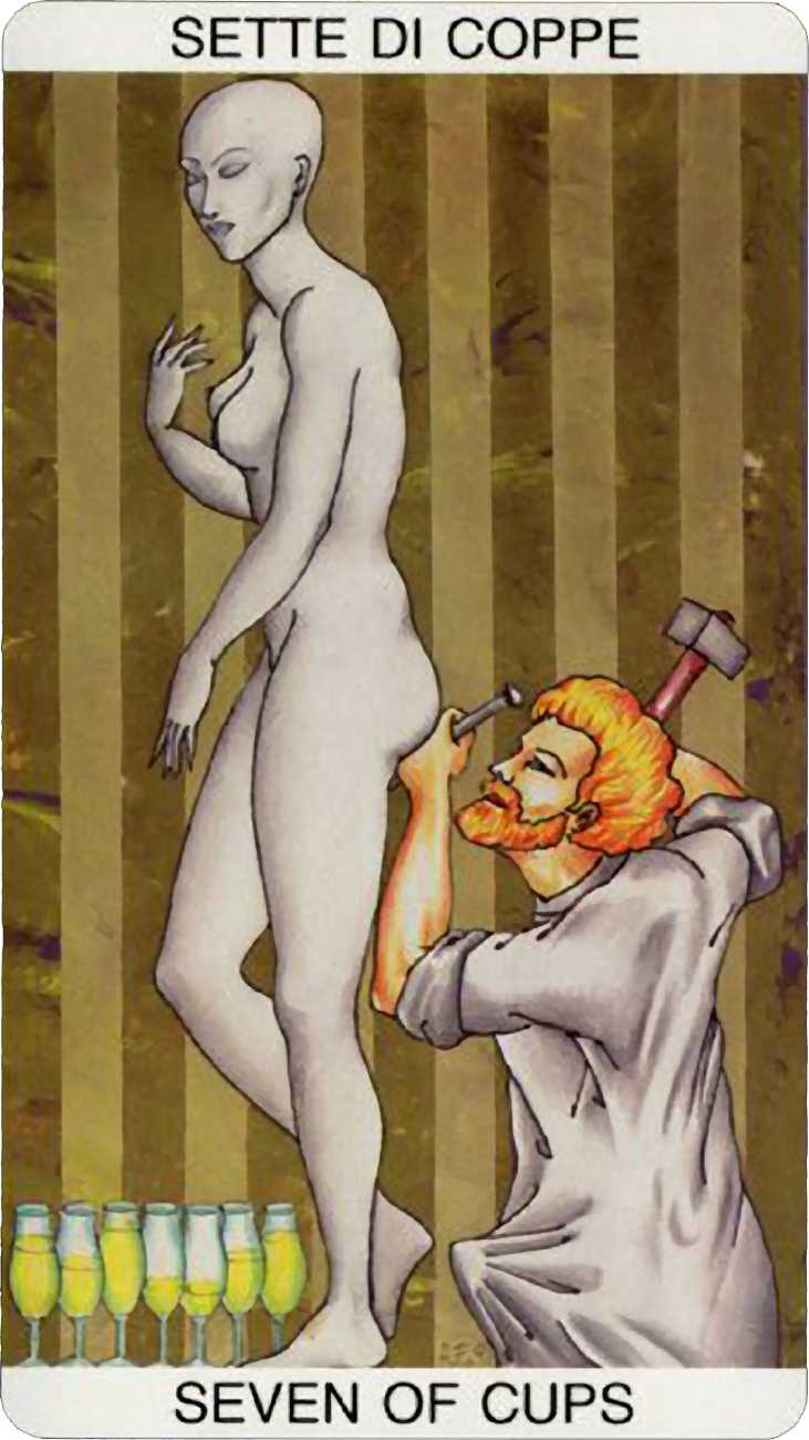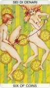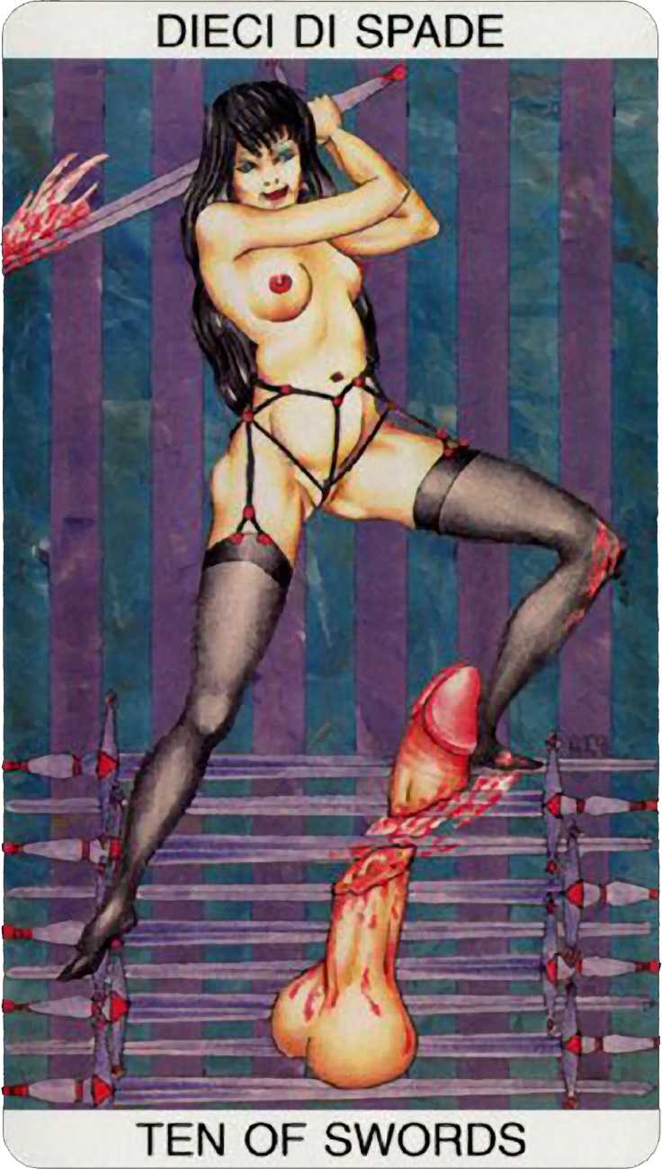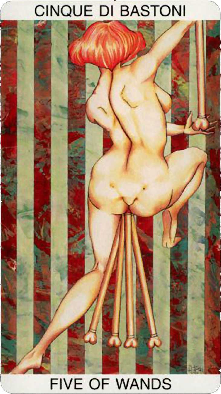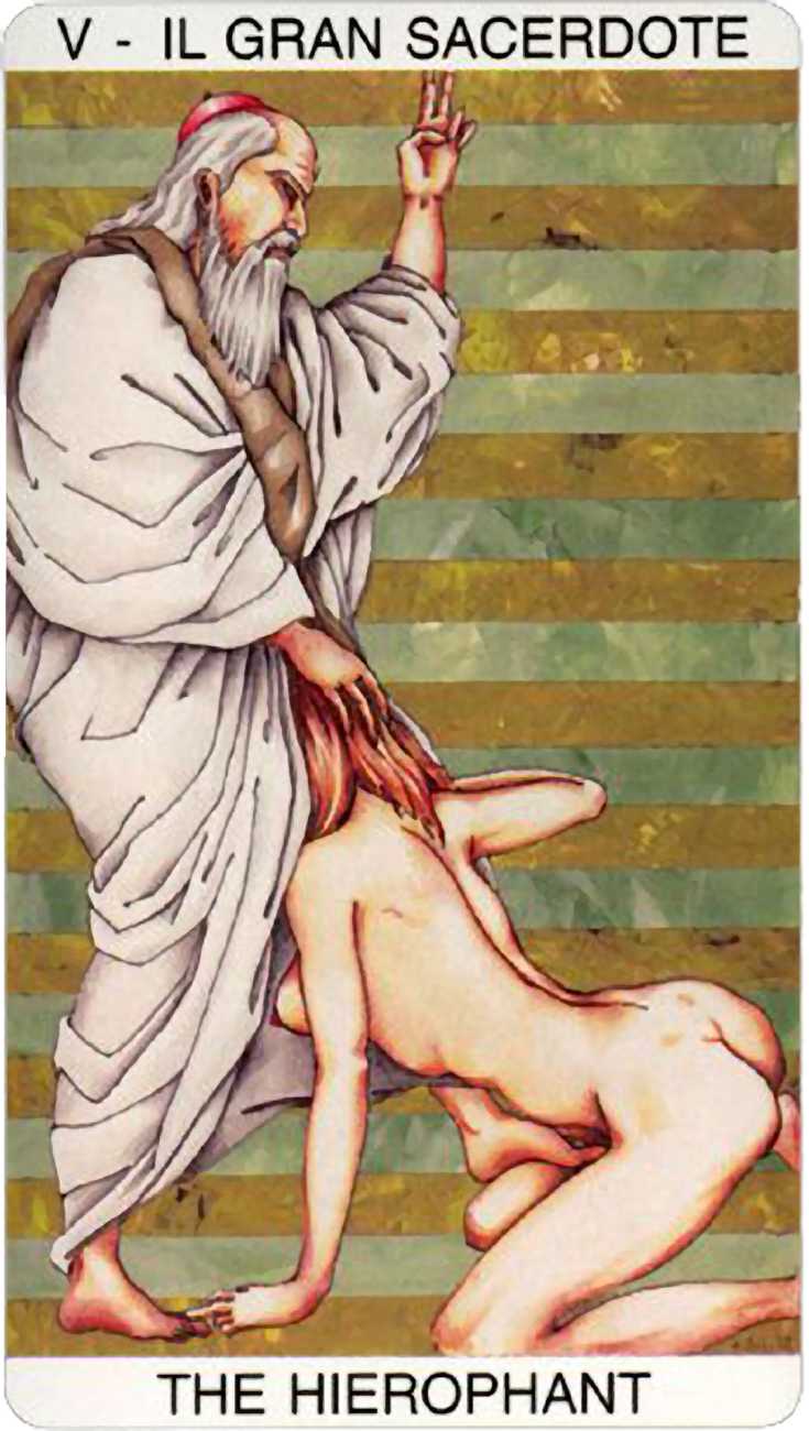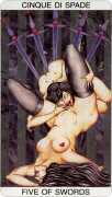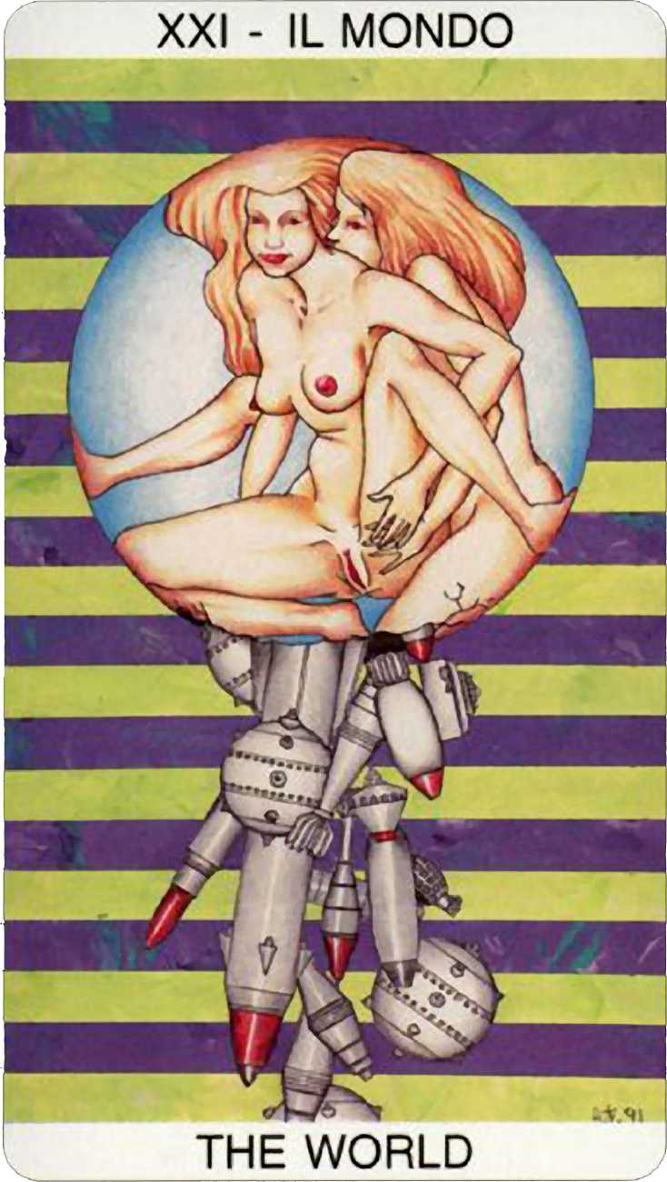The Tarocco Erotico dei Giardini di Priapo (Erotic Tarot of the Gardens of Priapus) is by quite some way the most explicitly sexual of all the many tarot packs created by Amerigo Folchi.