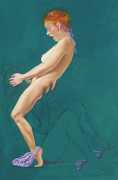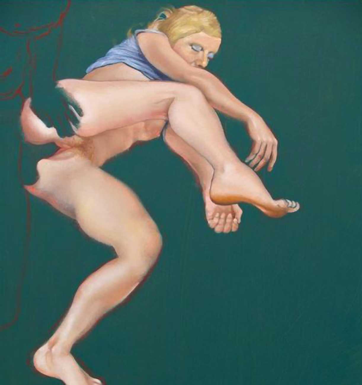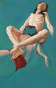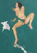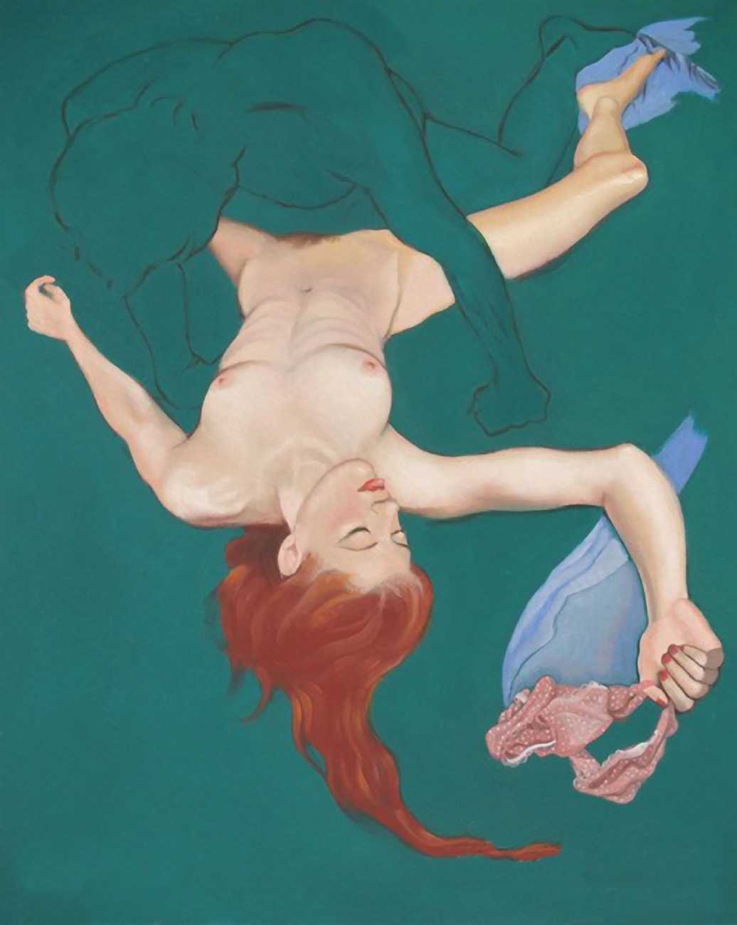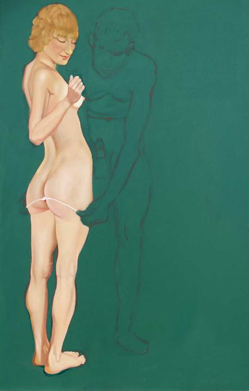 In The Blue Series, made during the 1990s, a naked young women in full colour makes love with a shadowy male partner outlined against a turquoise-blue background. She is clearly the subject of the series, he the subordinate participant who enables and encourages her active pleasure in the encounter.