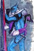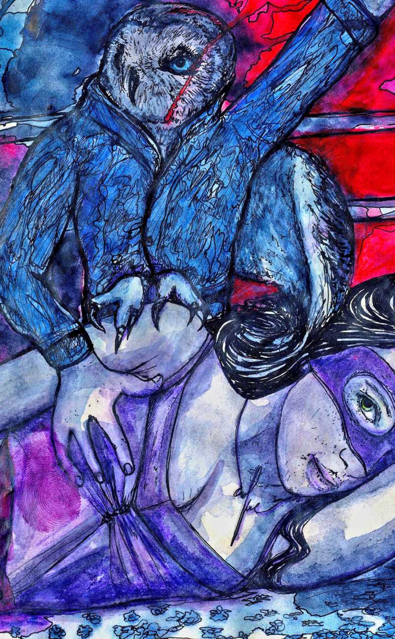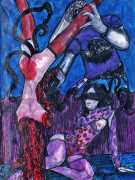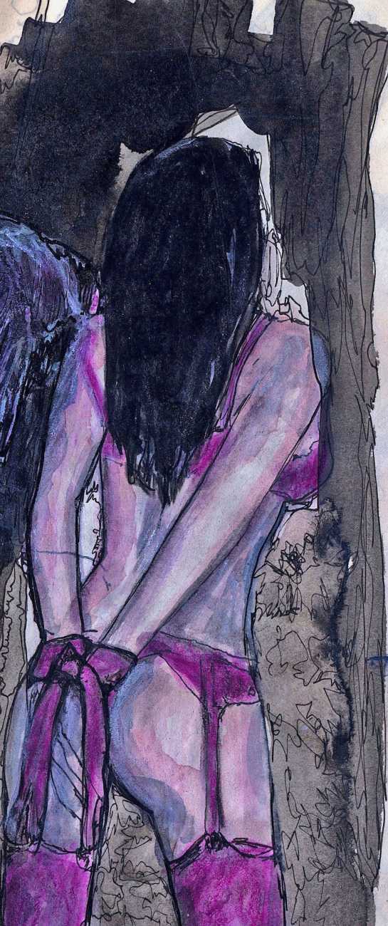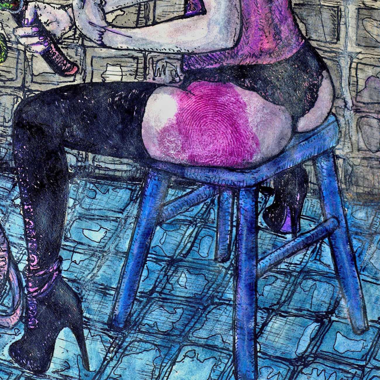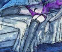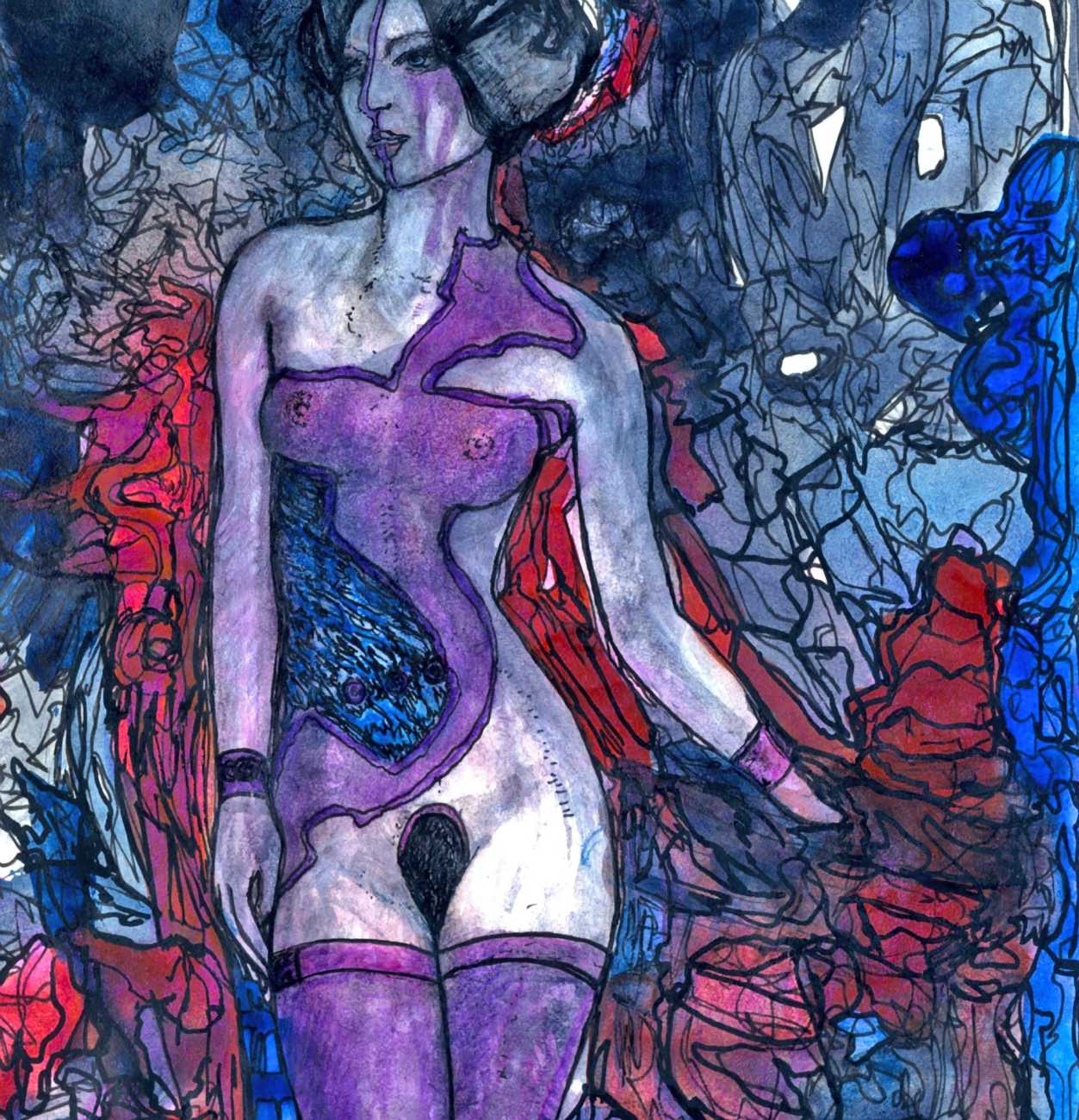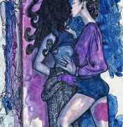 The work of Charles Swann contains a note of transgression, a consensual relationship where his protagonists complicitly participate in erotic games that explore hidden passions and desires. It is the constant search in the contradictory and dark human mind, for the most authentic, hidden and remote truths, the most secret and repressed desires. The mixture of coloured pencils and watercolours gives his style a personal character that culminates with a fingerprint on many of his drawings as an original signature.’