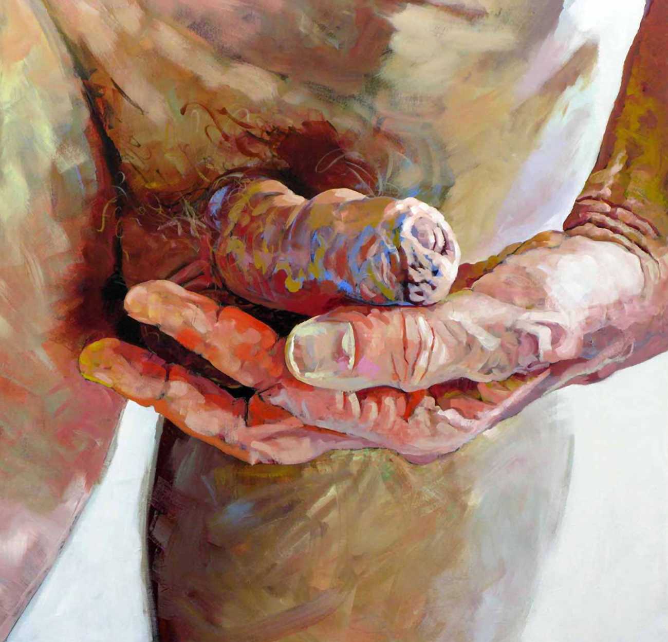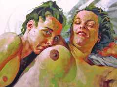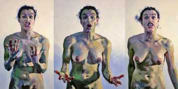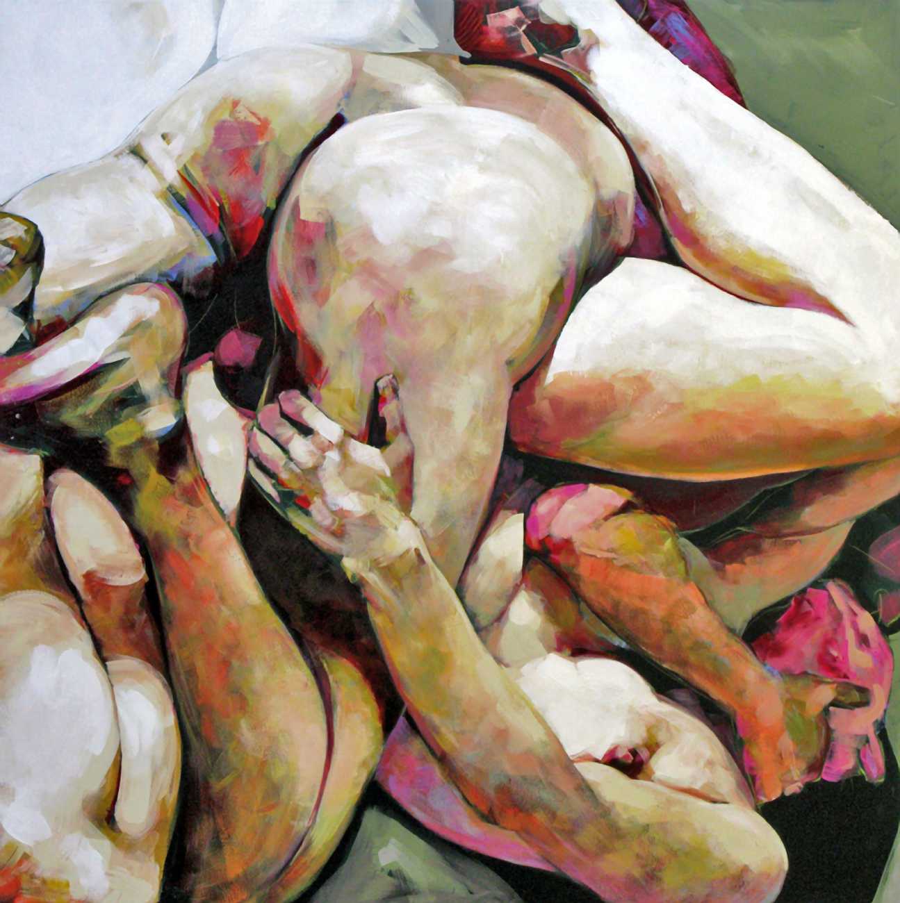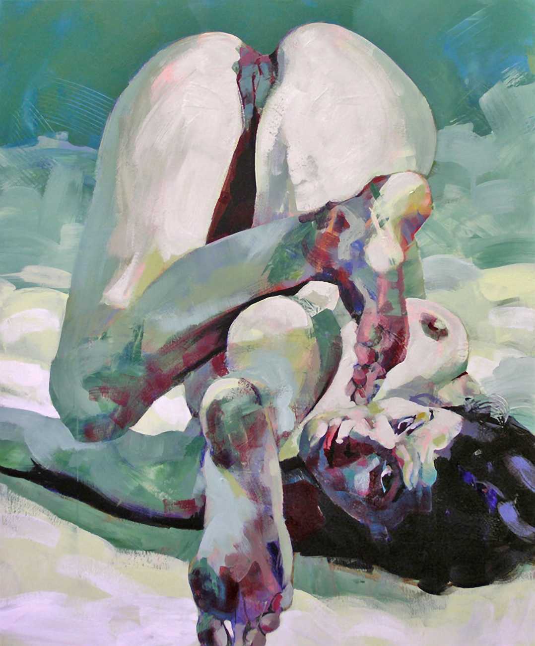 The bodies and faces in Hanjo Schmidt’s paintings represent the human being as it is – an ambivalent existence, beautiful and at the same time ugly, vulnerable and brusque, searching and denying, showing and hiding. Looking at his paintings is like looking in the mirror reflecting ourselves.