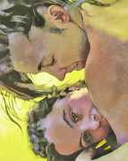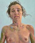 What is more, Schmidt exaggerates expressively what he sees in contrast to the smoothing-out of commercial pictures with the help of Photoshop. He emphasises and underlines everything the cosmetic industry would try to hide. These faces are not normed or standardised, but belong to individuals. Thus his paintings are a departure from the smooth evenness of the beautiful façade, going to the core of the human essence.