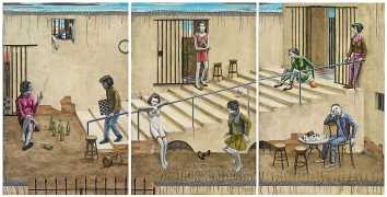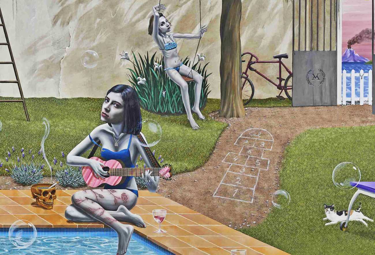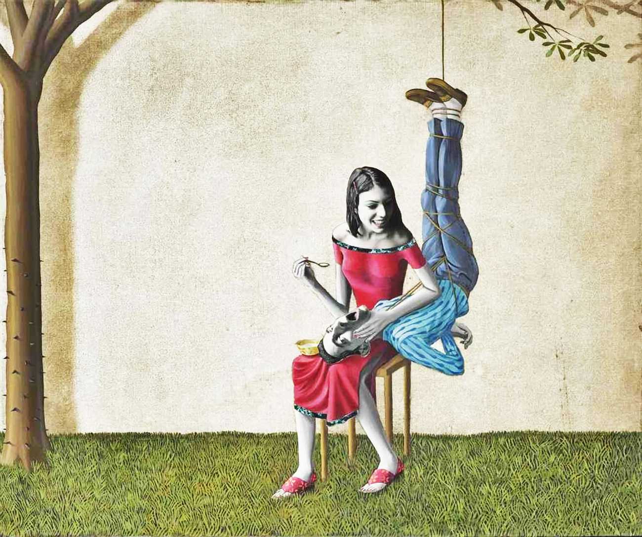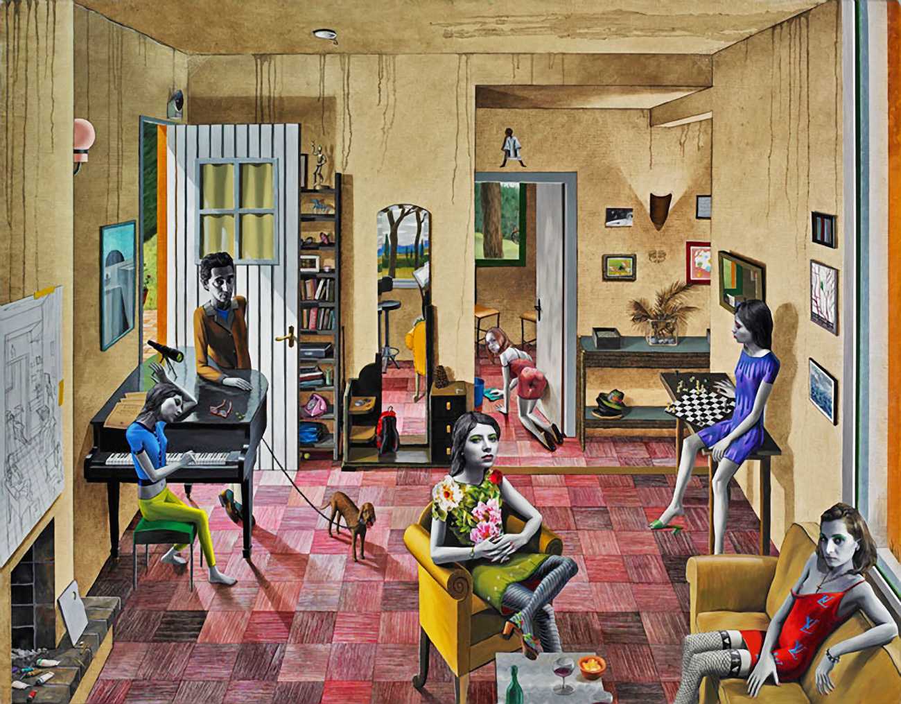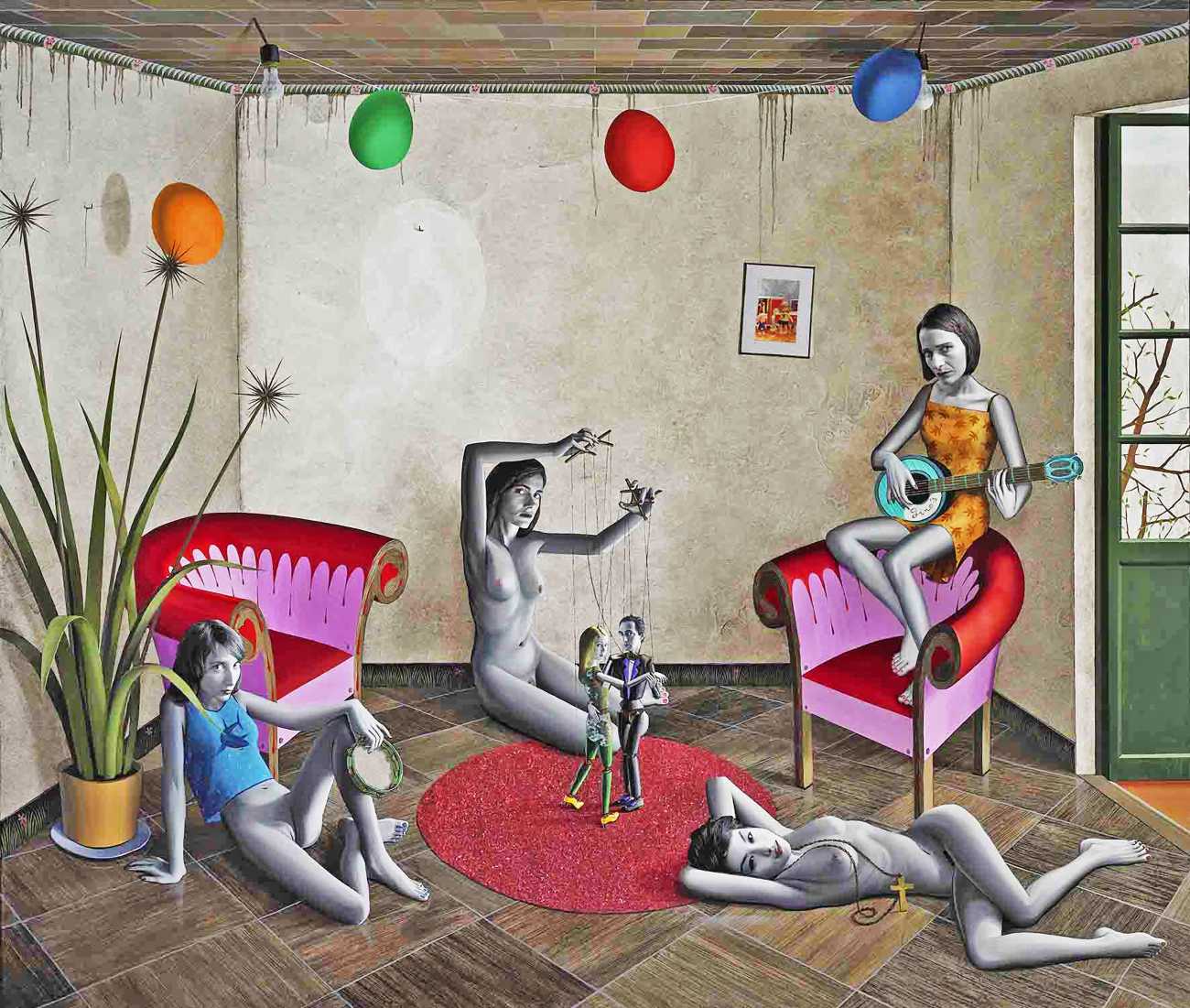 His large-format pieces evoke all kinds of other works, both ancient and modern. We see echoes of Bosch’s Garden of Earthly Delights and A Midsummer Night’s Dream, but also Beyond the Pleasure Principle and other essays by Freud, acknowledging a determination to face our sinister side, and many of Nietzsche’s essays, honouring the writer’s defence of freedom, vitality and redemptive laughter.