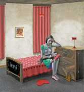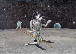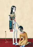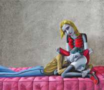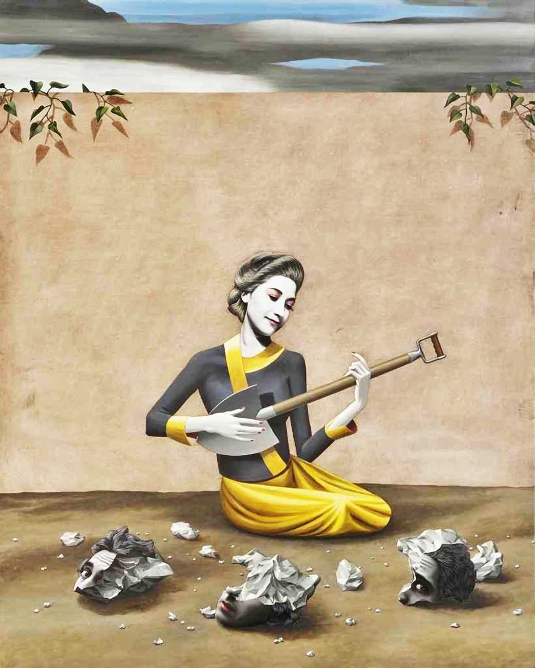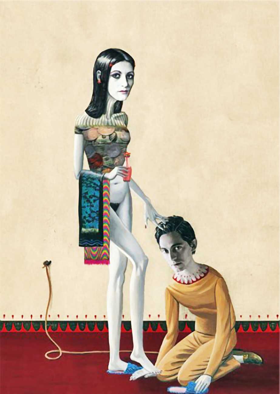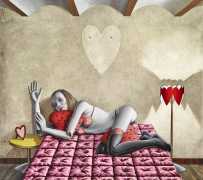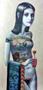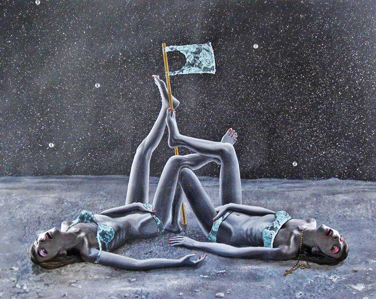 The work references a beautiful little tale by Hans Christian Andersen. The story goes like this – a king hires a fashion designer to create a beautiful outfit for him which will be the best outfit worn in the history of royalty. He ends up hiring a designer who is not so trustworthy. The day comes to show off the outfit, and the king sallies forth in it. He struts around, and the citizens of the town all admire his new clothes – except for a little kid, who says, ‘But the king is naked’. And his is indeed. To me this is a metaphor about the art world, where everybody says ‘Oh this is this, and that is that’, and sometimes it takes a kid to say that this it’s actually stupid. This story inspired ‘The Empress’s New Clothes’, because she is pretty much naked, but much sexier. She’s beautiful, and as she looks at us she’s asking ‘What do you really see?’. This is what I am constantly asking myself and my viewers.