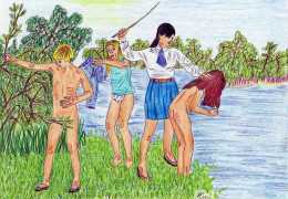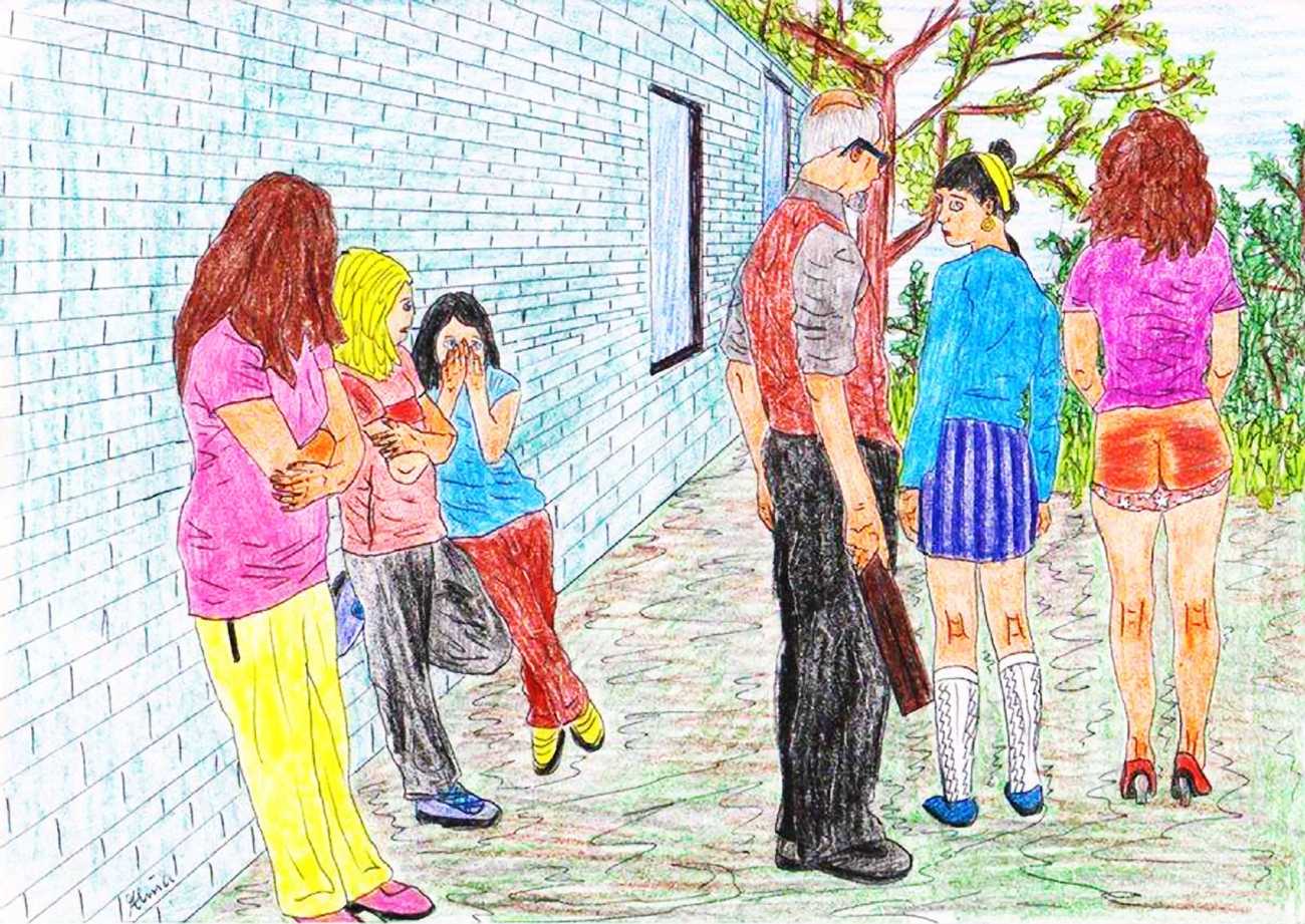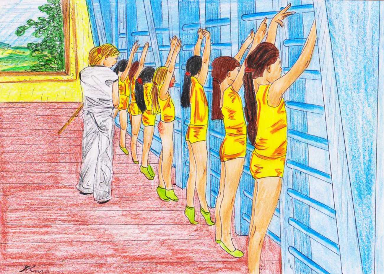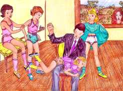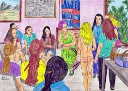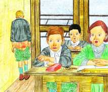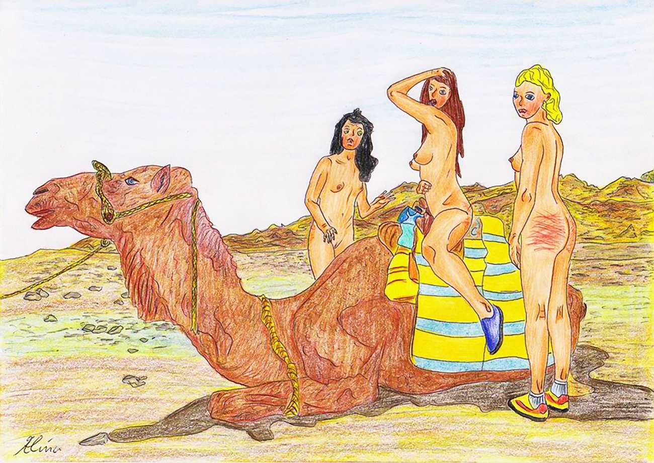 Züchtigung (punishment or chastisement) is the theme of Alina’s drawings, set in a wide variety of contexts from classroom to ‘I’ll show you mine if you show me yours’ scenarios.