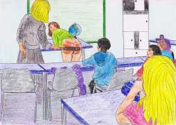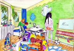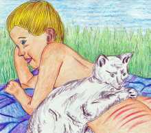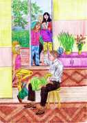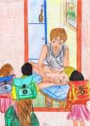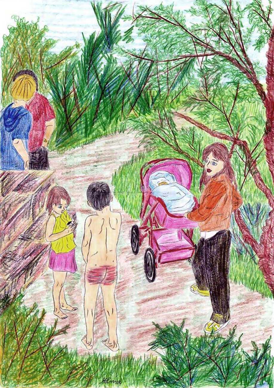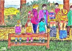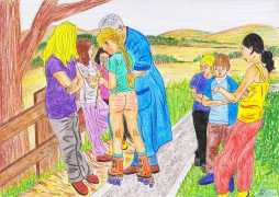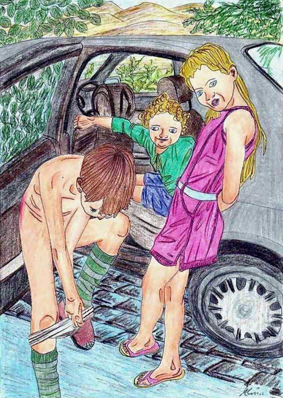 So do not immediately reject these naïve drawings. Ignore how the faces are drawn and how long the arms and legs are. Try not just to look at these works, but also to feel them.