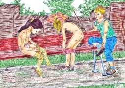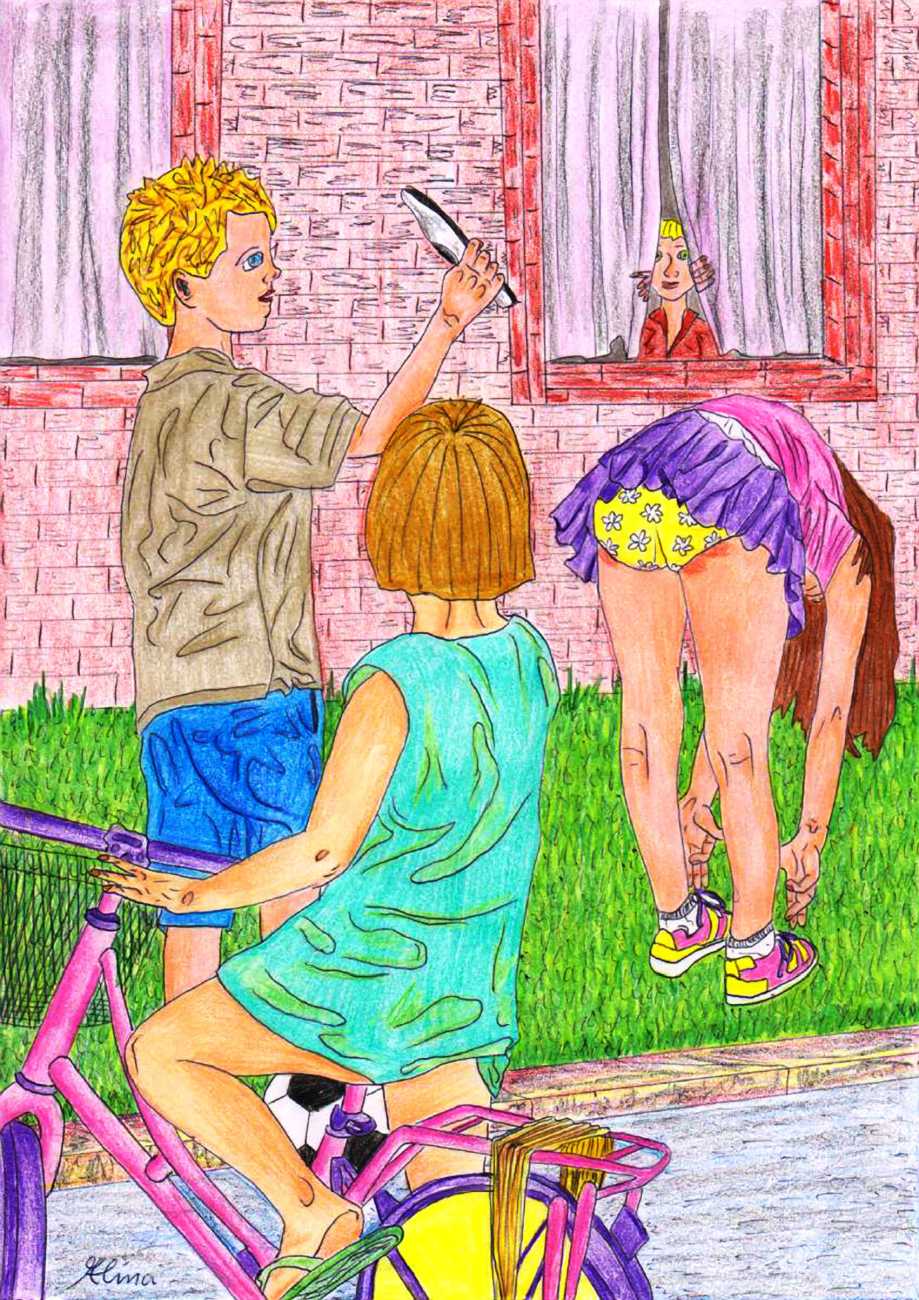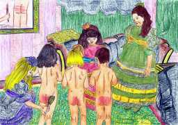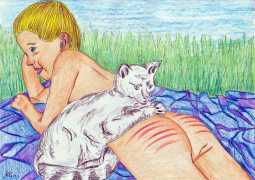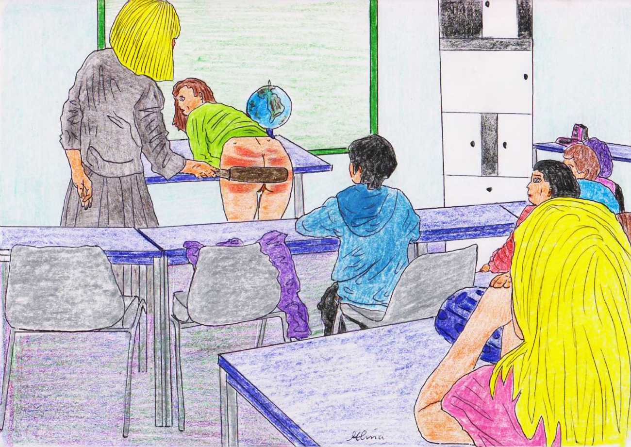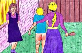 There are quite a lot of amateur artists who draw spanking, but I singled out Alina right away. Despite her lack of technique, her mistakes in perspective and anatomy, her naïve manner of drawing faces, you can see such sincerity, emotion, and an ability to create a narrative.