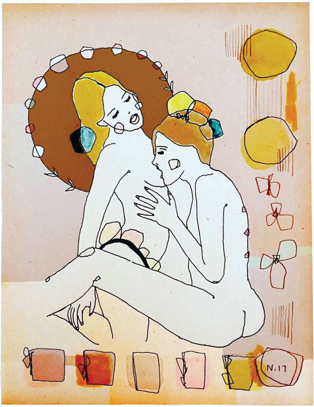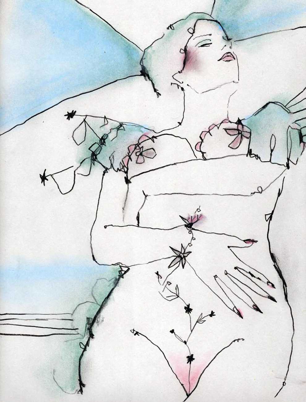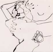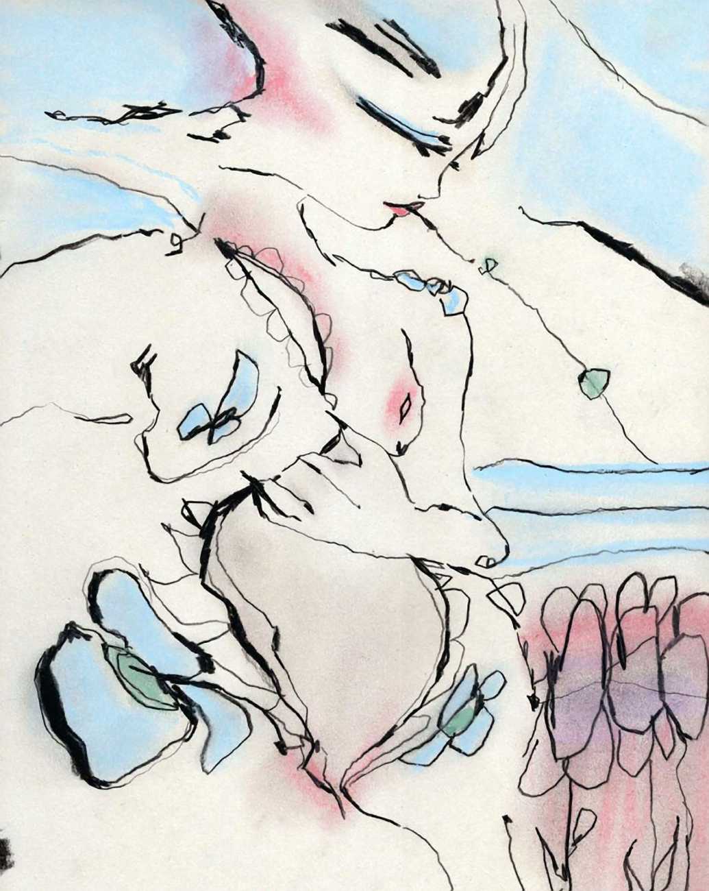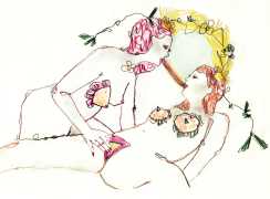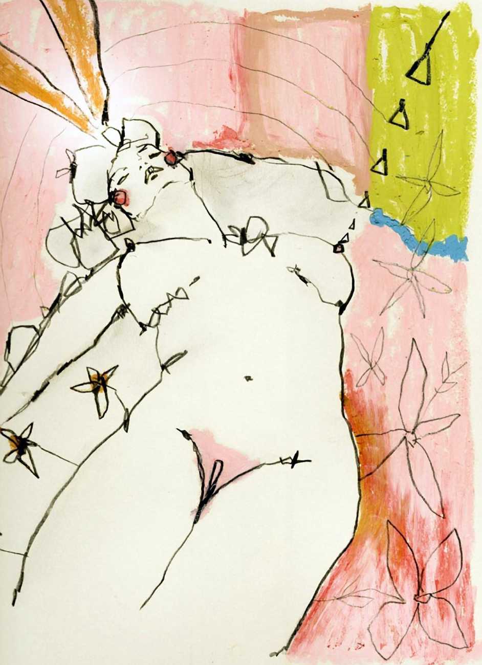 This selection of her work shows her development from a more design-oriented style which sometimes included men, to her recent, looser drawings celebrating women revelling in their sensuality.