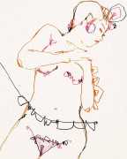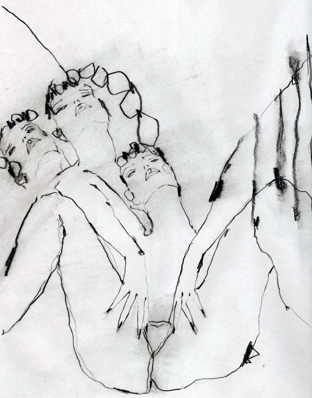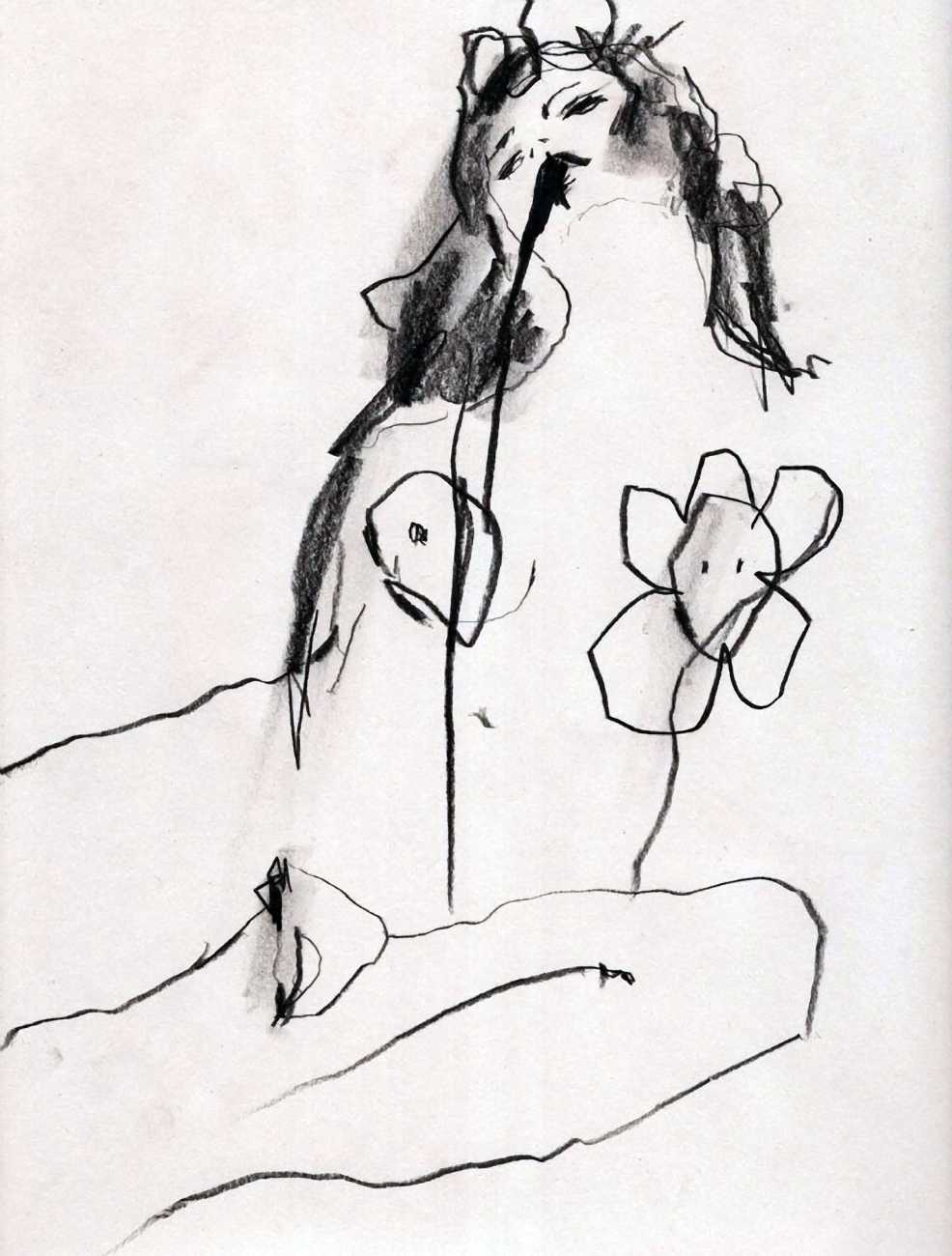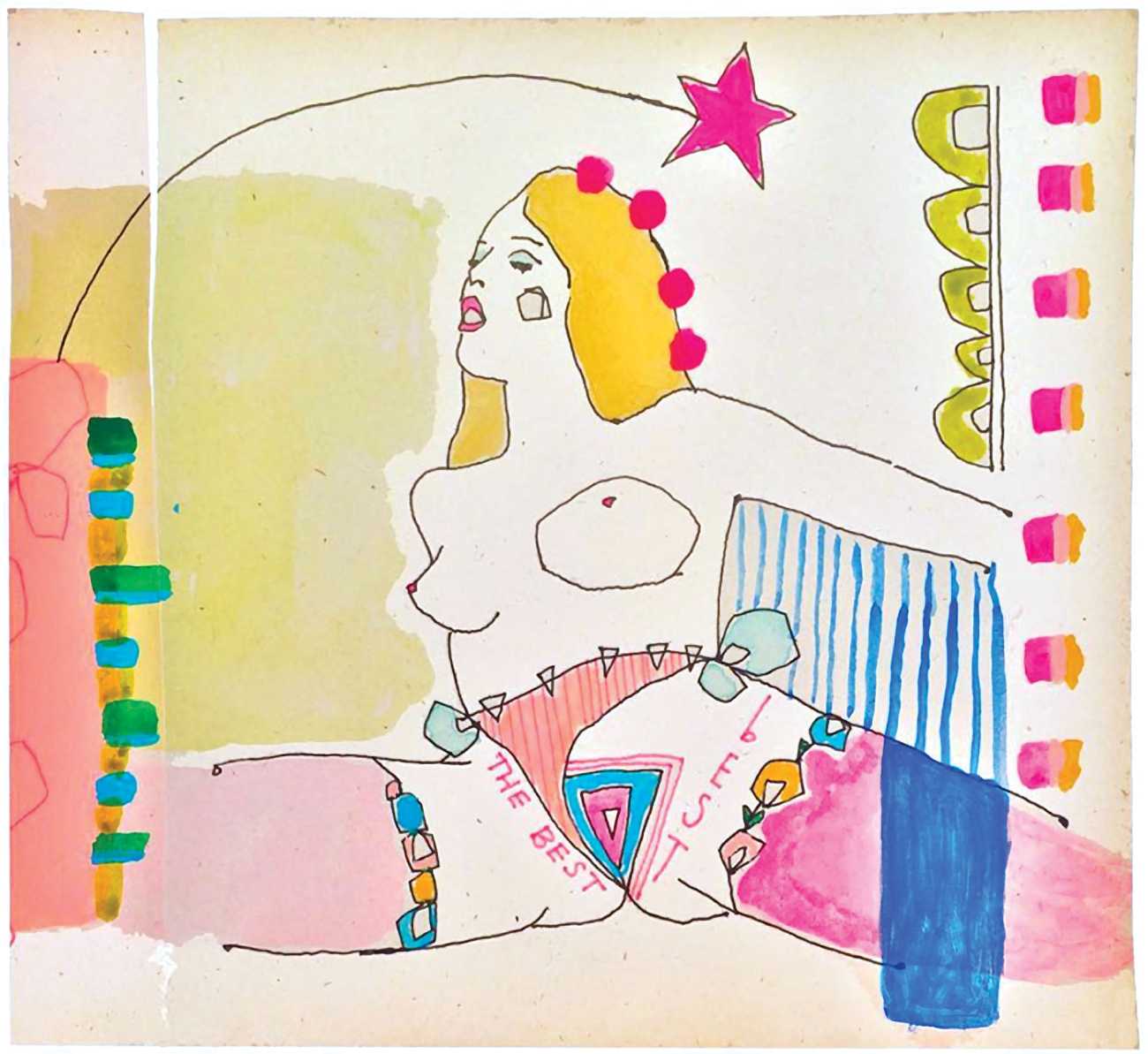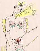 This selection of her work shows her development from a more design-oriented style which sometimes included men, to her recent, looser drawings celebrating women revelling in their sensuality.