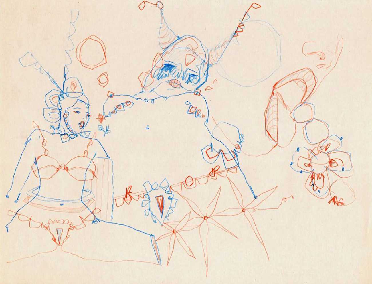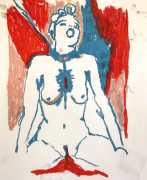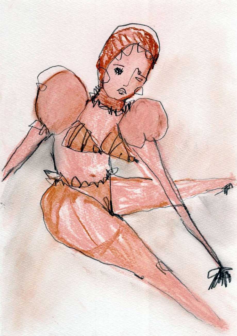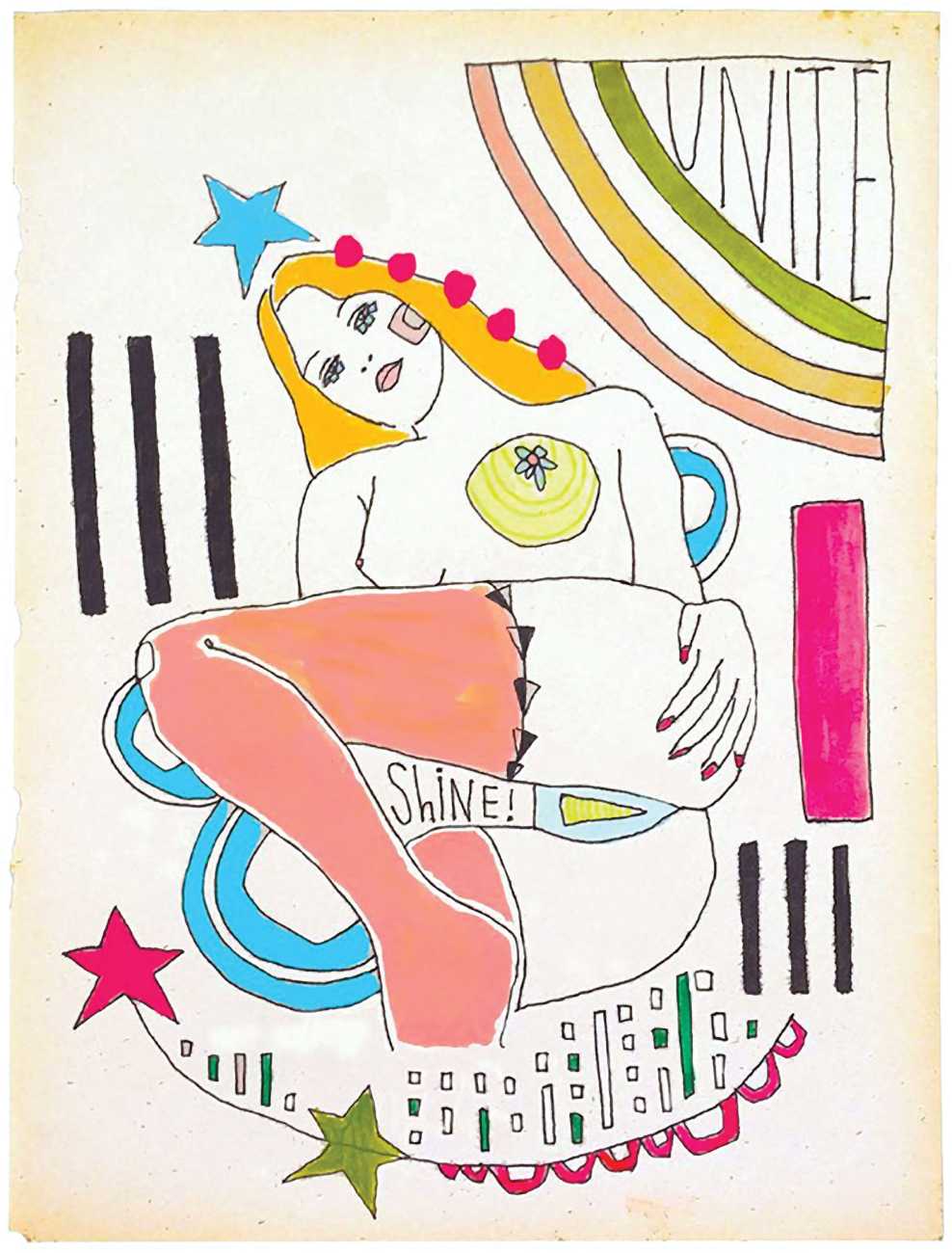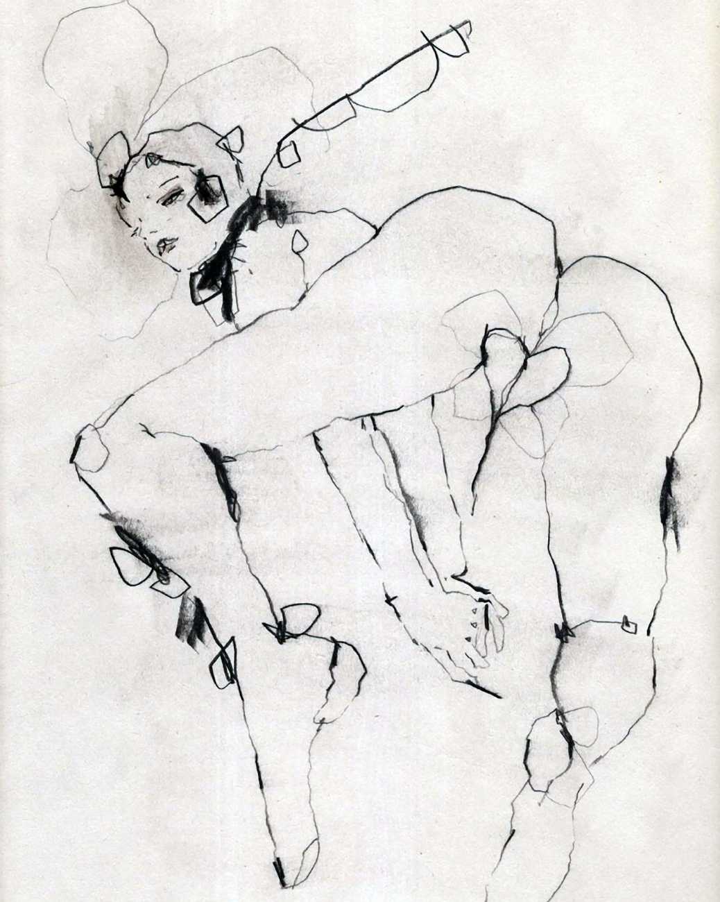 This selection of her work shows her development from a more design-oriented style which sometimes included men, to her recent, looser drawings celebrating women revelling in their sensuality.