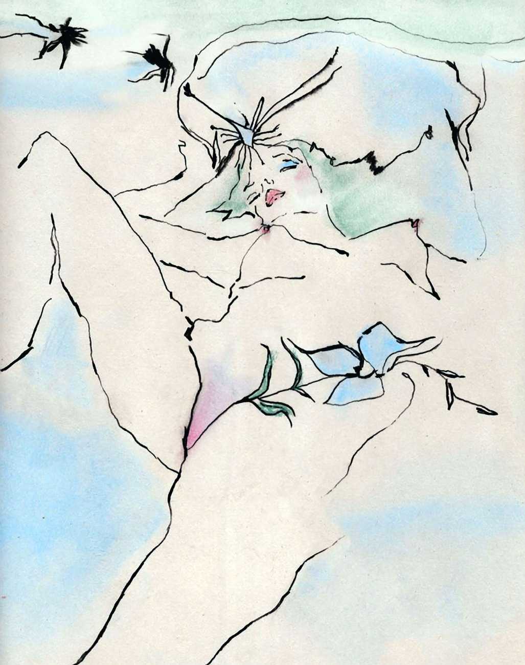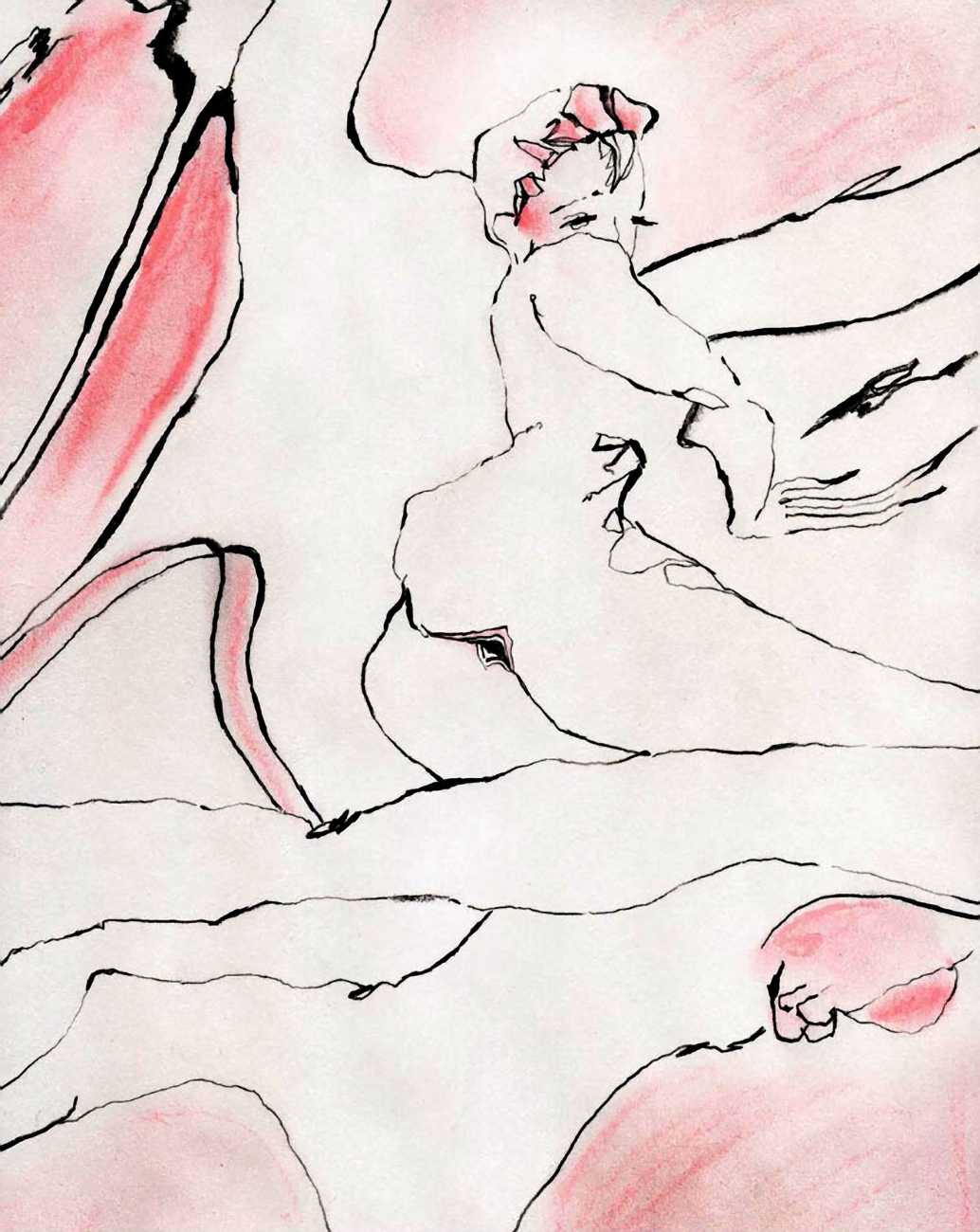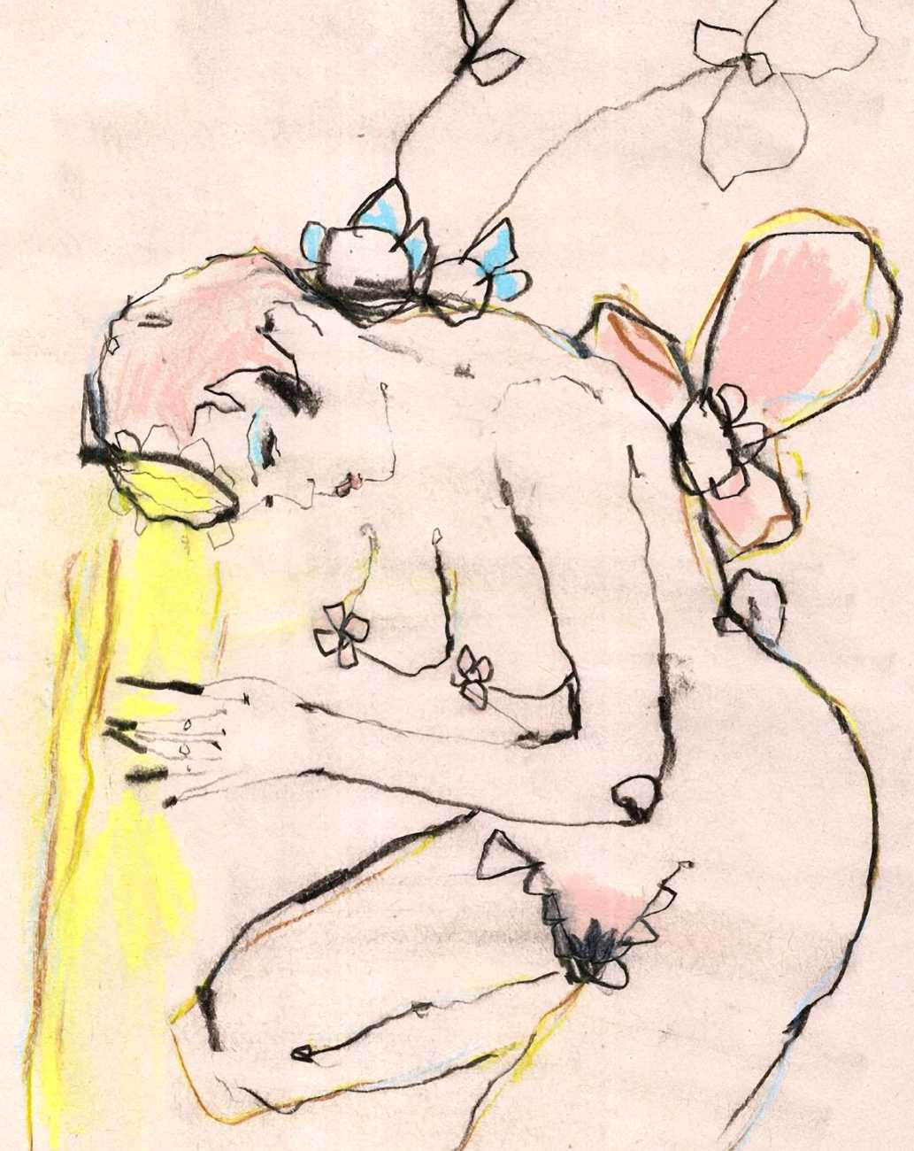 Natalie Krim’s illustrations, which are highly erotic in nature in all manner of repose, self-pleasuring, orgiastic and mellifluously sensual, are feminine and delicate, like she is, but hint at darker overtones. They are a world all her own, alter-egos, characters from the unconscious, coquettish nymphs, desirous, wanting and wanton. The title of this portfolio is that of the exhibition and book from 2022, in which she was a major contributor.