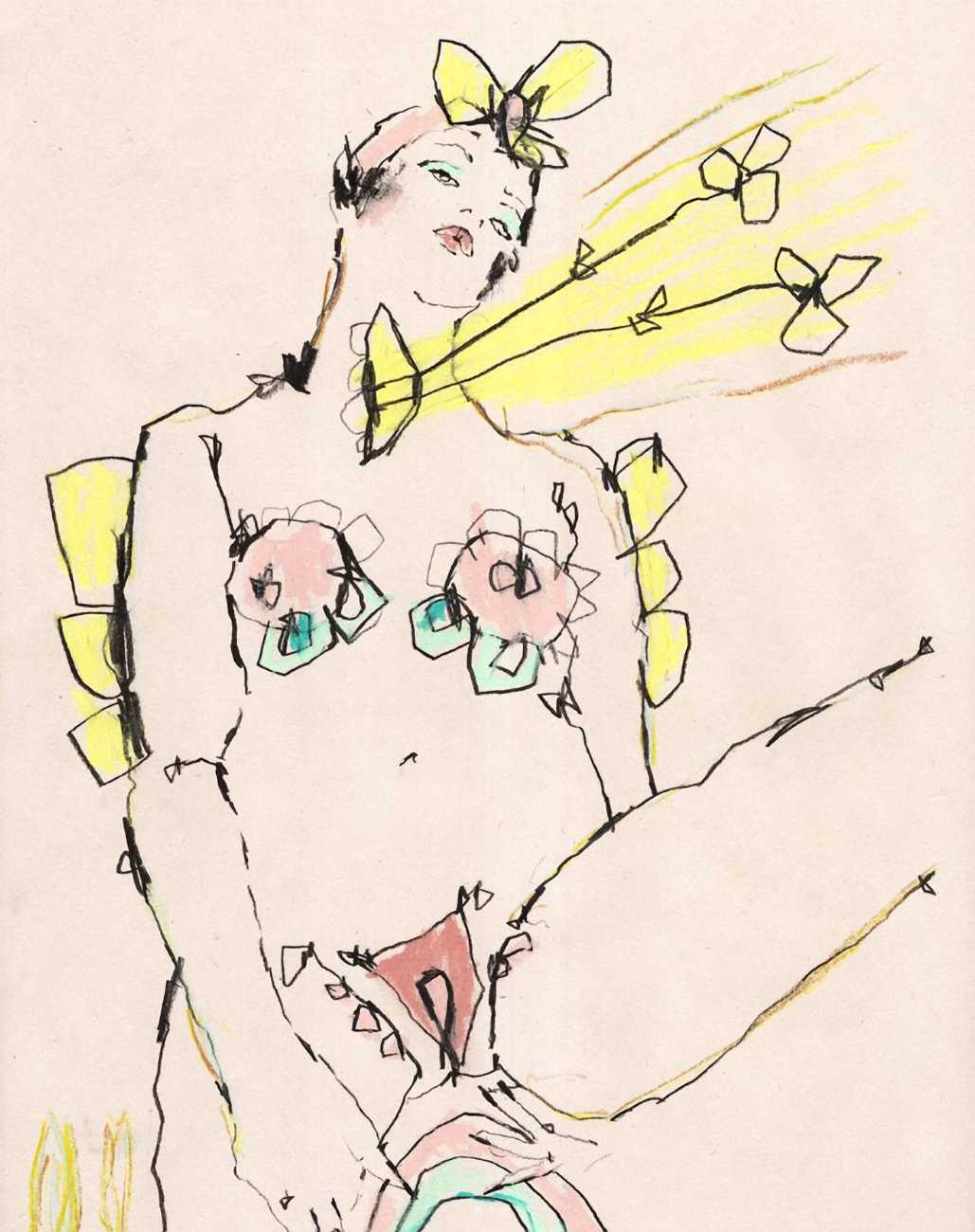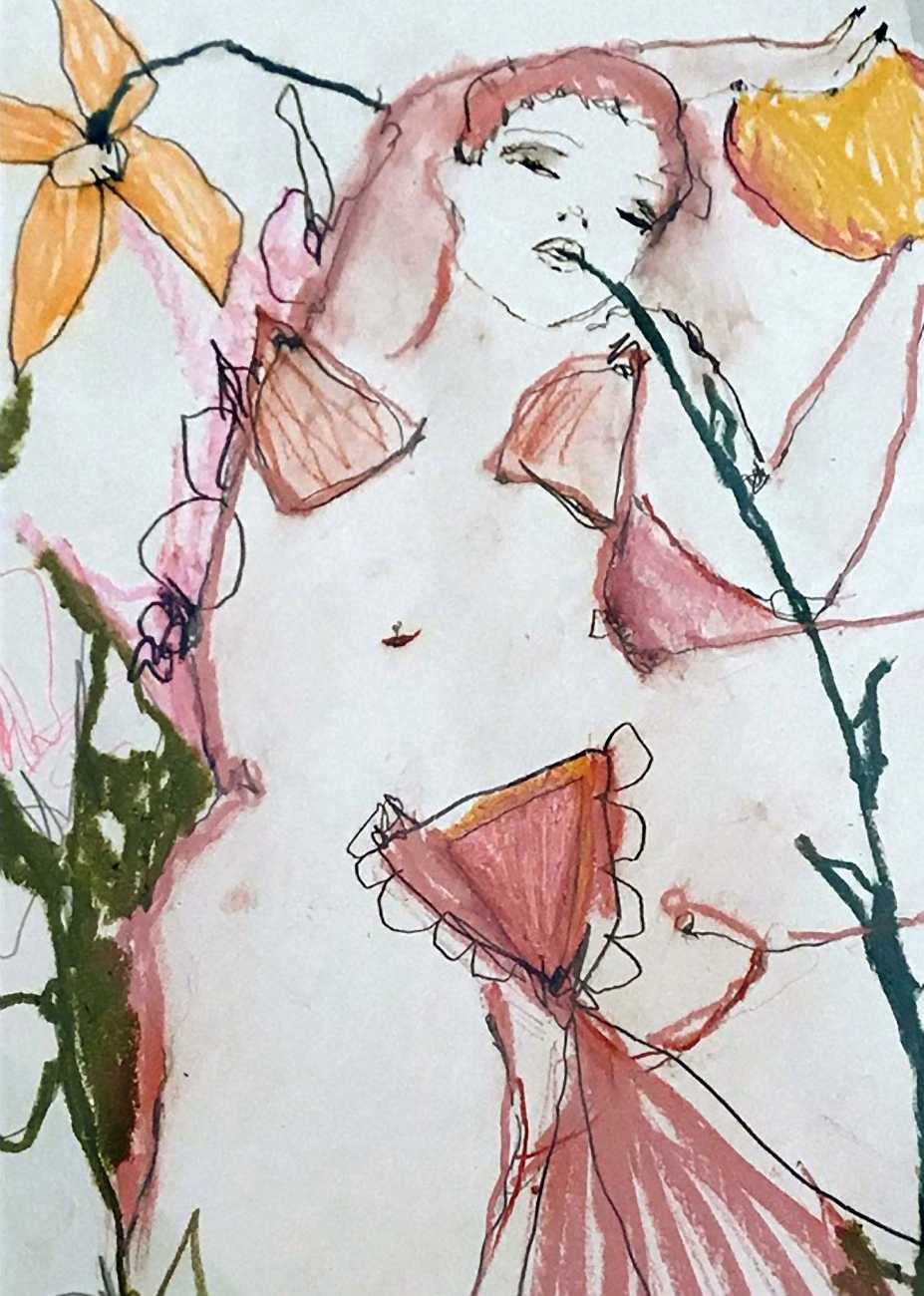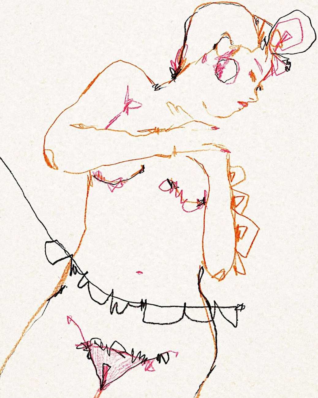 Natalie Krim’s illustrations, which are highly erotic in nature in all manner of repose, self-pleasuring, orgiastic and mellifluously sensual, are feminine and delicate, like she is, but hint at darker overtones. They are a world all her own, alter-egos, characters from the unconscious, coquettish nymphs, desirous, wanting and wanton. The title of this portfolio is that of the exhibition and book from 2022, in which she was a major contributor.