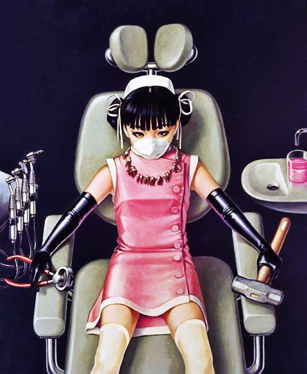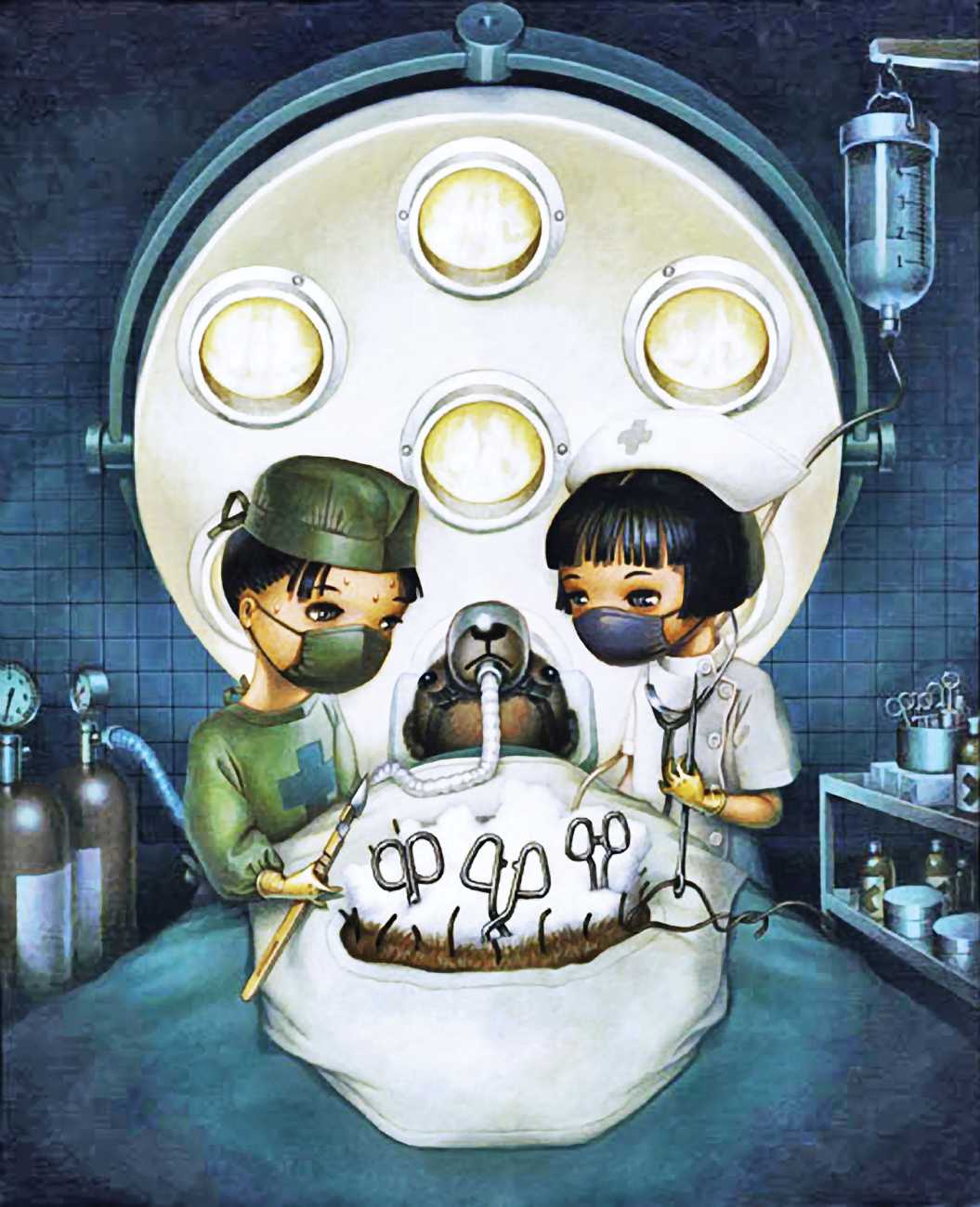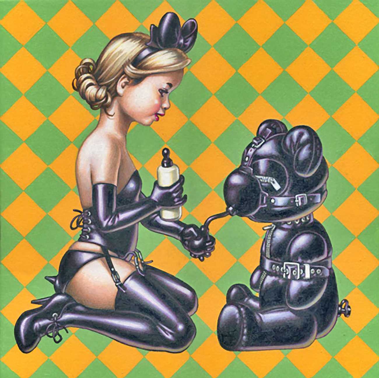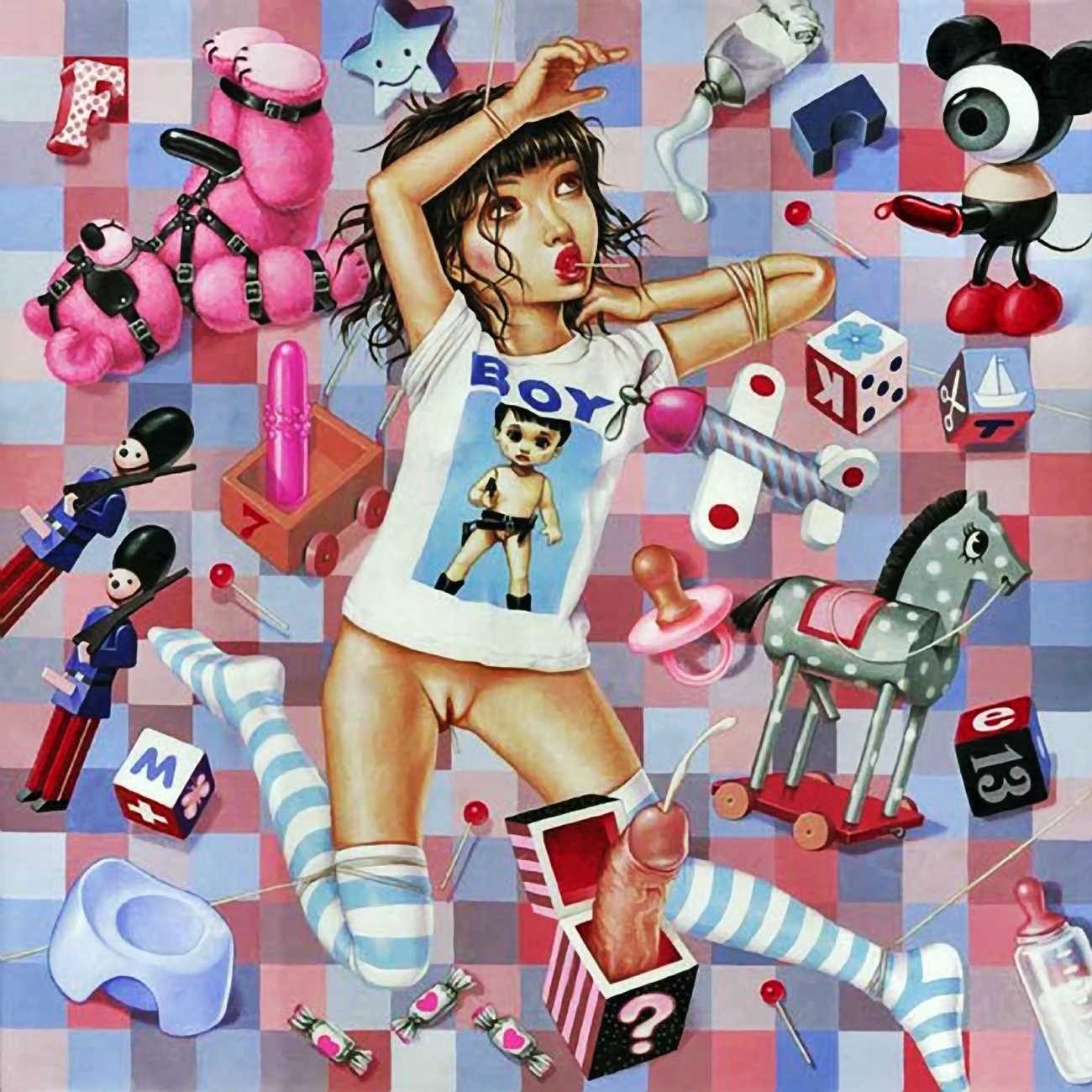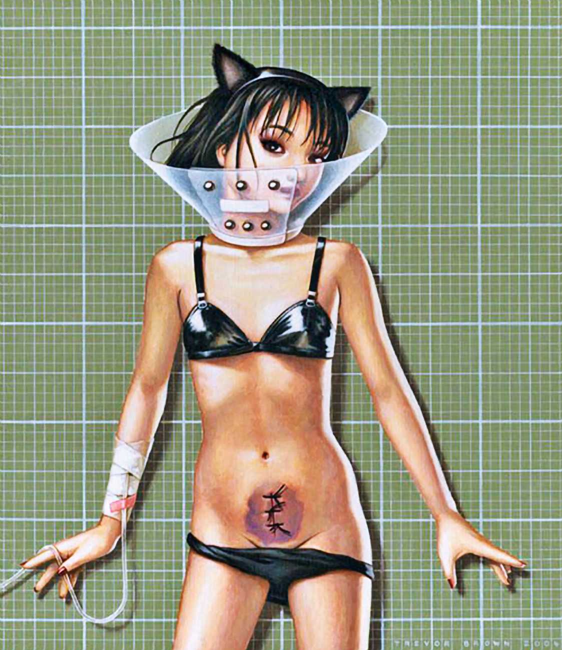 Exiled English painter Trevor Brown is one of the most controversial, misunderstood, yet talented artists in Japan. His paintings of funny, cute, but sinister doll-like creatures, lolitas and teddy bears inhabiting a bizarre world of medical, masochistic and macabre imagery seem to emanate from a perpetual twilight zone, where innocence is inextricably enmeshed with – but never fully corrupted by – evil.