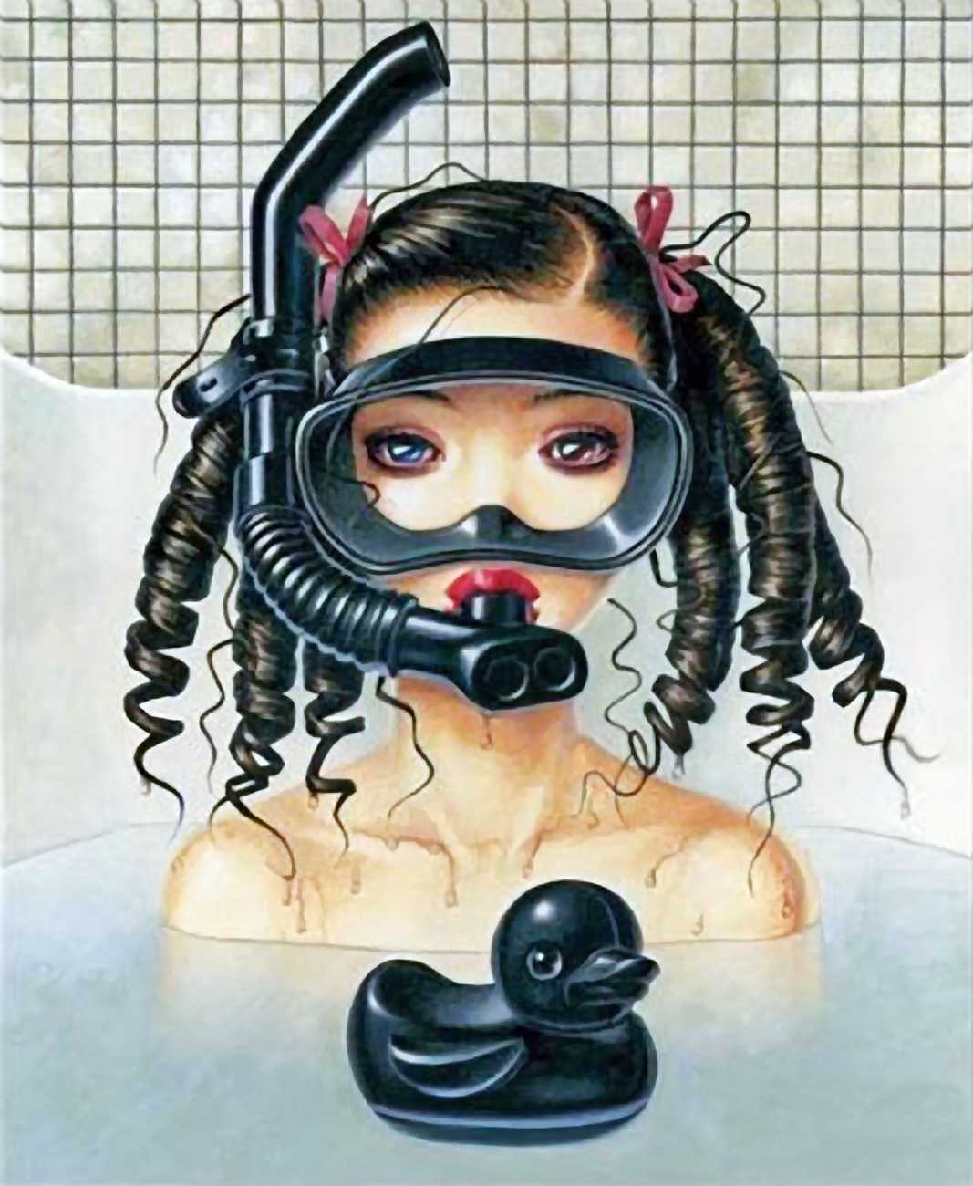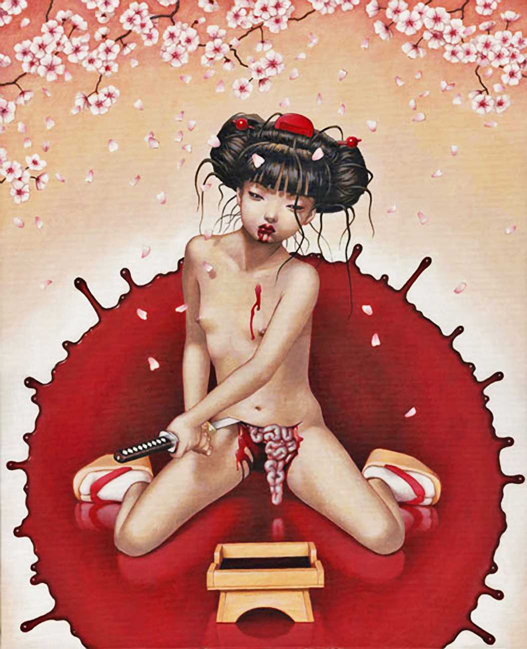 Yet even though this fascinating cocktail is an addictive passion for Brown’s fans, who religiously buy his paintings and books, it is definitely not everybody’s cup of tea. Over the years, the artist has received death threats and been accused of everything from paedophilia to Nazism, via Satanism and sadism. Reflecting the hysteria that Brown sometimes attracts, one reviewer said, ‘The toilet bowl inside this artist’s brain is overflowing with blood culled from a massive fetish orgy starring a horde of underage Japanese goth sluts for whom the more freakish, unimaginable terrain of human behaviour is the norm.’