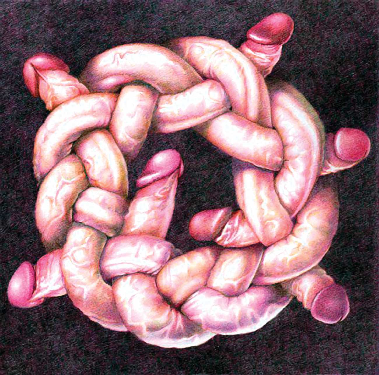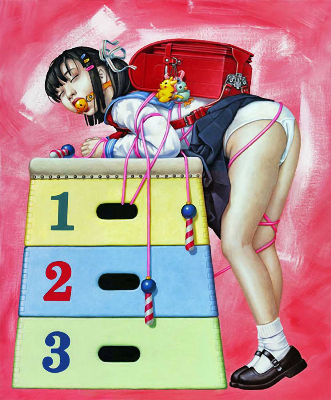 Brown himself has become used to attacks like this. ‘Discussion of my work always falls into opposing factions, those who love it and those who hate it,’ he says. Completing the critics’ negative image of Brown is the fact that, since 1994, he has lived and worked in Japan, a country known for its easy-going attitude or indifference to certain unusual types of sexuality, be it tentacle porn, paedophilic manga, and shibari rope bondage. The implication in all this is that somebody like Brown is here because he wouldn’t be tolerated in his native England. But, of course, this is nonsense, as proved by Turner Prize-nominated British artists Jake and Dinos Chapman, whose work routinely features naked children and Nazi iconography. If Brown is an exile in Japan, it is by choice. ‘I simply fell in love with all things Japanese, and with a Japanese girlfriend holding my hand I left my home country. It was a leap into the unknown.’