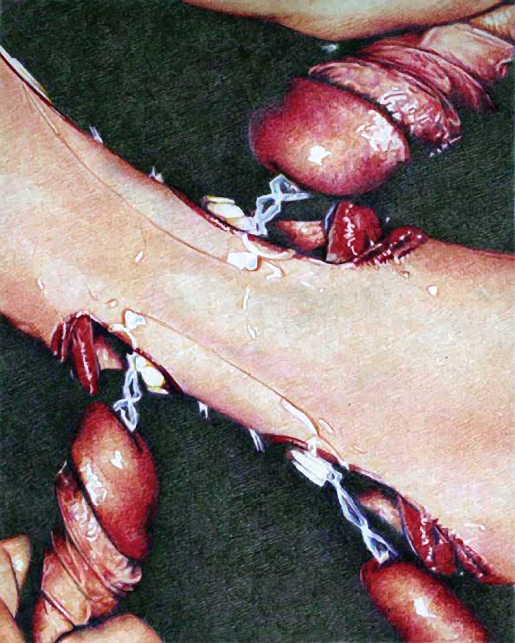 While the Japanese seem comfortable with having Brown in their midst, elsewhere it’s a different story. Opposition to his art remains strong. He agrees that this is partly because it is so easy to understand his work in the wrong way rather than to just be fashionably mystified by it, as happens with other contemporary art. For the viewer mature enough to advance beyond the hysteria and moral outrage, however, there are several interesting strands to be discerned in Brown’s work. These include the enhanced aesthetic effects of juxtaposing opposites, explorations of female passive-aggressive power, elements of surrealism, traditional British vulgar humour, and an interest in human fragility as filtered through J.G. Ballard’s novel Crash.