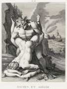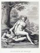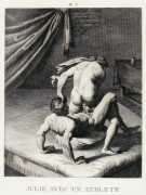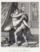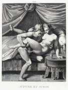 This series of twenty engravings for L’Arétin is Coigny’s best-known work, but the title is very misleading. The ‘celebrated artist’ referred to is indeed Coigny, but the reference to the Italian renaissance painter Agostino Carracci (1557–1602) suggests that Coigny was working from a complete series of Agostino’s paintings. In reality, all that Coigny had to work from was six anonymous prints engraved by the Antwerp engraver Pieter de Jode the Elder (1570–1634) which were said to have originated from Carracci paintings, none of which have survived.