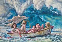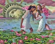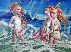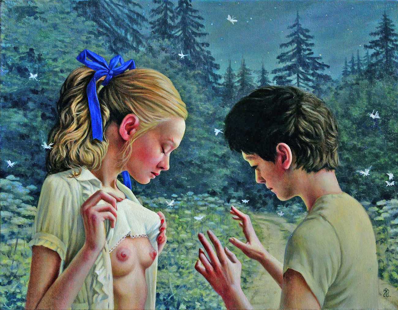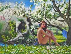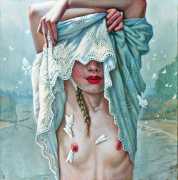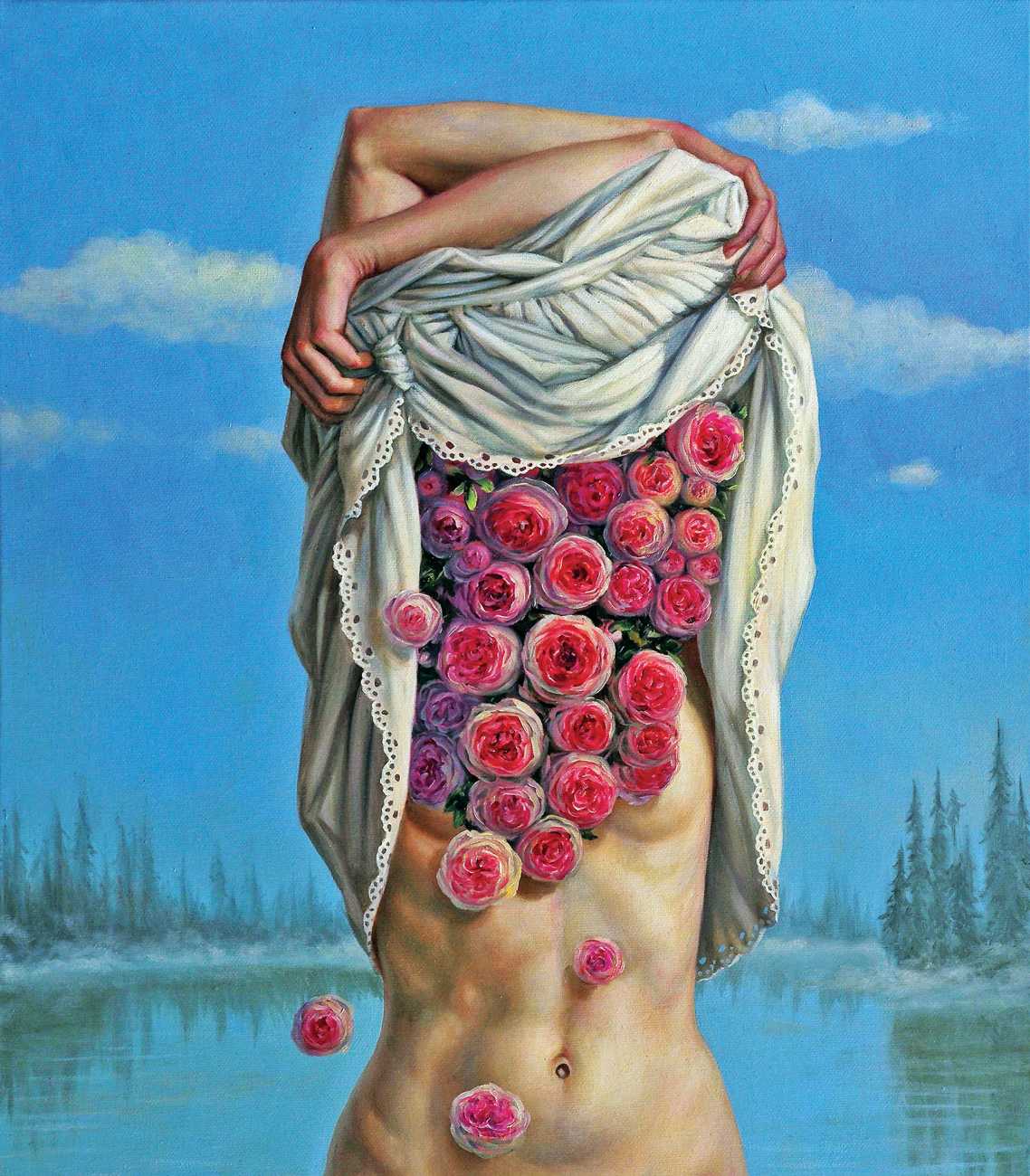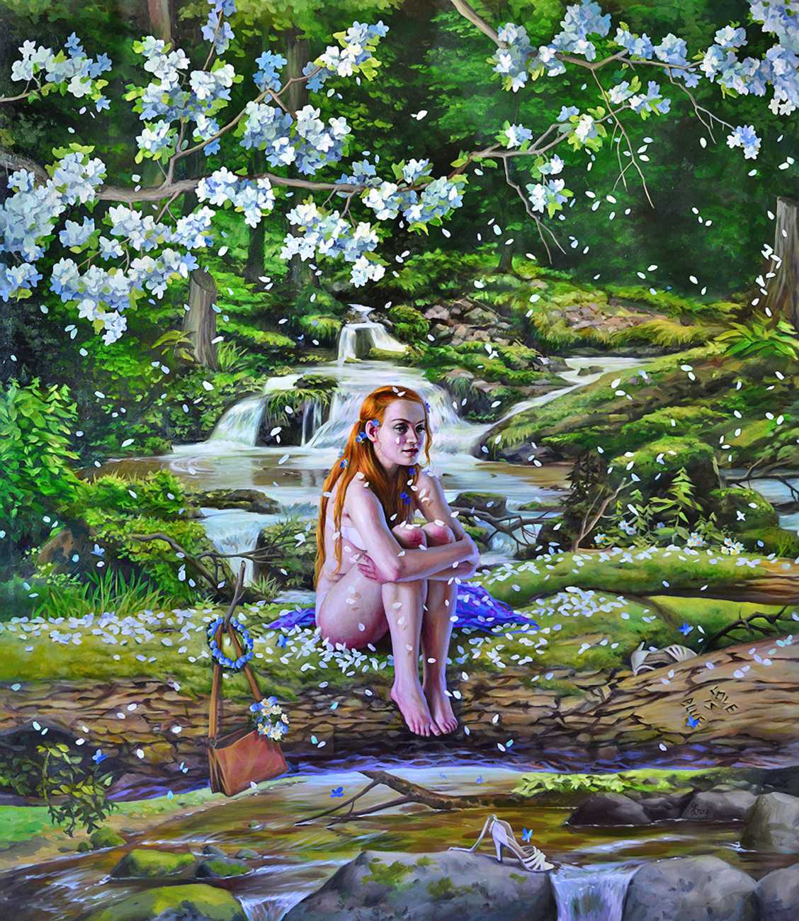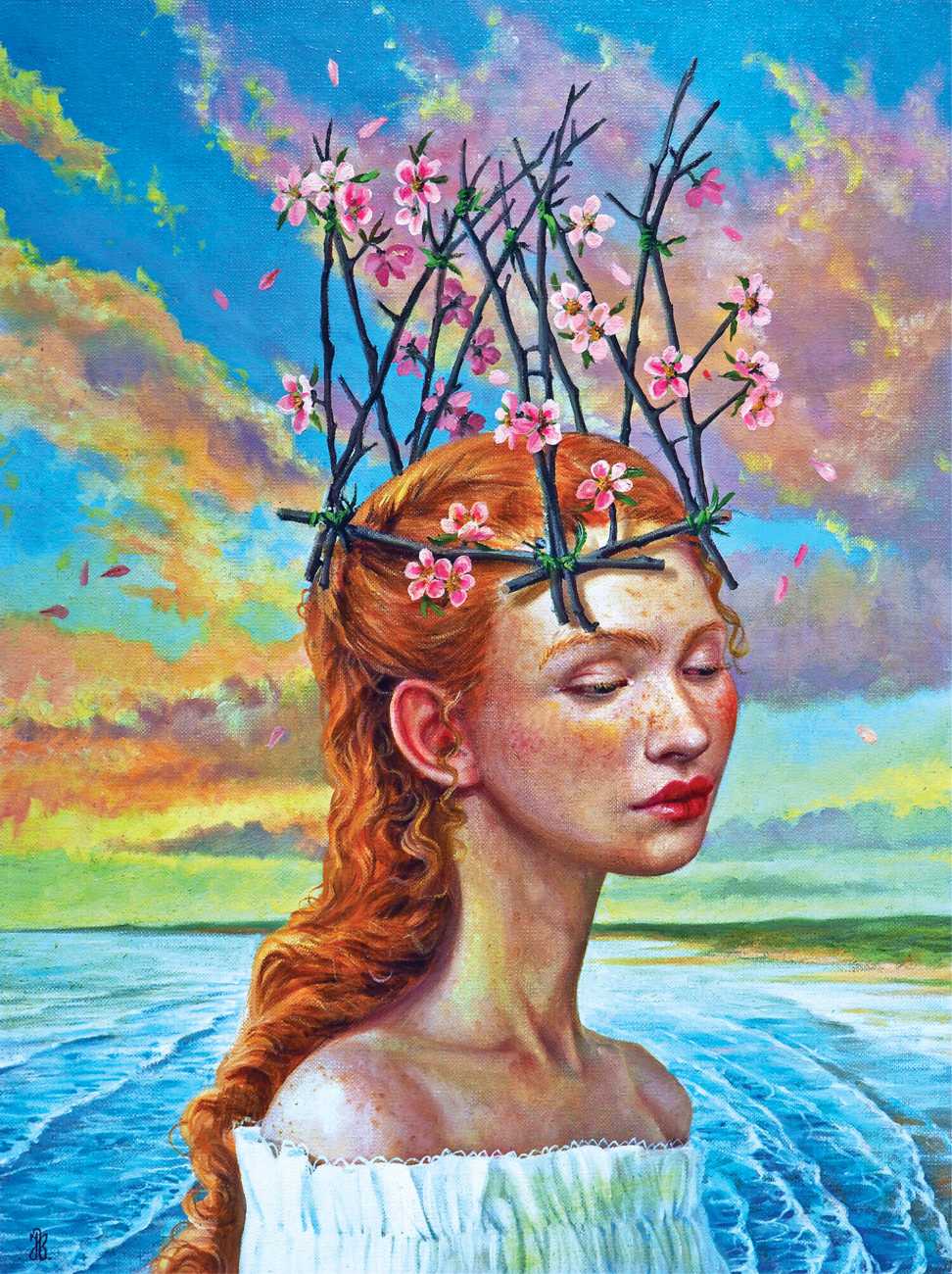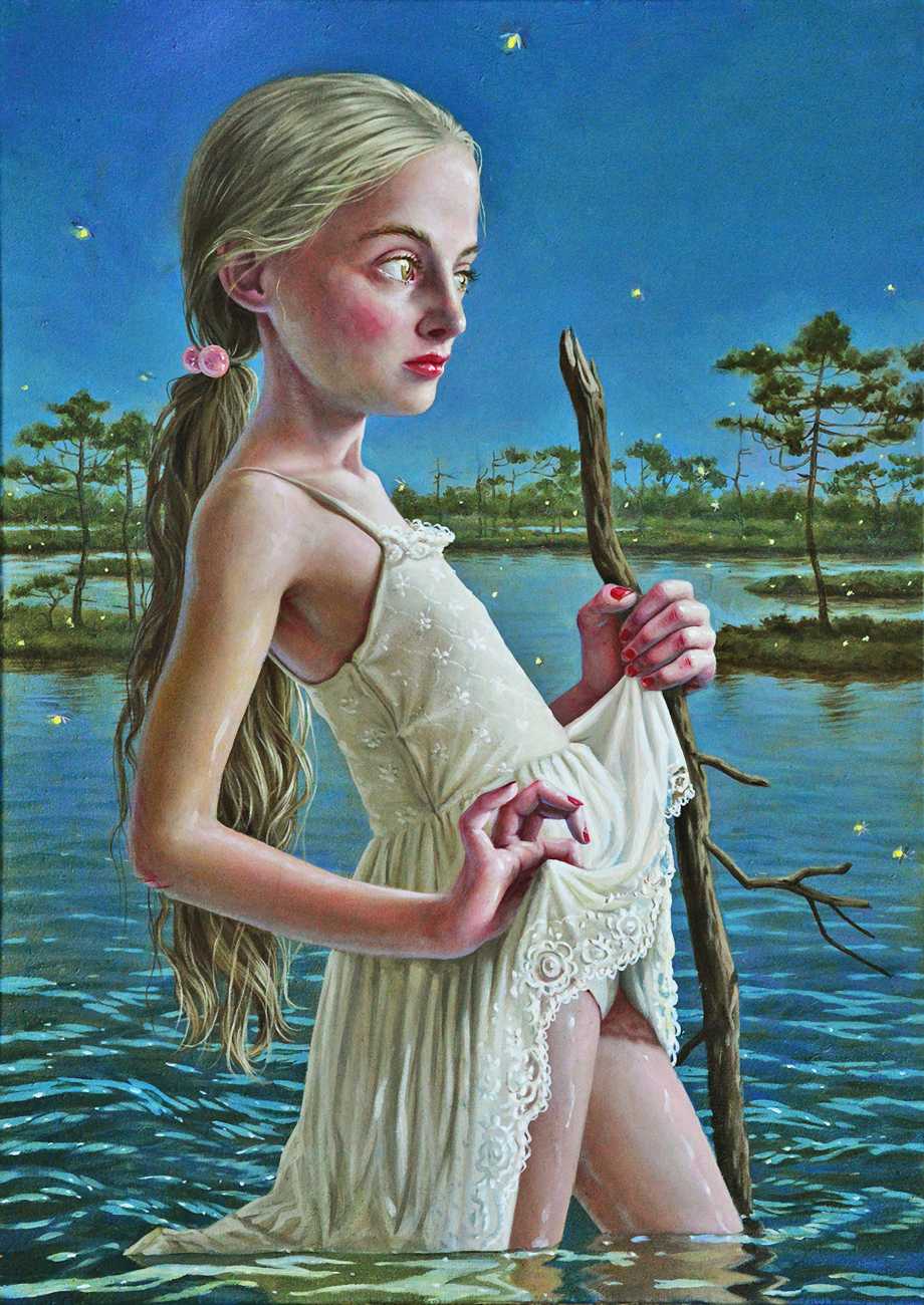I do love to give my heroines a very natural environment. I spent the best part of my childhood in woods and meadows in the countryside, even now I it’s where I feel most in harmony with myself. It gives me space for reflection, and it is always so beautiful. I don’t strive for straightforward communication through my paintings; I find it way more captivating if the meanings are open, complex and multi-layered.  I see nature as it relates to human emotions and states. Violent seas and majestic clouds, warm summer sunshine and cool magical moonlight, forests to get lost in and misty swamps, overgrown plants – my viewers can all make their own connections.