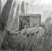 ‘Escape Fantasy’ was Waite’s first solo exhibition outside the US, hosted by London’s Cob Gallery, consisting of an extended series of photorealistic graphite drawings on the theme of escaping past and beyond the limitations of a commercial, conventional, stereotyped world. Much of this imaginative fantasy, for better and for worse, involved some kind of post-apocalyptic vision.
