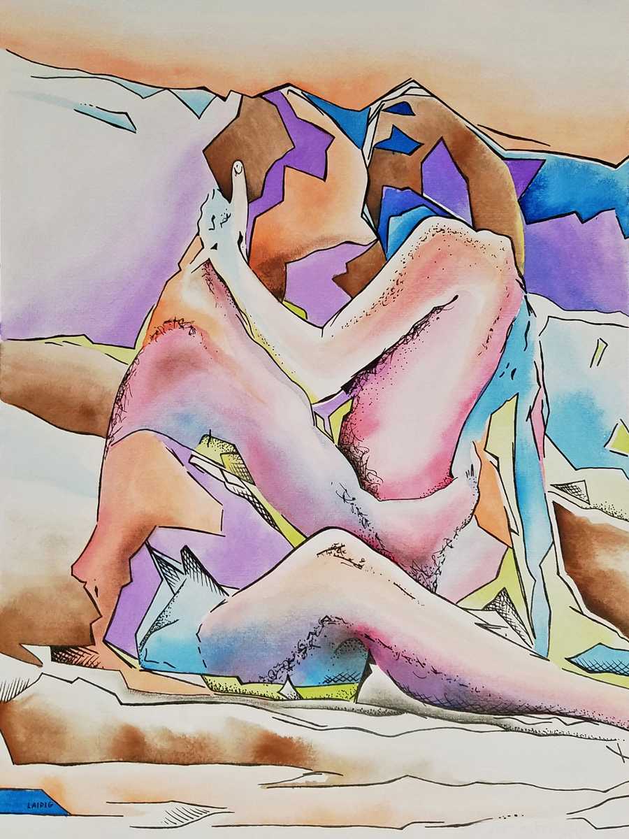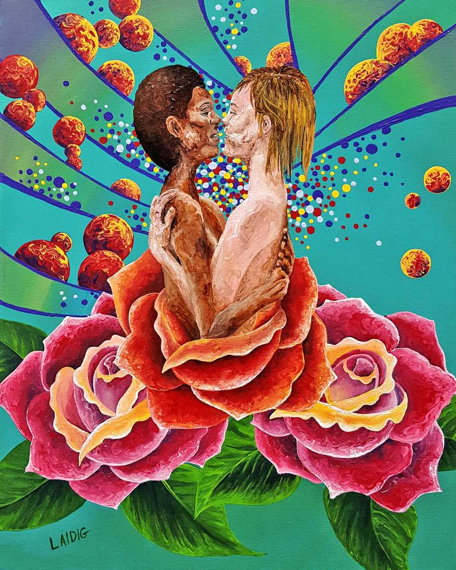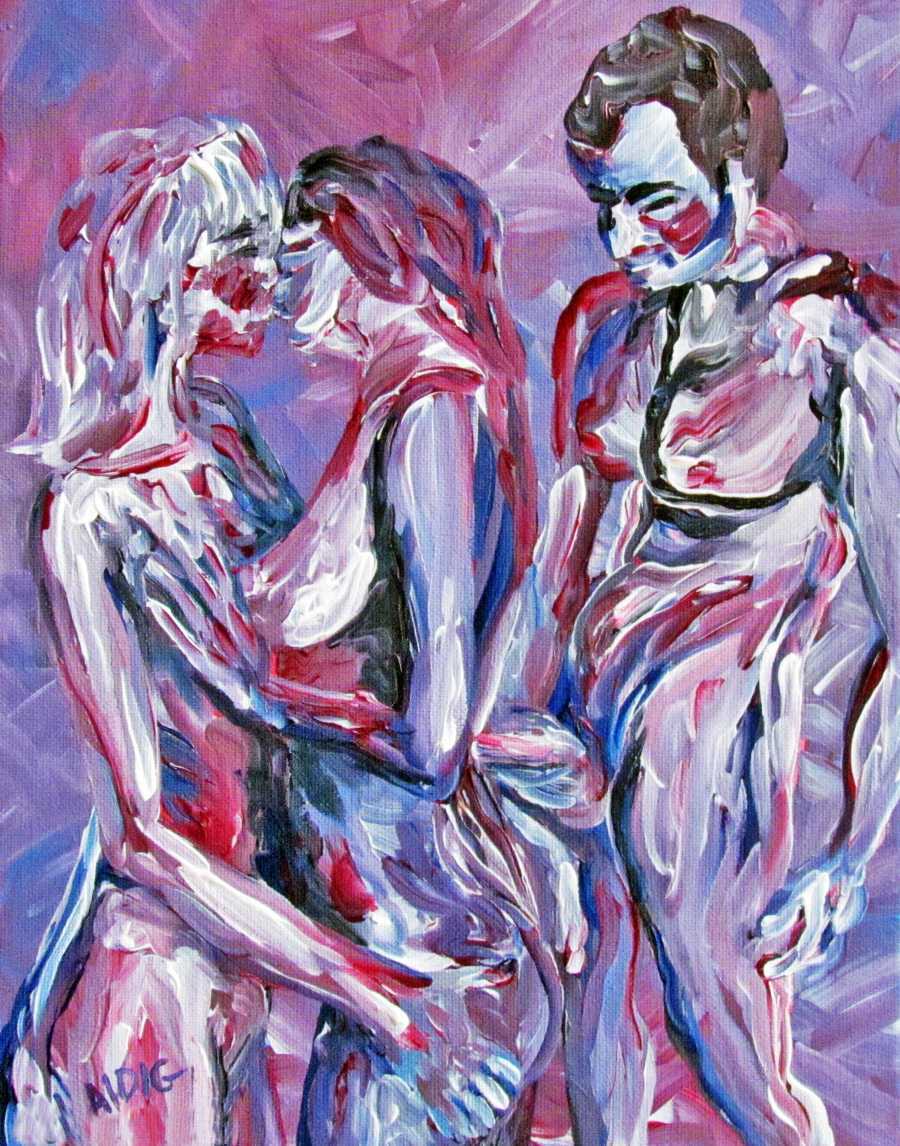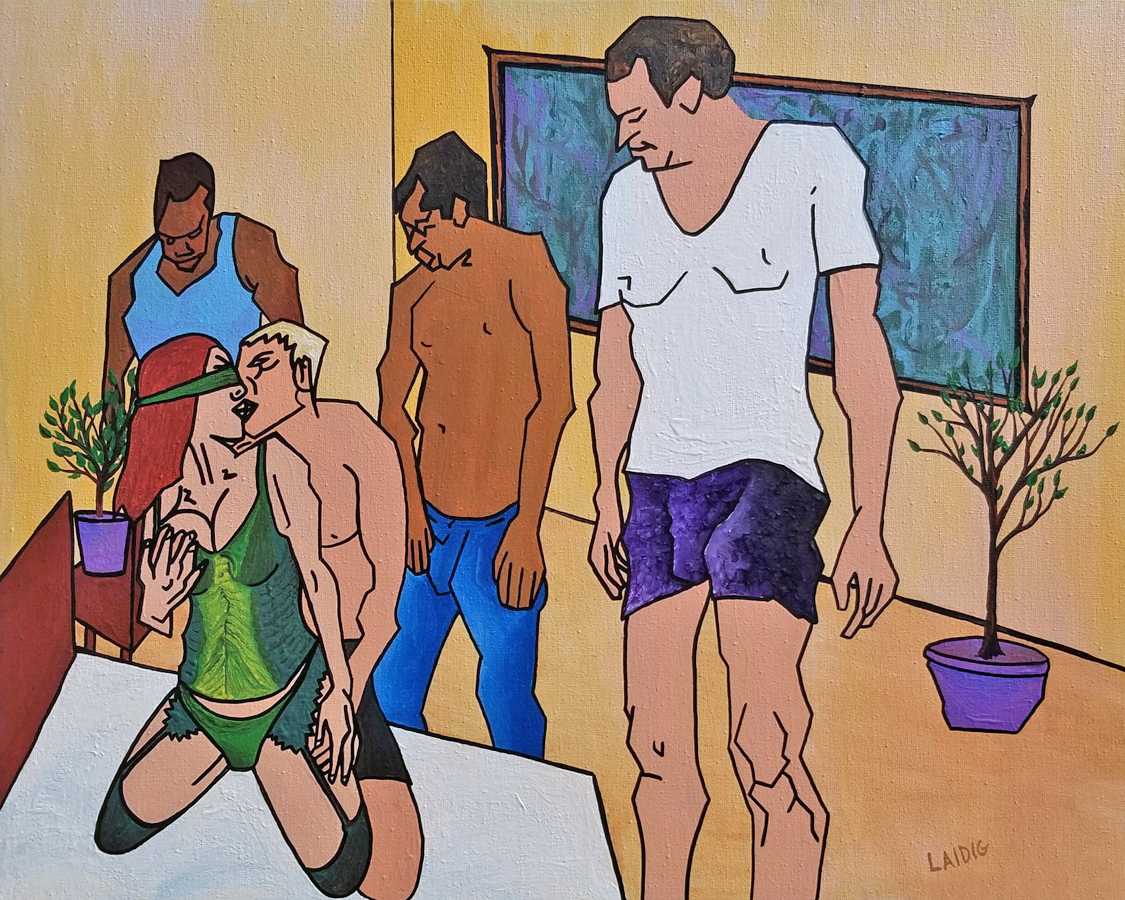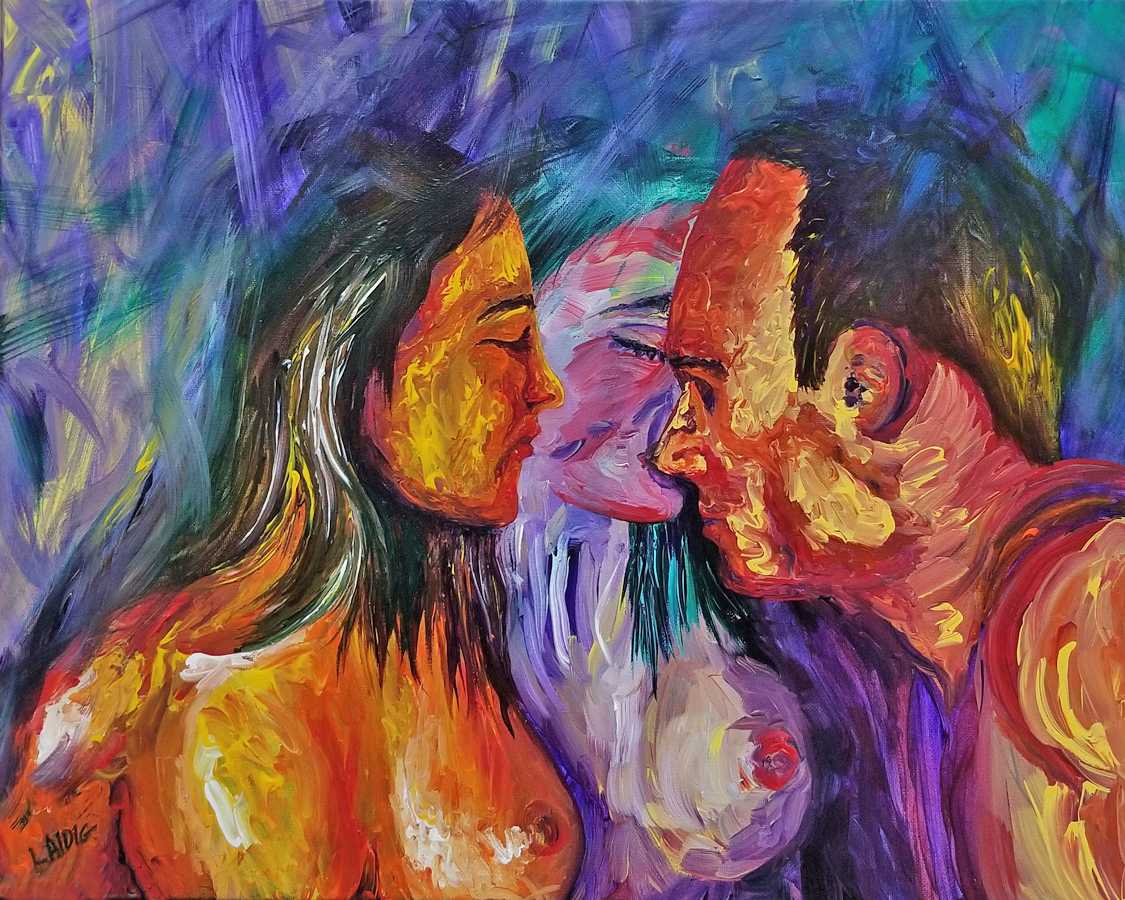 Aarron Laidig firmly believes in the intrinsic nature of human sexuality and the intricacies of human behaviour. Rejecting the confinement of conventional norms, his art questions why relationships should be expected to fit into prescribed boxes. Using a wide range of styles and techniques, it celebrates the beauty of human diversity and complexity, urging his viewers to contemplate the diverse spectrum of relationships that exist beyond societal expectations.