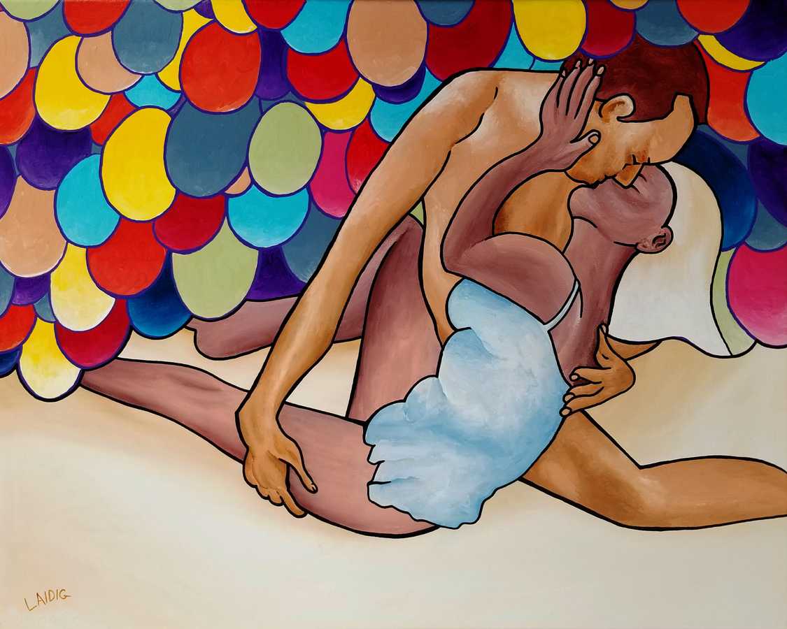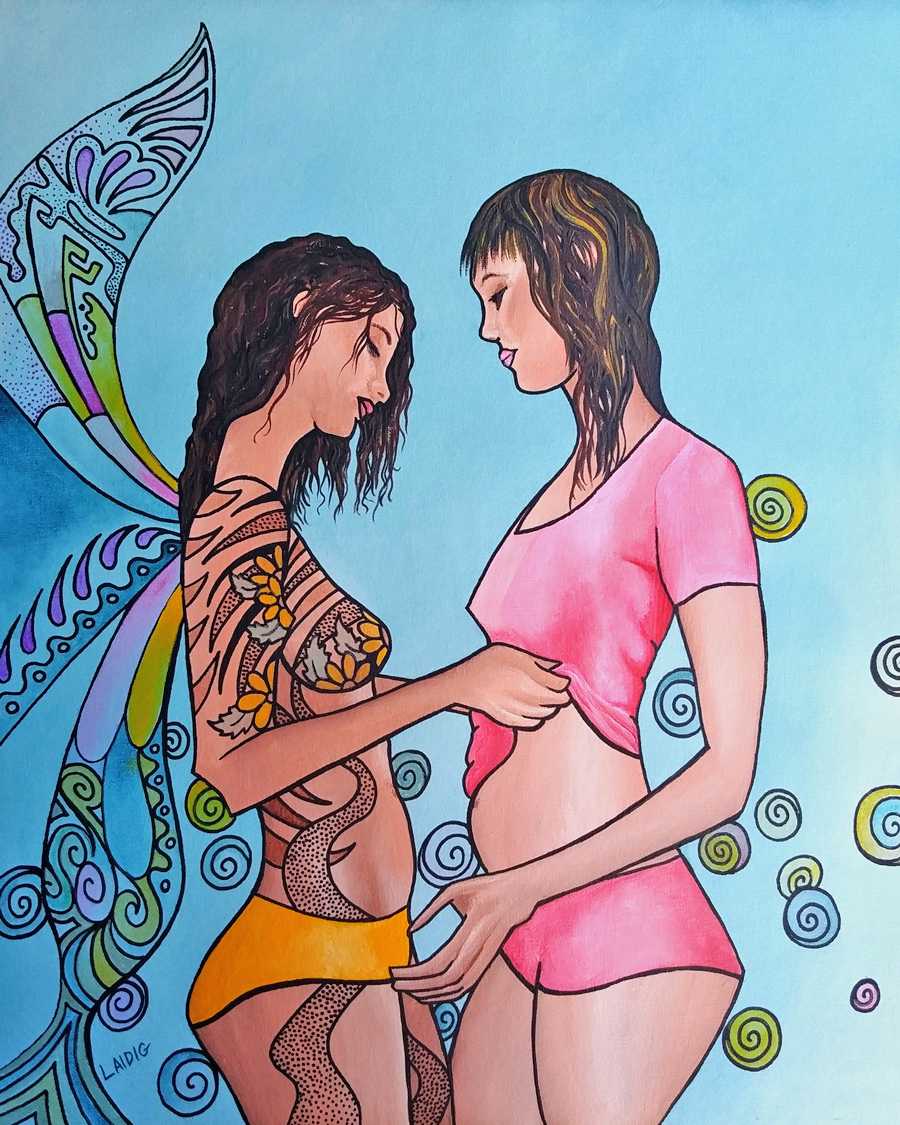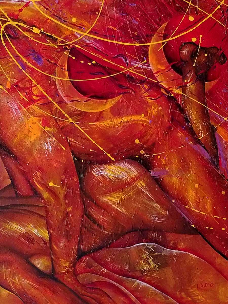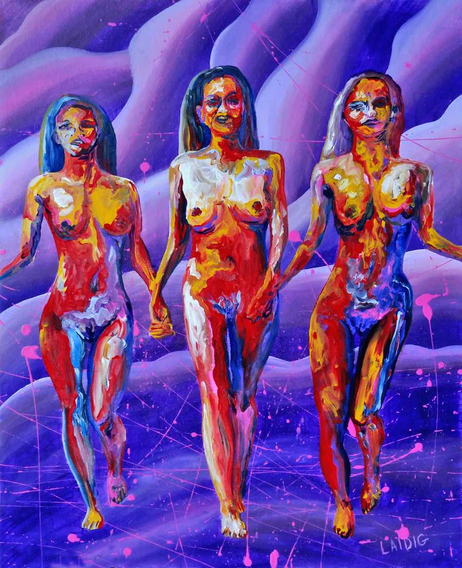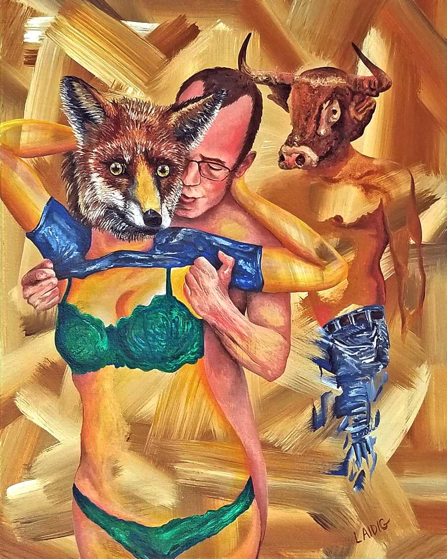 Aarron Laidig firmly believes in the intrinsic nature of human sexuality and the intricacies of human behaviour. Rejecting the confinement of conventional norms, his art questions why relationships should be expected to fit into prescribed boxes. Using a wide range of styles and techniques, it celebrates the beauty of human diversity and complexity, urging his viewers to contemplate the diverse spectrum of relationships that exist beyond societal expectations.