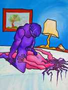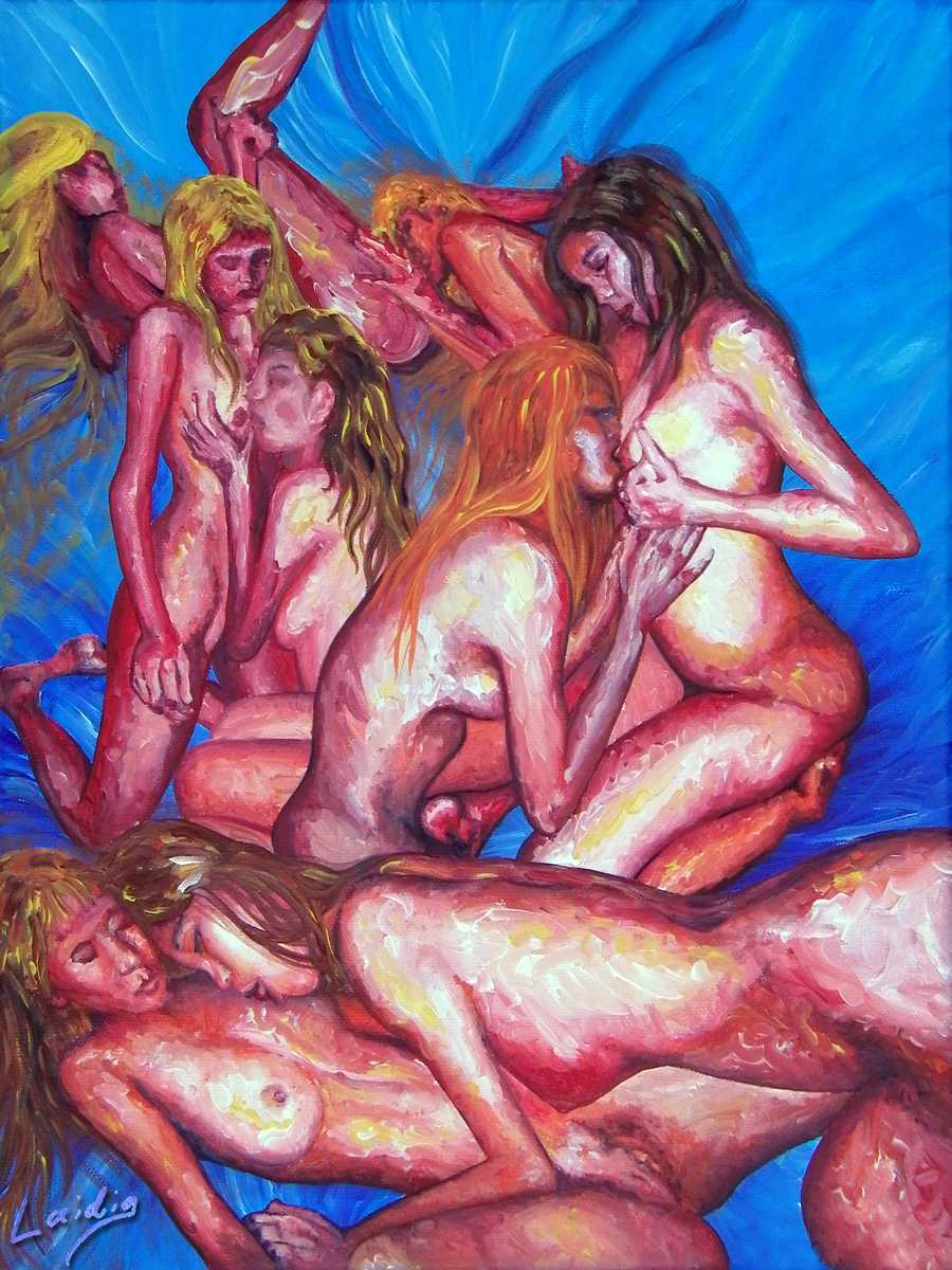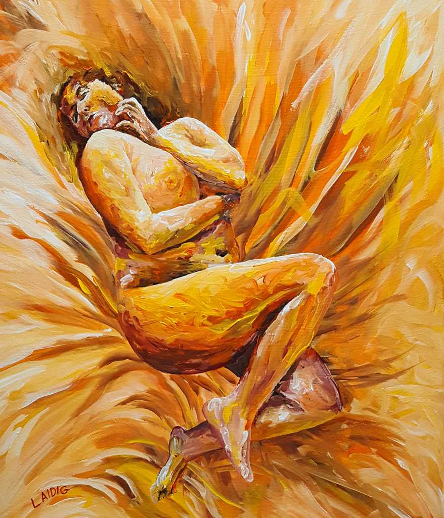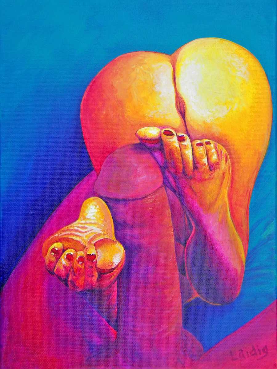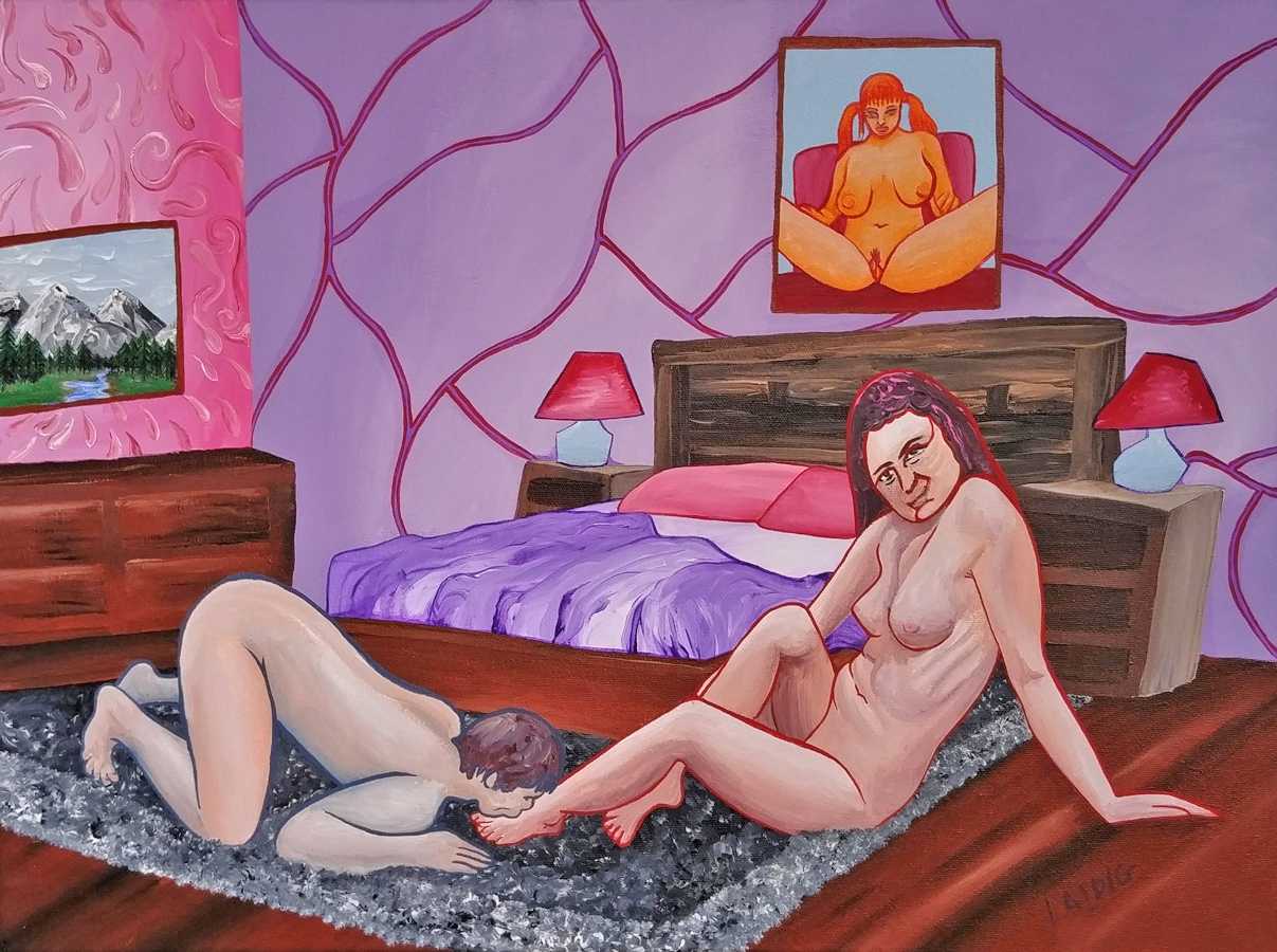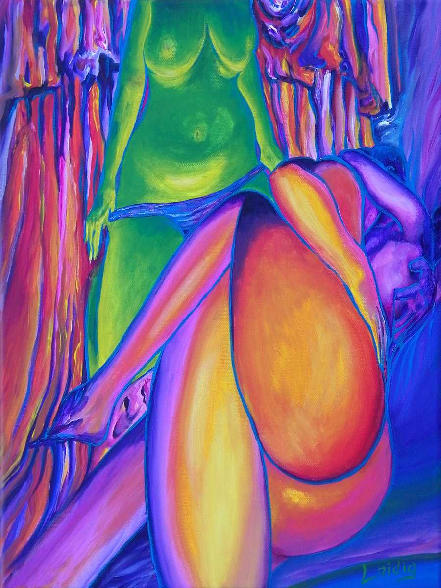 Aarron Laidig firmly believes in the intrinsic nature of human sexuality and the intricacies of human behaviour. Rejecting the confinement of conventional norms, his art questions why relationships should be expected to fit into prescribed boxes. Using a wide range of styles and techniques, it celebrates the beauty of human diversity and complexity, urging his viewers to contemplate the diverse spectrum of relationships that exist beyond societal expectations.
