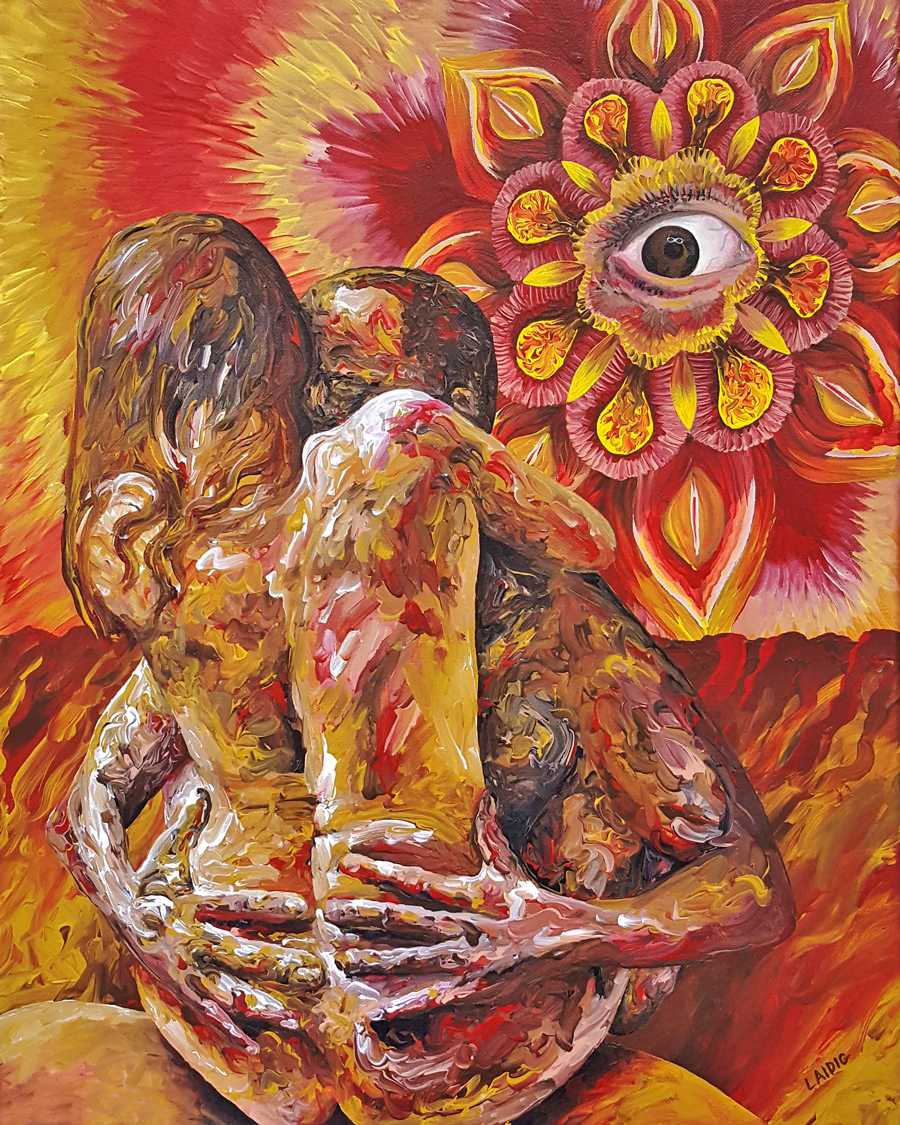 An ever-evolving artistic journey and a passion for exploring the depths of human emotions and connections, Aarron Laidig’s work captivates and provokes his viewers’ imaginations, inviting them to question their beliefs and perceptions about human nature and relationships.
