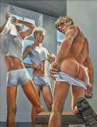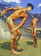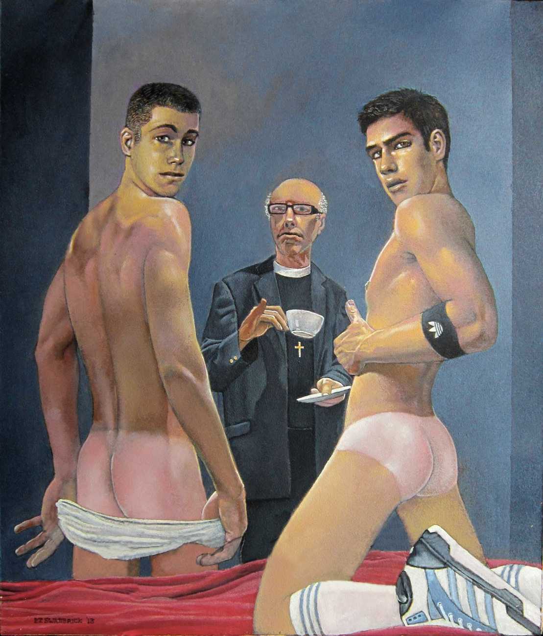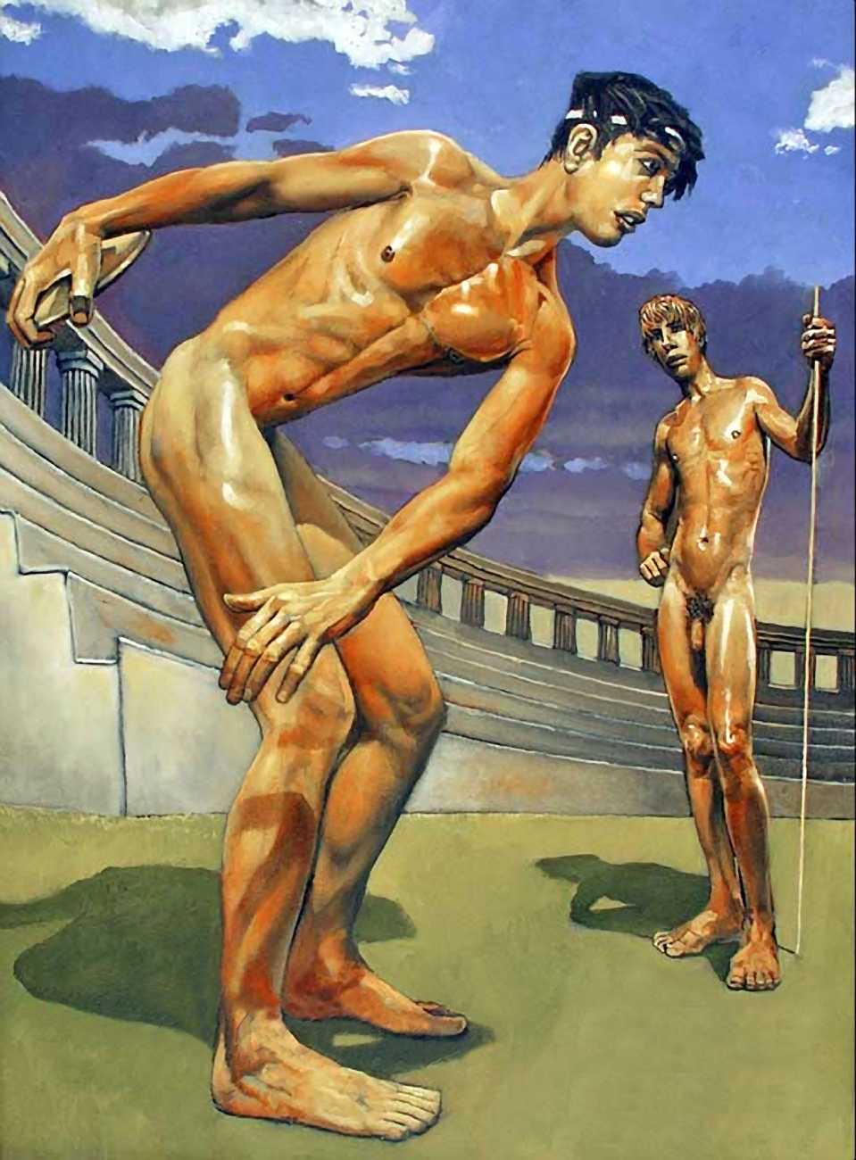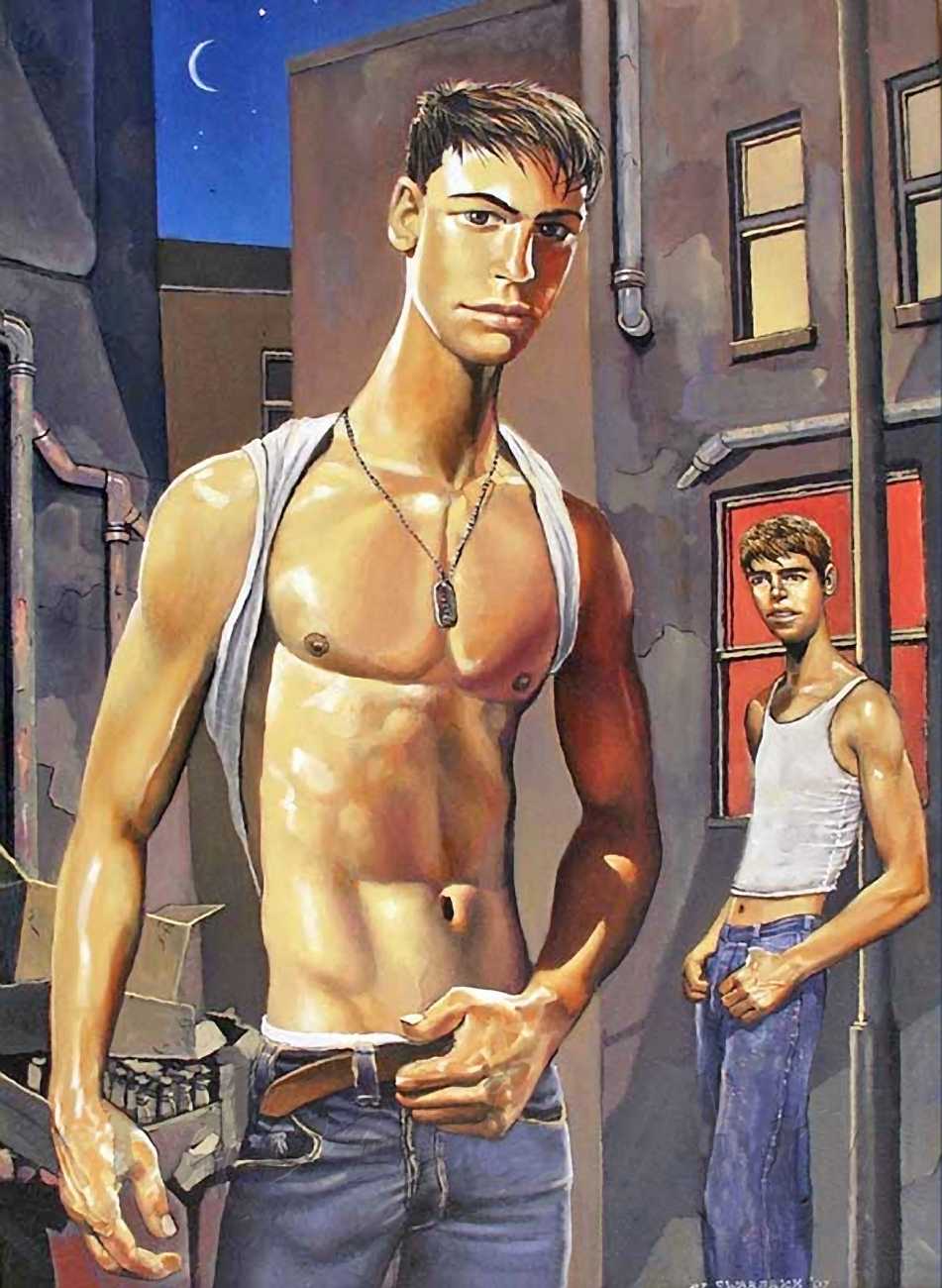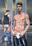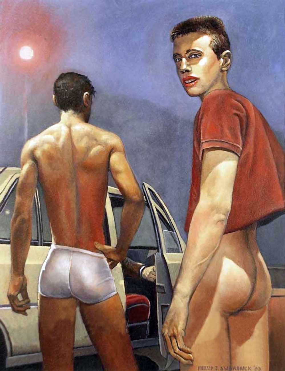 Of his homoerotic work, Philip Swarbrick has written, ‘My raison d’être was to make up for almost thirty years of neglecting my craft, and to draw eroticism from the experience of the urban environment. The thrust of twentieth century art concentrated on the female form; my aim was now to redress the balance. As with the ancient Greek and Renaissance artists, we should celebrate our masculinity. I want the opportunity to create alluring, challenging and evocative imagery using the male form as a medium of carnal and intellectual expression. I believe the acceptance of homosexuality is a good measure of democratic tolerance over religious and cultural zeal. Rather that hide my flame under a bushel, my intention was to set the whole damn thing ablaze – after all, I had waited almost thirty years to do so.’