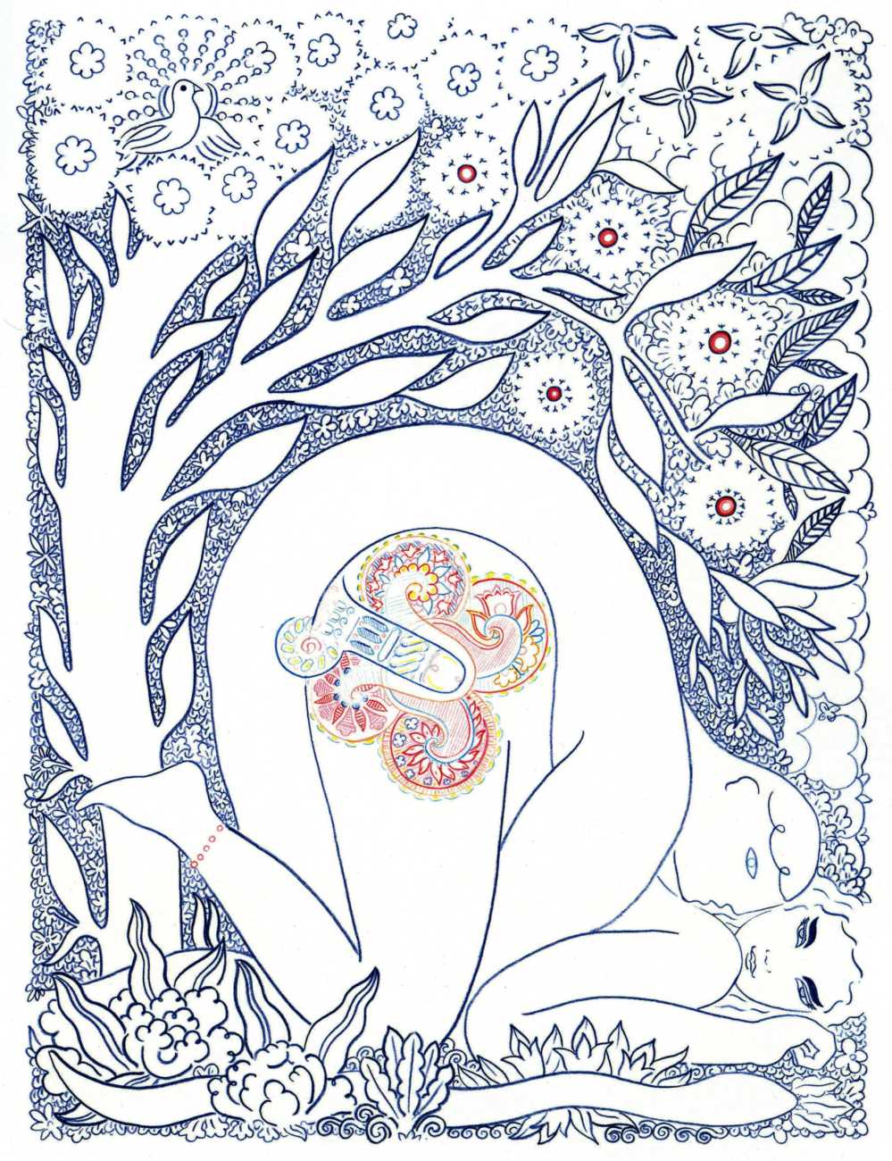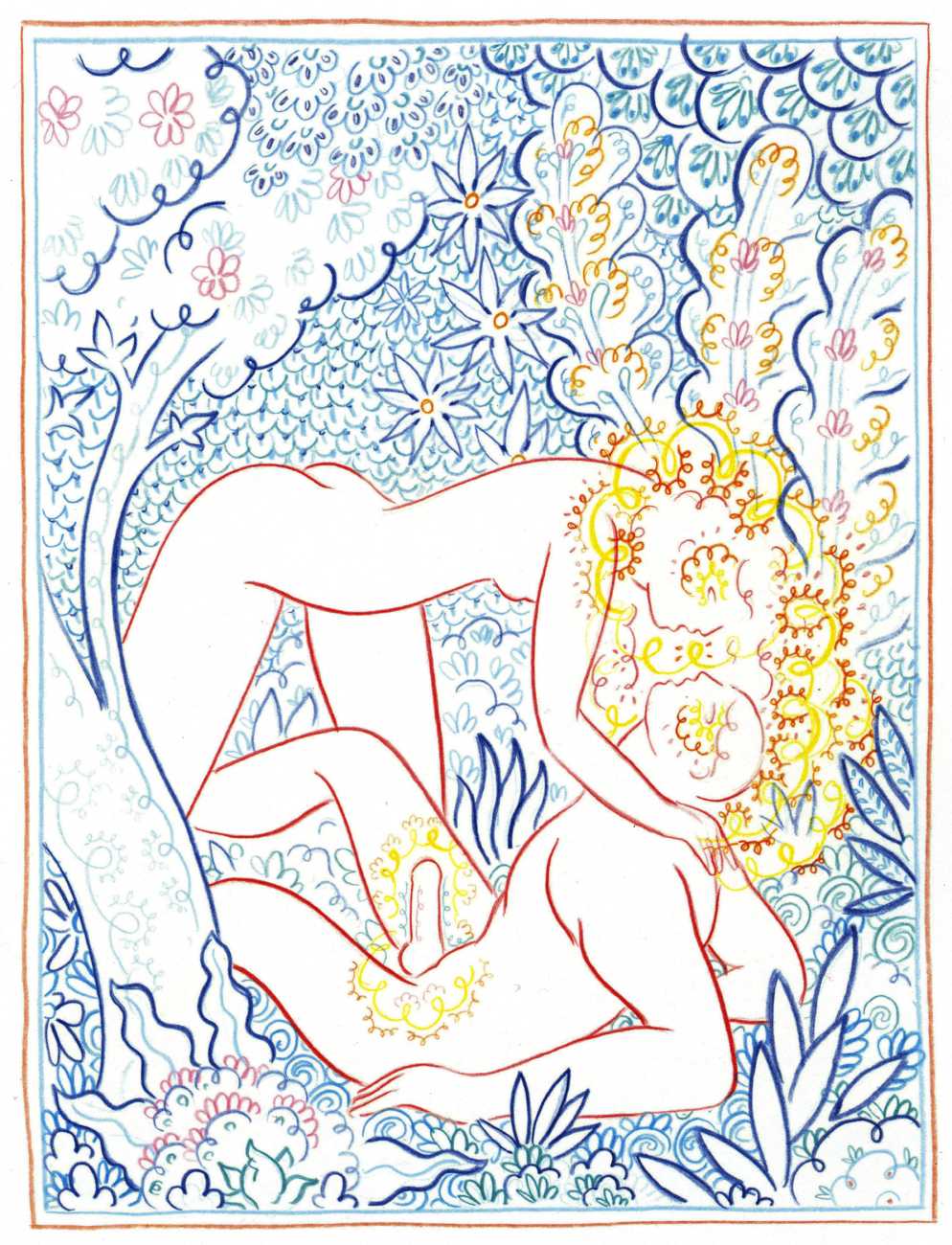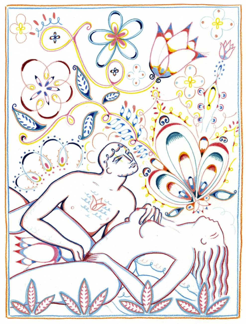 Thus the Sexual Journeying section begins, ‘In the altered states of eroticism, it’s possible to journey through a cosmology of different dreamtimes. It is a sexual odyssey transporting lovers through sublime realms – like the heart spaces of emotional connection, the psychic merging together through synchronised sensation, or the alchemical music of energetic harmonisation. Sometimes the journey passes into bliss, the spiritual dissolution of duality, where for extended moments the self is evaporated into the now, identity becomes impossible to locate because attention is so fully consumed by the experience of physical presence.’