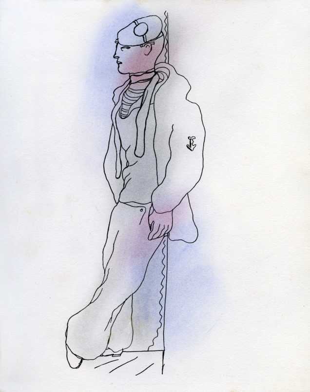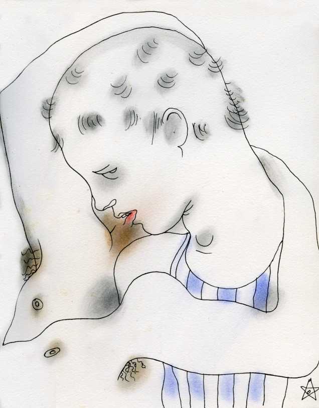 The suite of seventeen illustrations plus a frontispiece reproduced here are from the 1930 Editions du Signe edition of Le livre blanc, which was produced in a printing of 450 copies. Cocteau’s illustrations were hand-coloured by M.B. Armington.