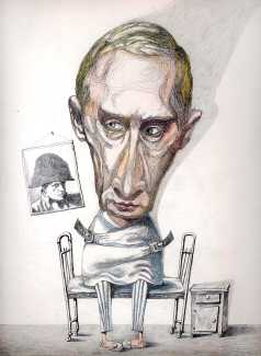 His 2012 Character in a Straitjacket (Персонаж в смирительной рубашке), with Vladimir Putin eyeing a portrait of Napoleon, is particularly prescient.