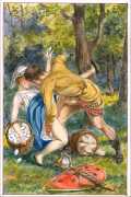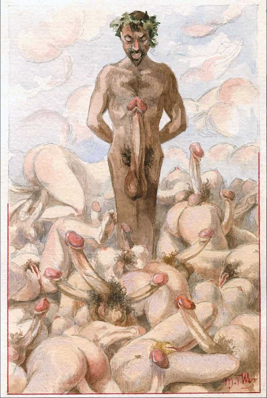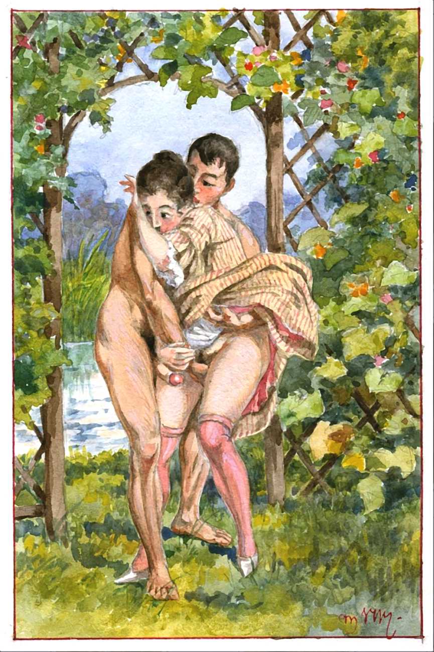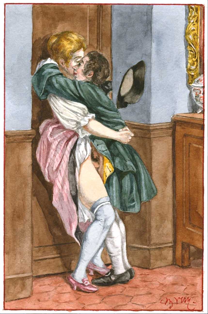 This suite of twelve watercolours by van Mäele shows that he was just as good an artist in this medium as he was in his mastery of etching. Created in the mid-1920s, almost certainly as a commission for a wealthy client, the portfolio is now in the collection of The Kinsey Institute for Research in Sex, Gender, and Reproduction, a research resource based at Indiana University in Bloomington.