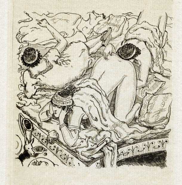 Aphrodite: Mœurs antiques was just one of several Pierre Louÿs’ books to be published by René Bonnel, and like most of his titles had an imprint designed to amuse and deflect attention, in this case ‘Tiflis: Bagration Davidoff’. It reproduced the text of the Crès edition of 1913, more complete than previous editions, and from manuscript sheets of Pierre Louÿs added an entirely new erotic chapter. The third volume, Notes sur Aphrodite, contains passages from Louÿs’ draft version of Aphrodite, together with fascinating lists about how best to attend to a woman’s sensual needs.